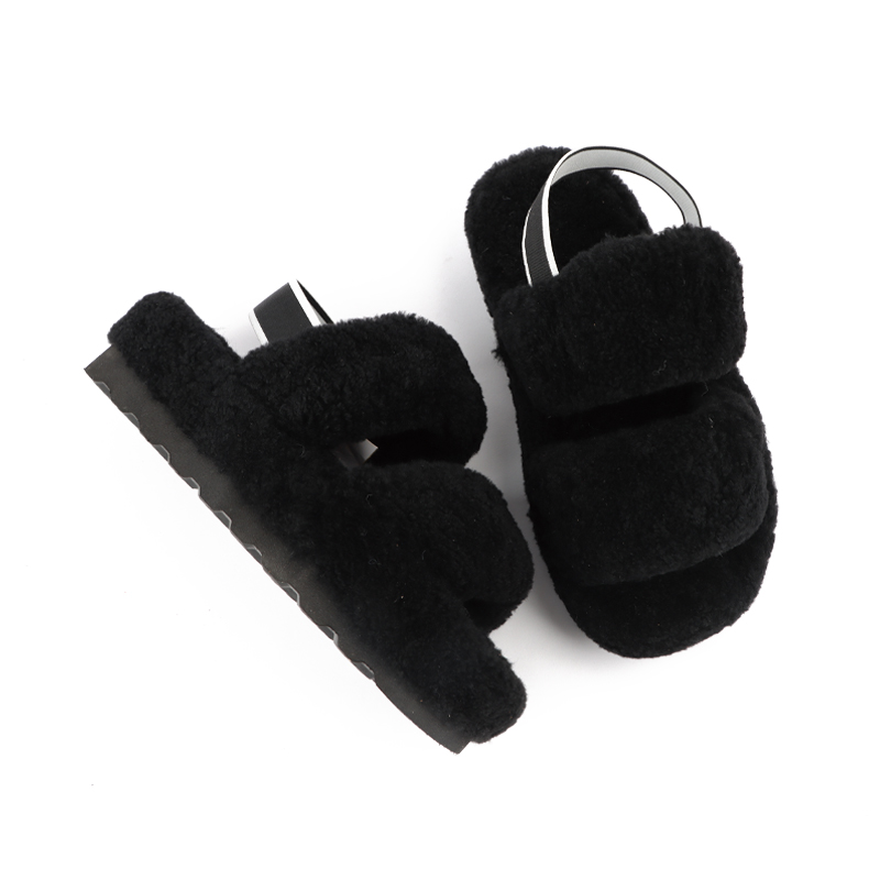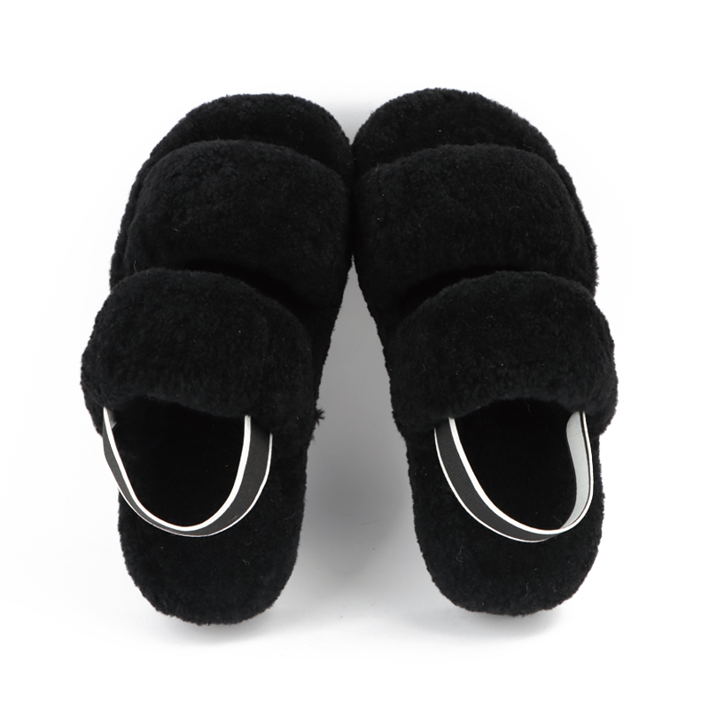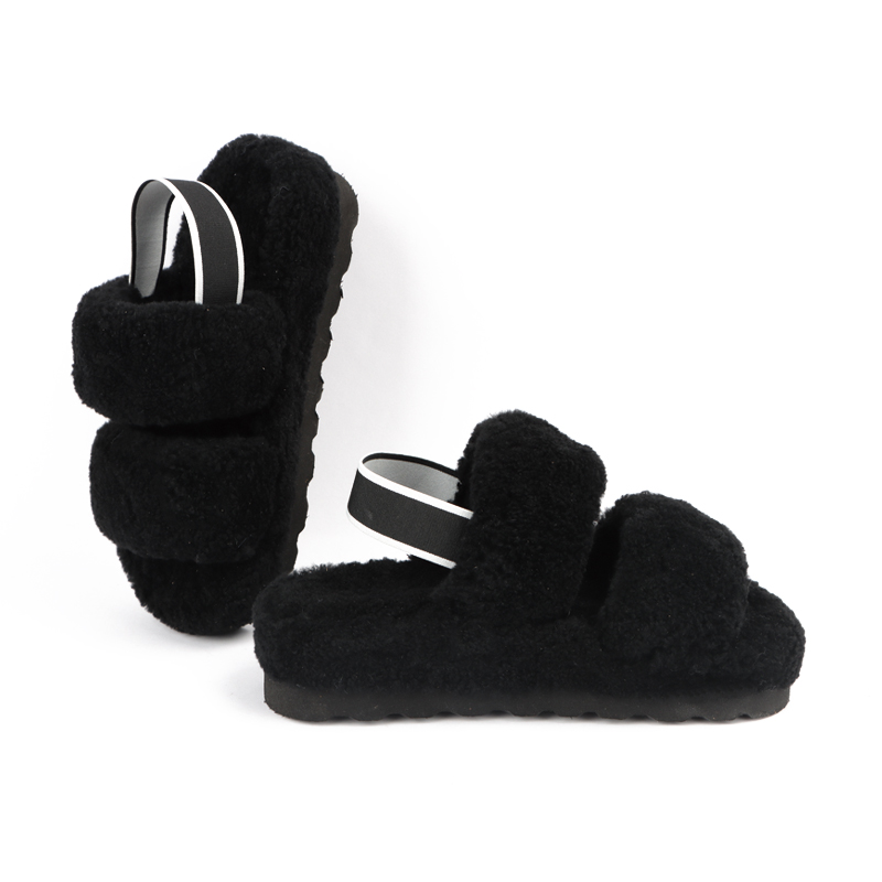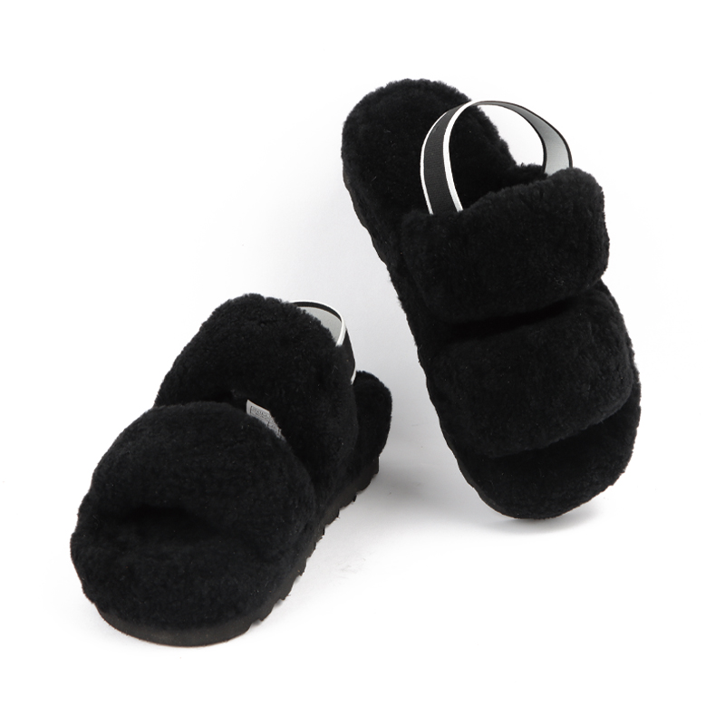 Spring new open-toe elastic band solid color plush fashion slippers warm non-slip outside wear flat slippers