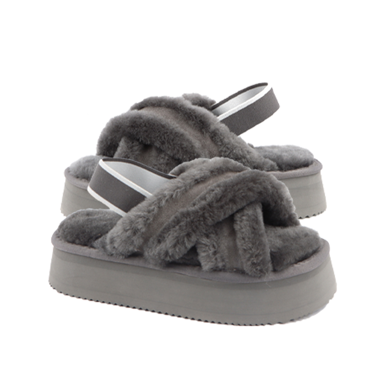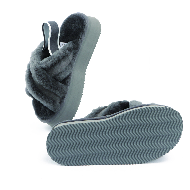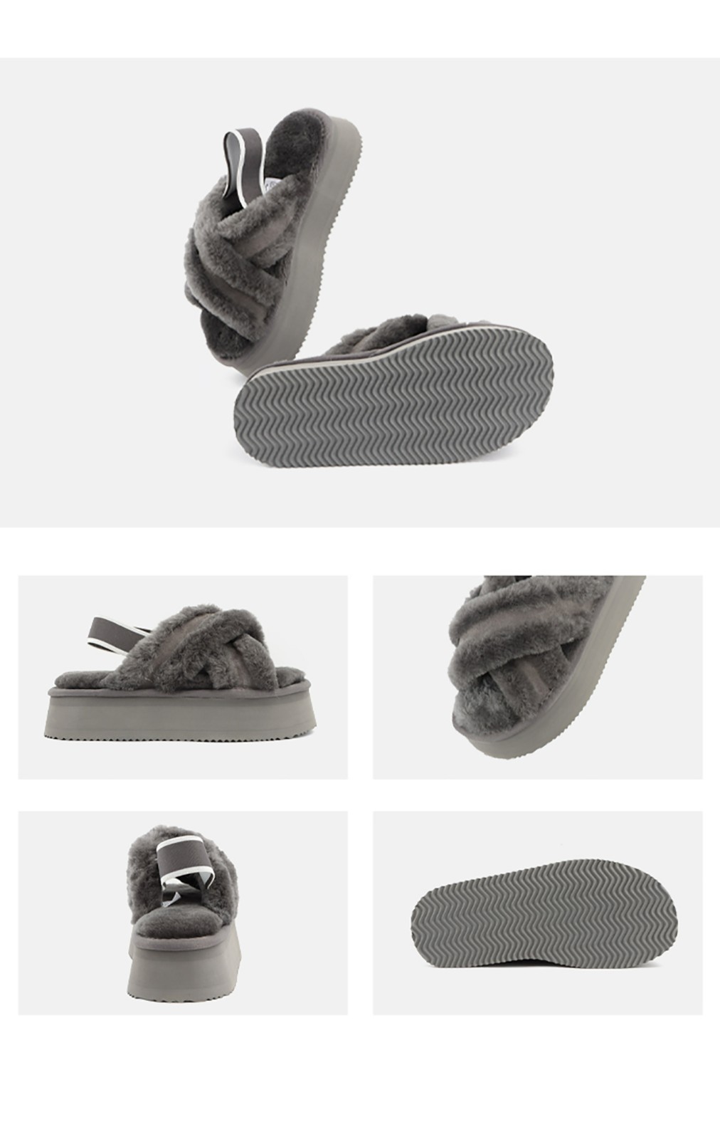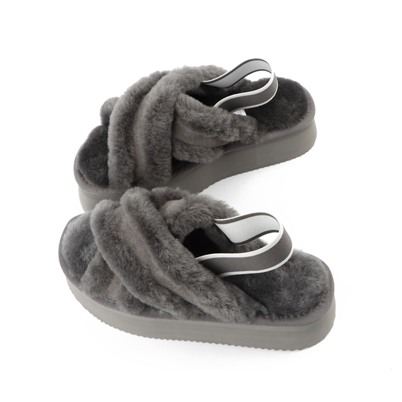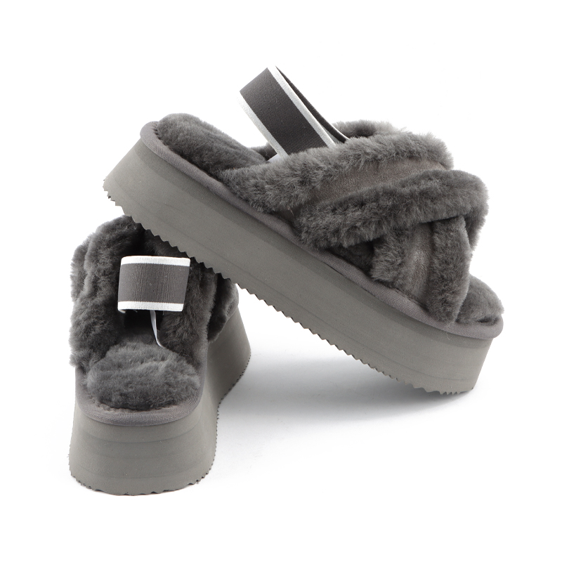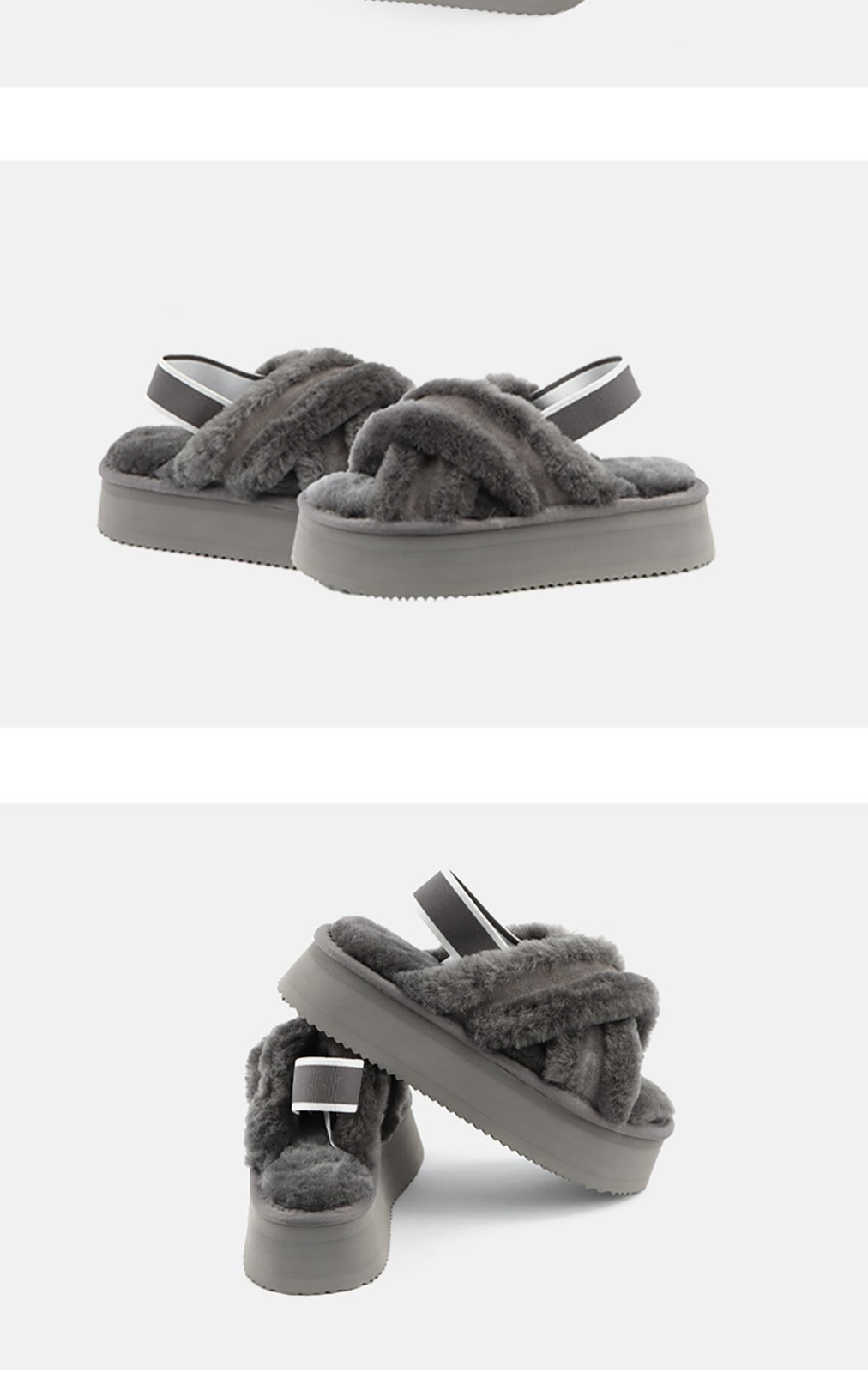 2023 autumn new open-toe elastic band plush solid color fashion casual thick sole outside wear sandals