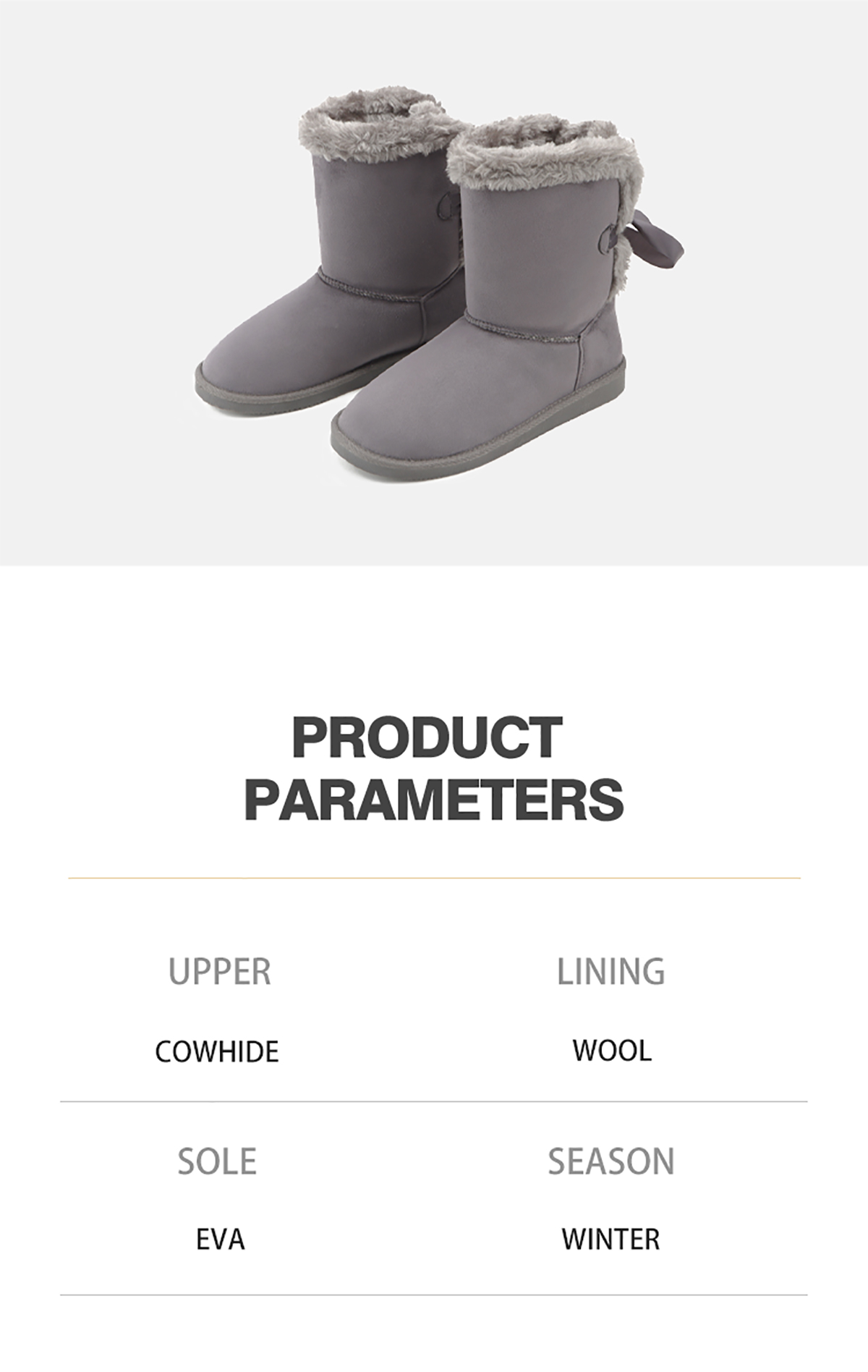 2023 Custom new women's bow strap mid-tube snow boots simple comfortable warm non-slip thickened boots