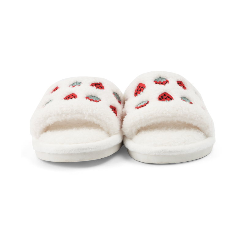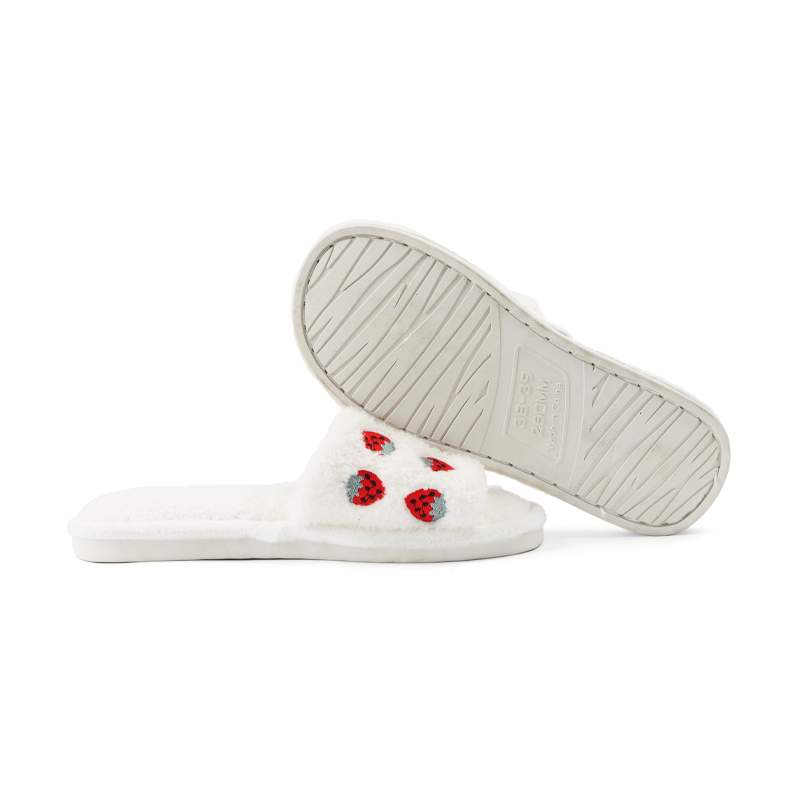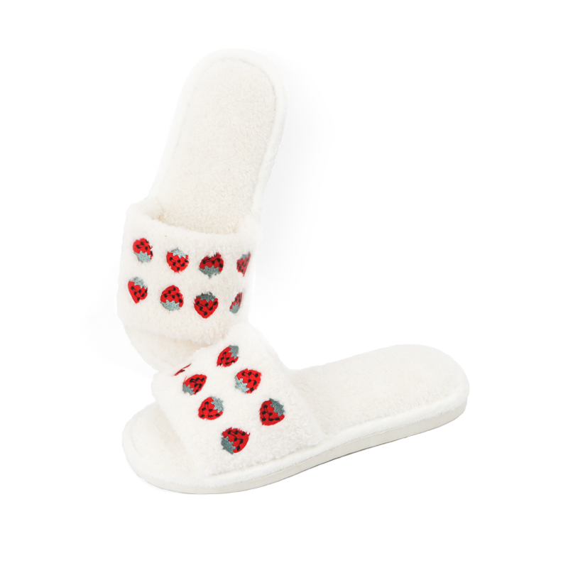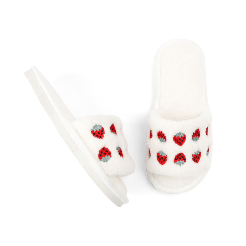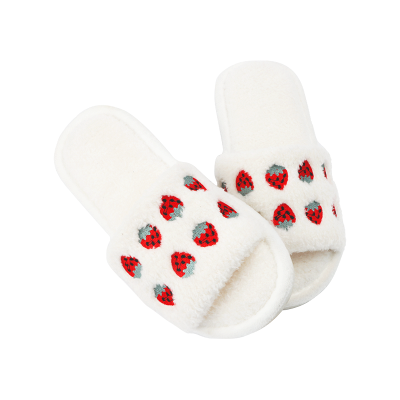 New Korean style cute strawberry embroidery slippers 2023 autumn and winter indoor non-slip slippers for women