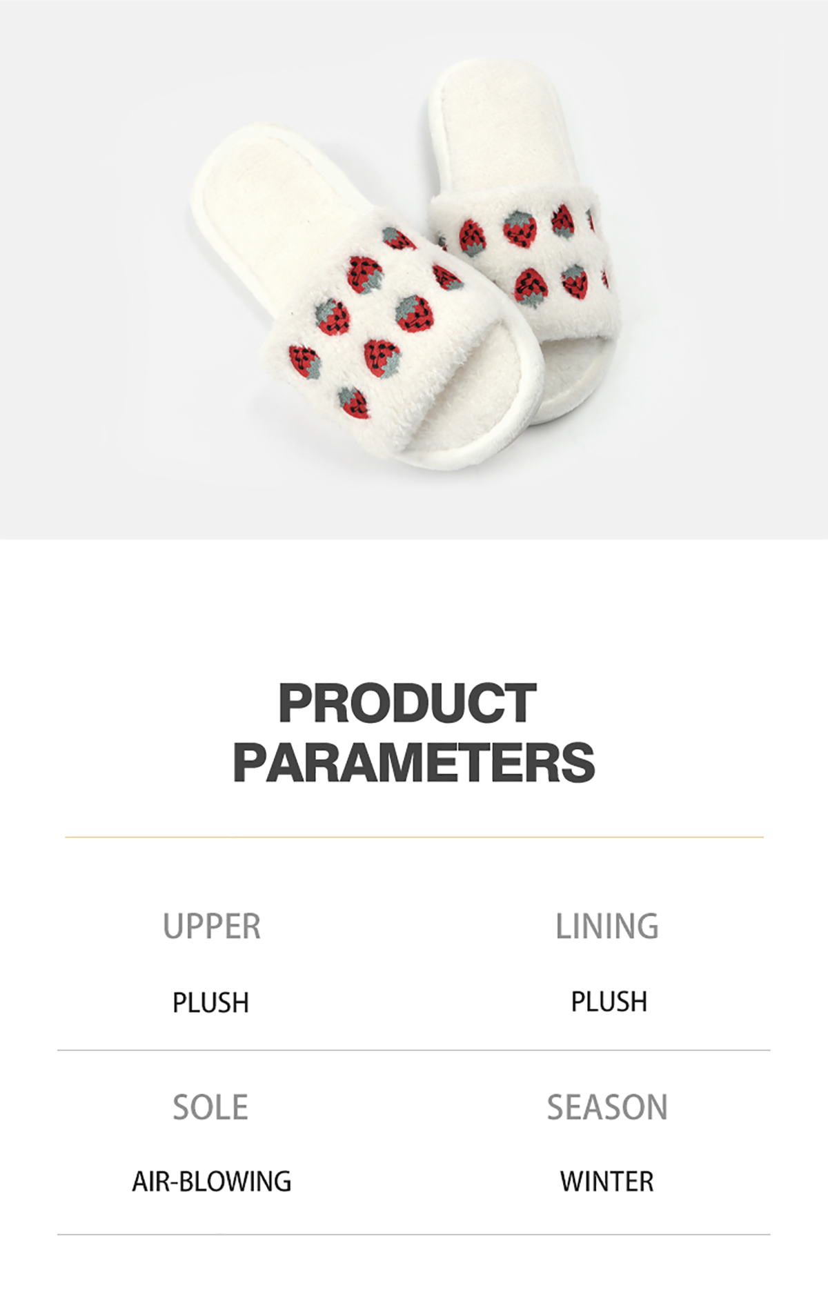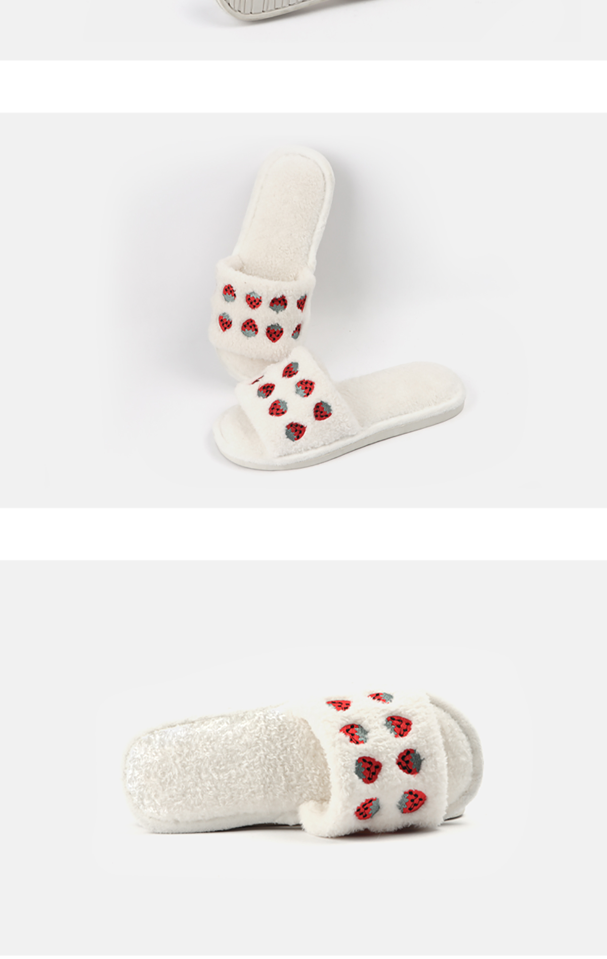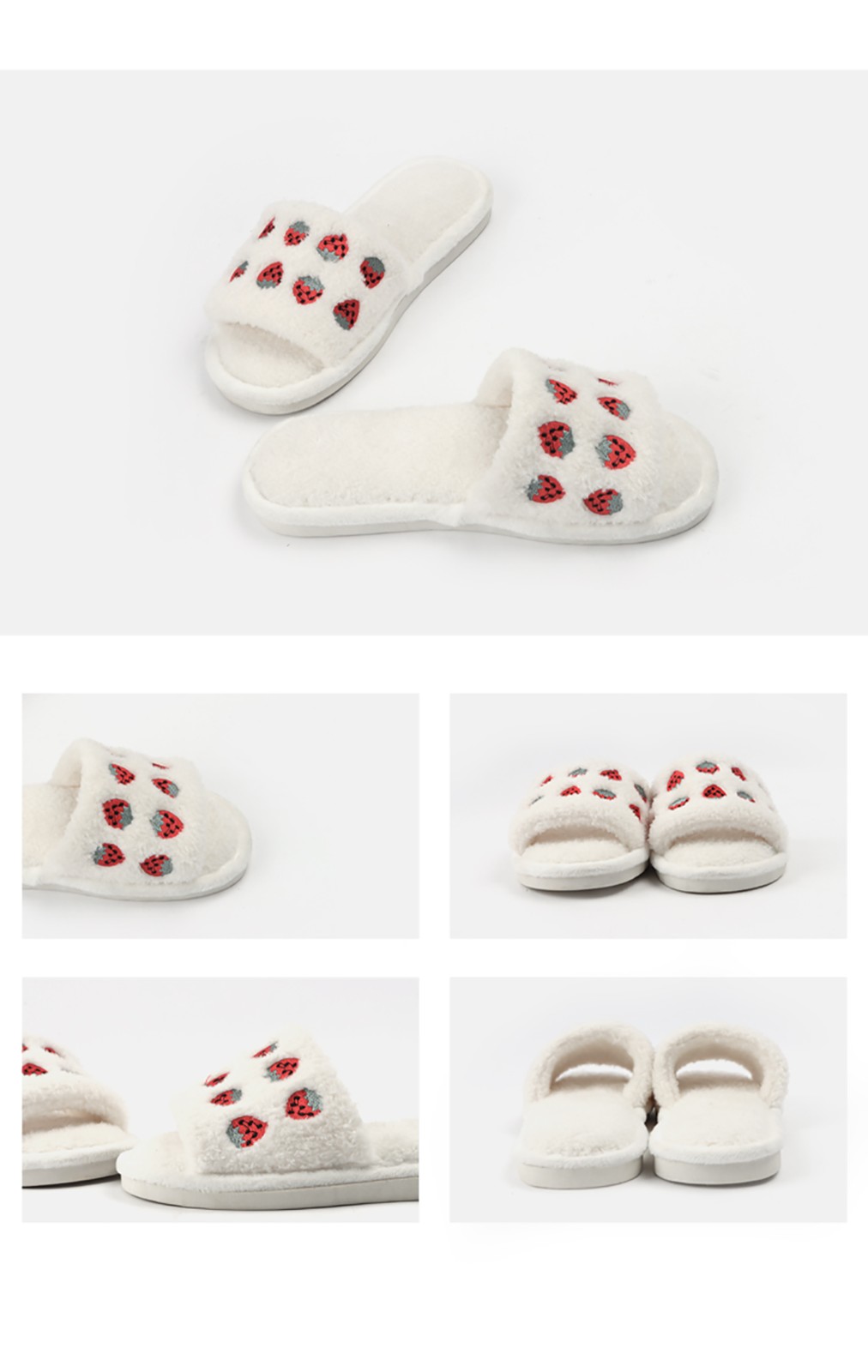 New Korean style cute strawberry embroidery slippers 2023 autumn and winter indoor non-slip slippers for women