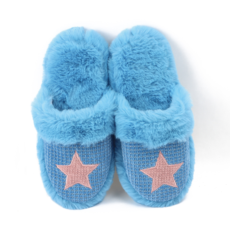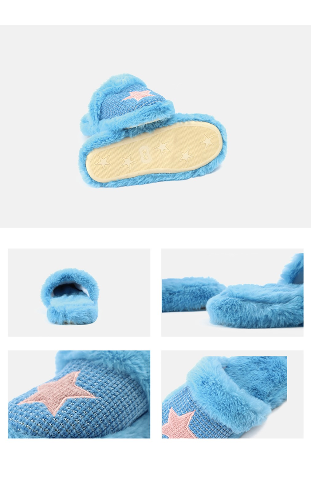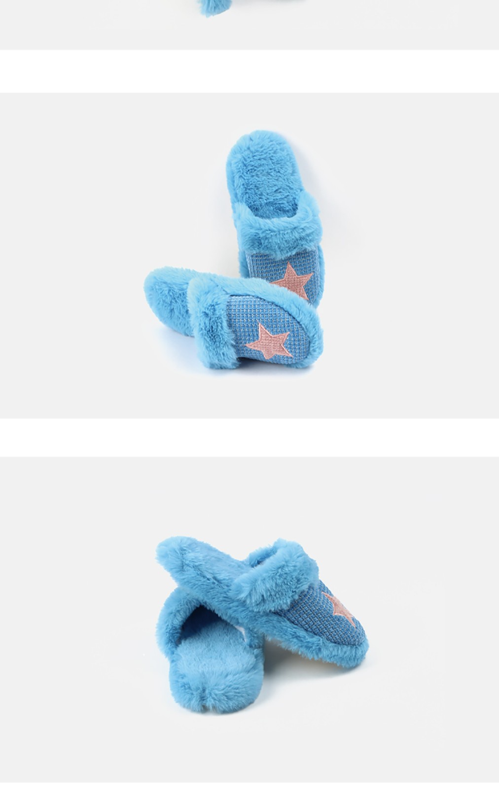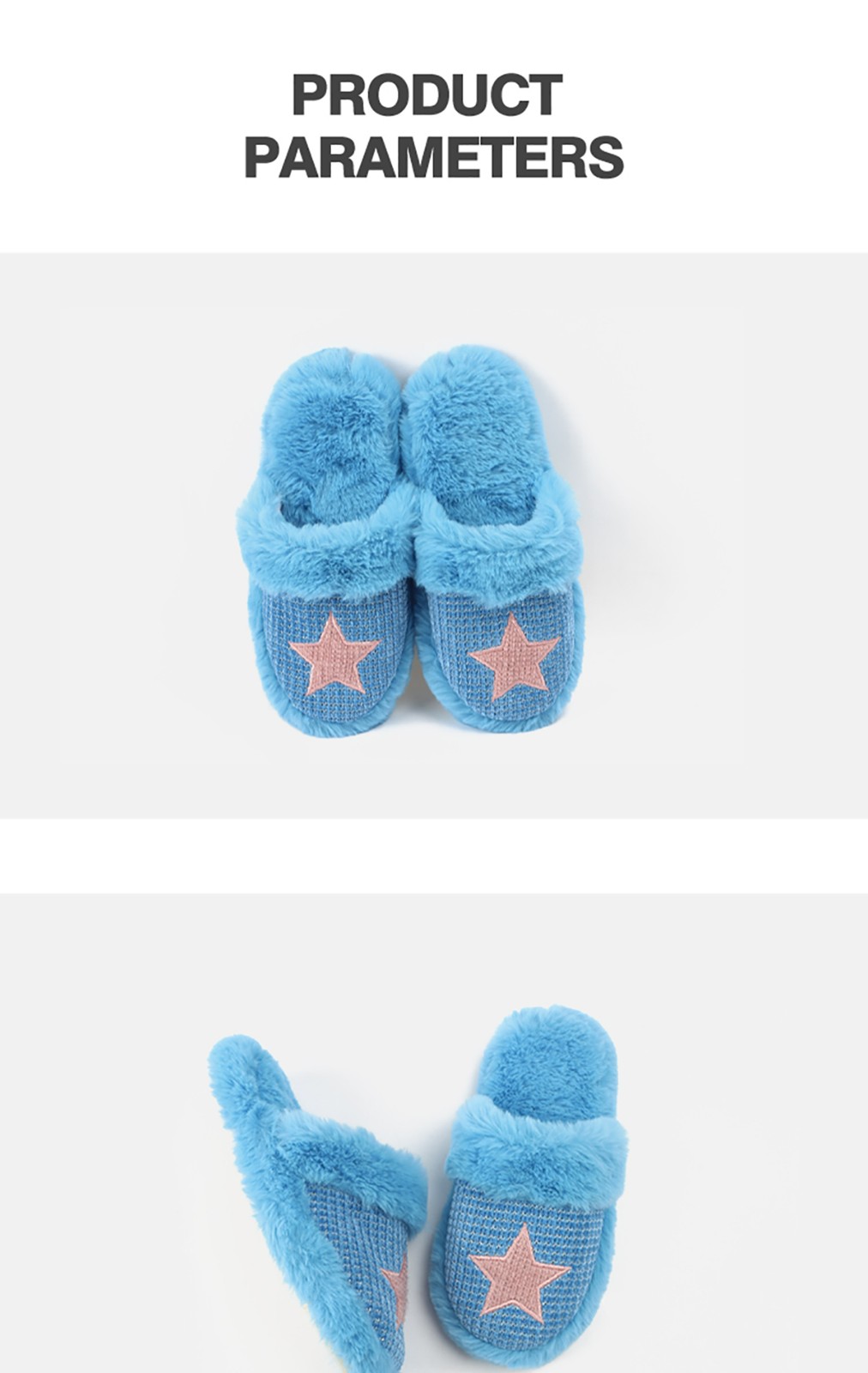 2023 autumn and winter new cute blue stars plush soft casual baotou non-slip home slippers