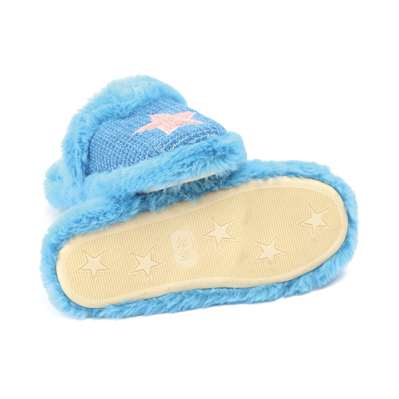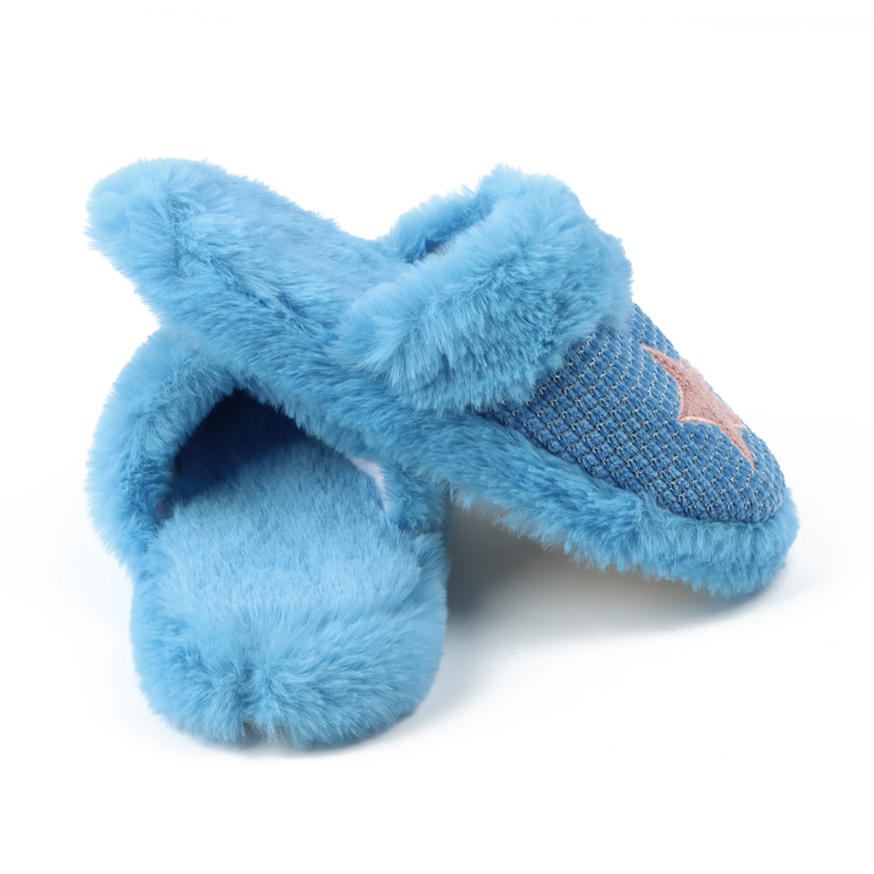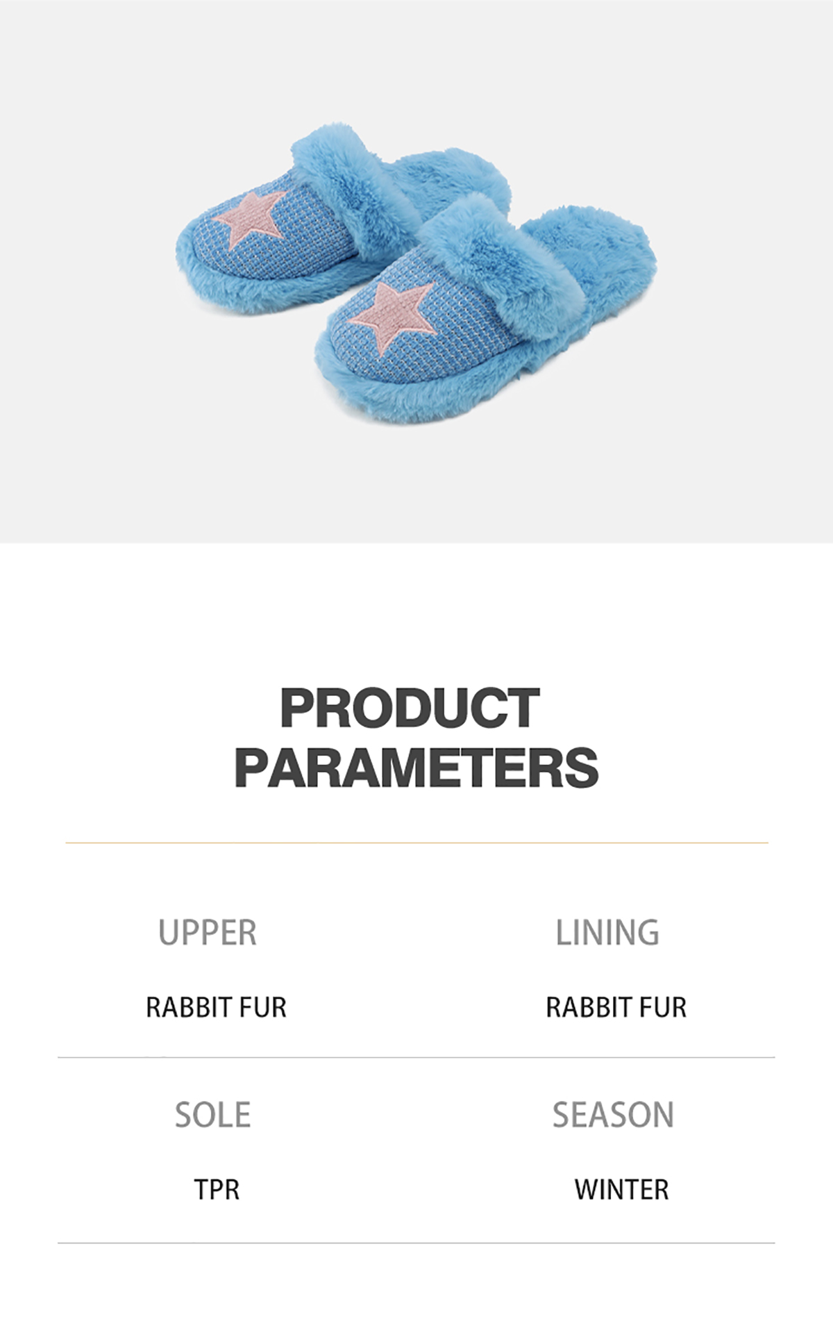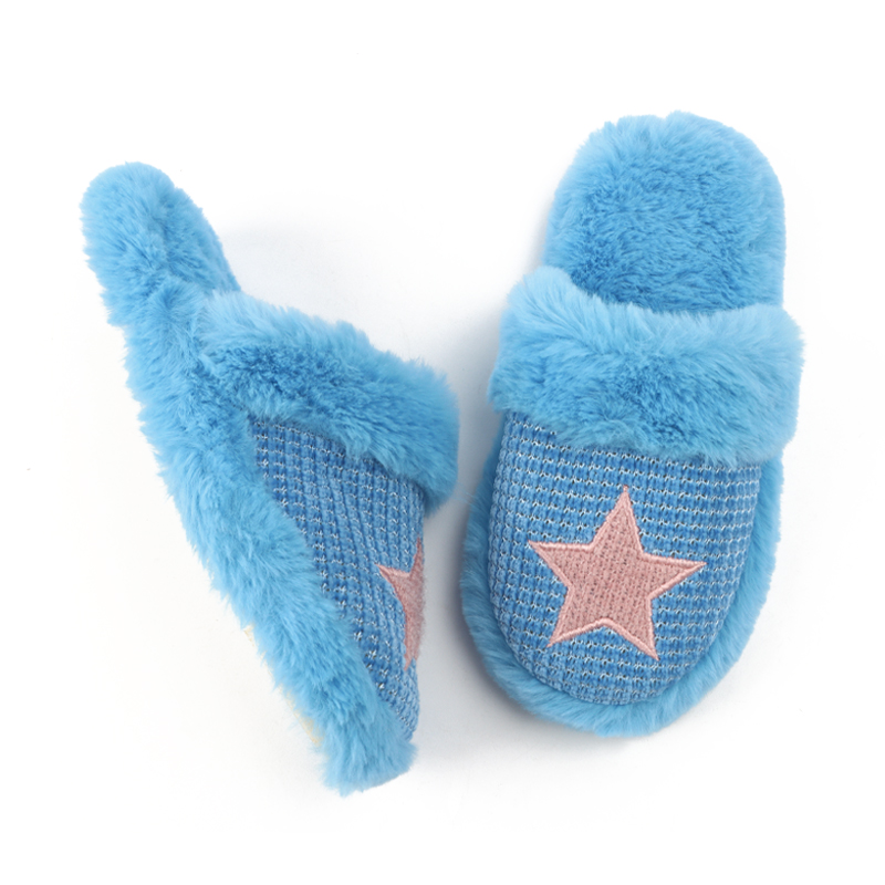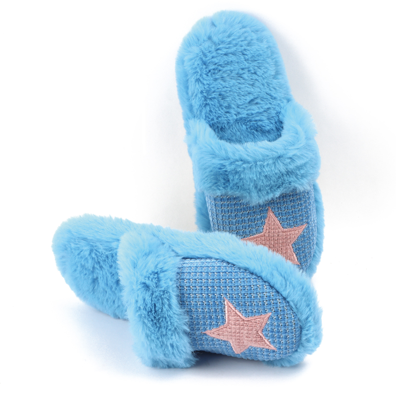 2023 autumn and winter new cute blue stars plush soft casual baotou non-slip home slippers