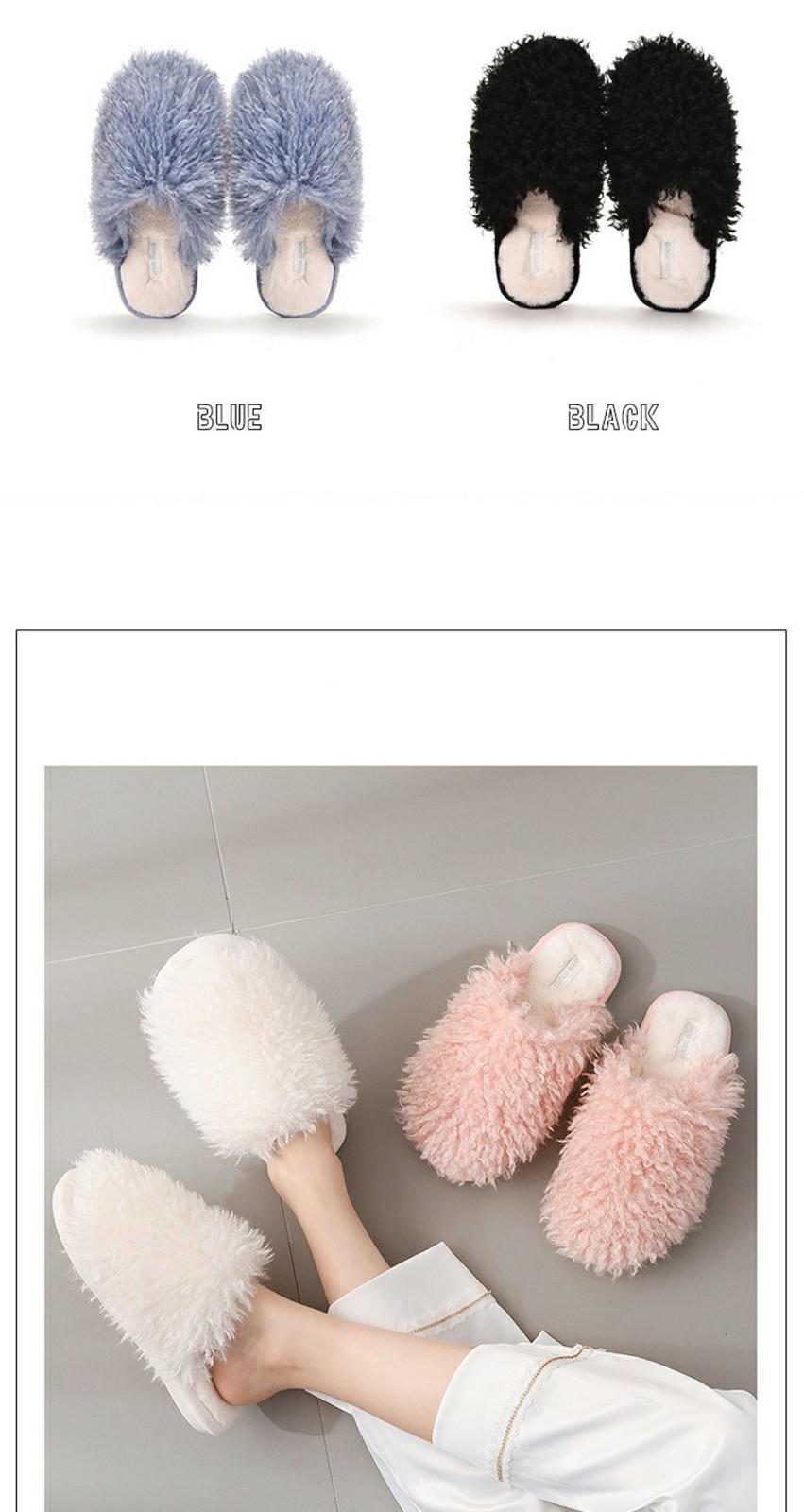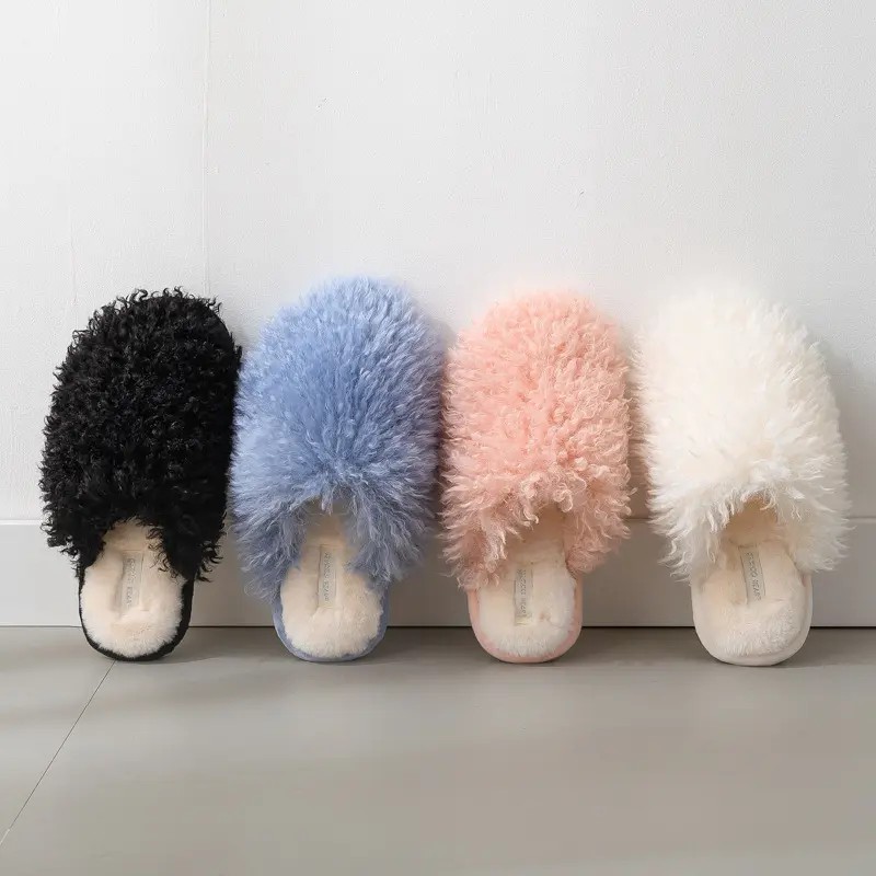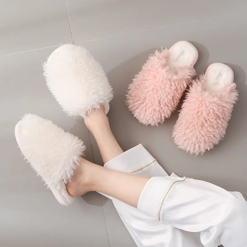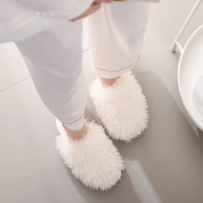 New Cotton Slippers Winter Cute Candy Color Plush Slippers Home Casual Indoor Warm Ladies Fuzzy Slippers Women Shoes 2023
