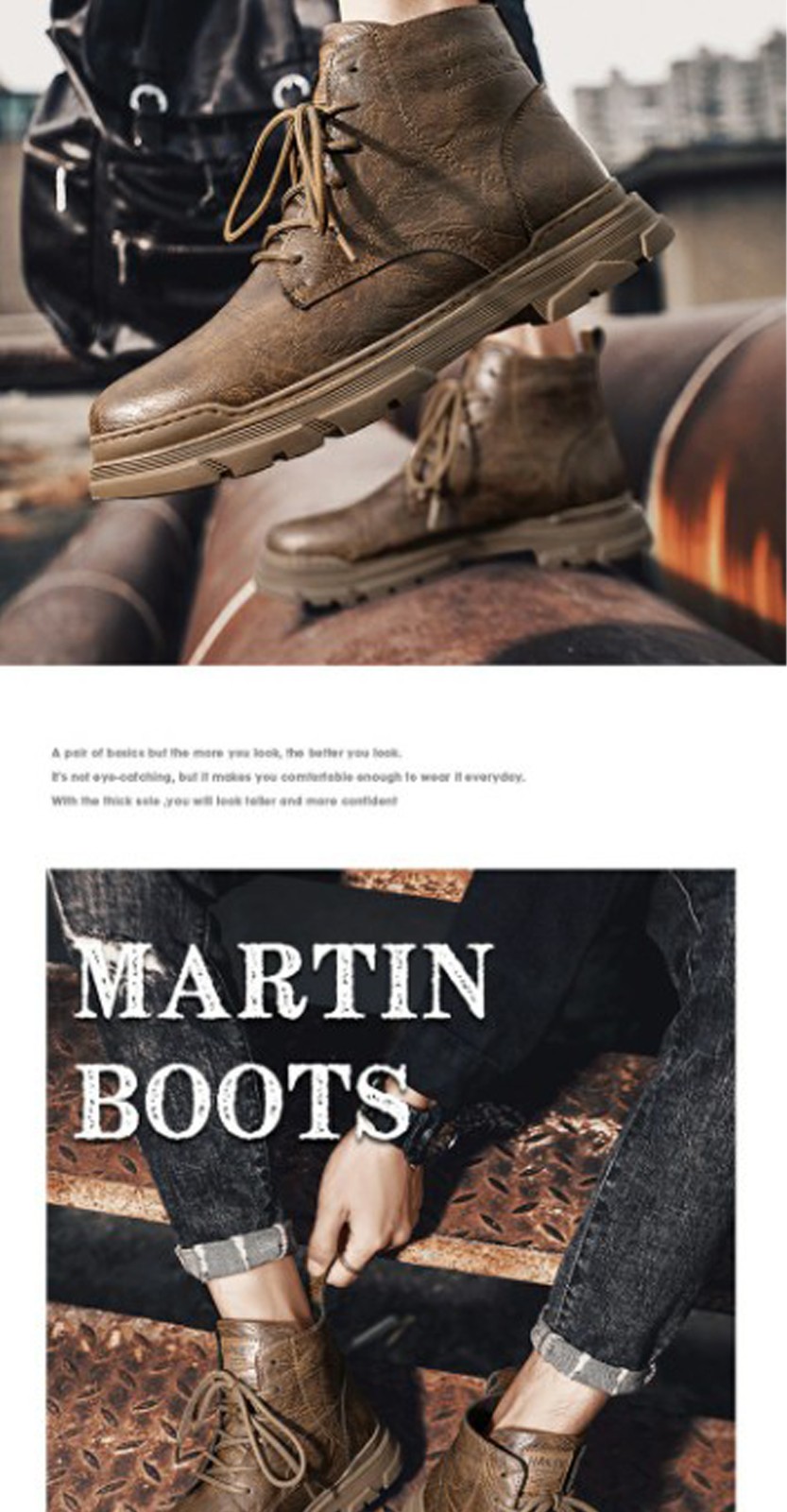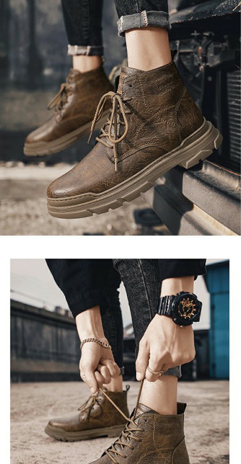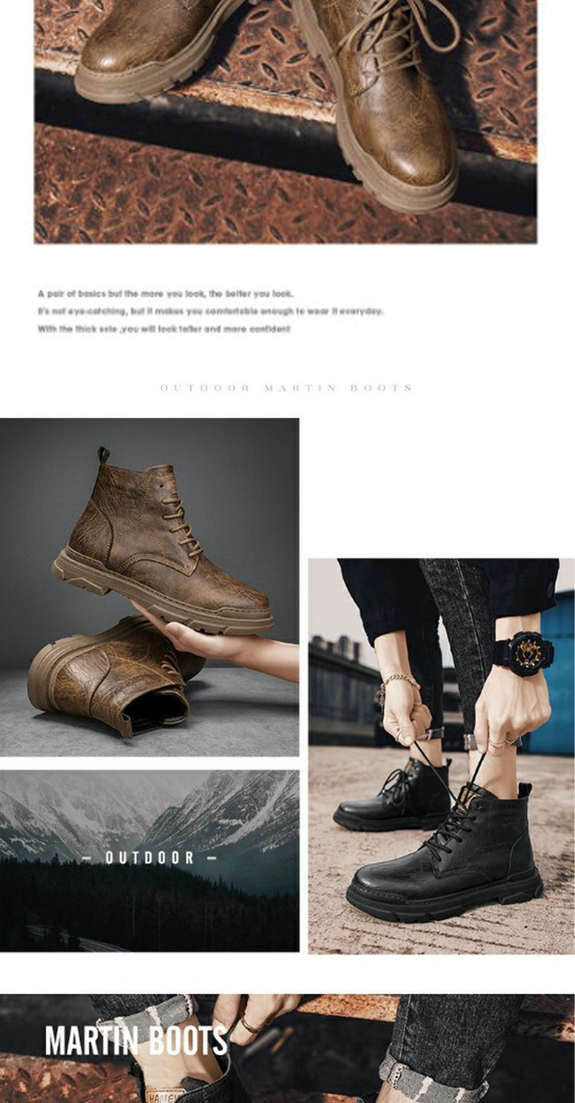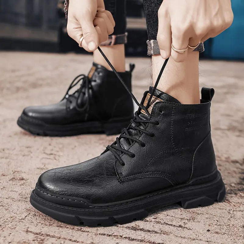 2023 Spring and winter new men's Martin boots retro anti-slip wear-resistant solid color high-top boots outdoor boots for men