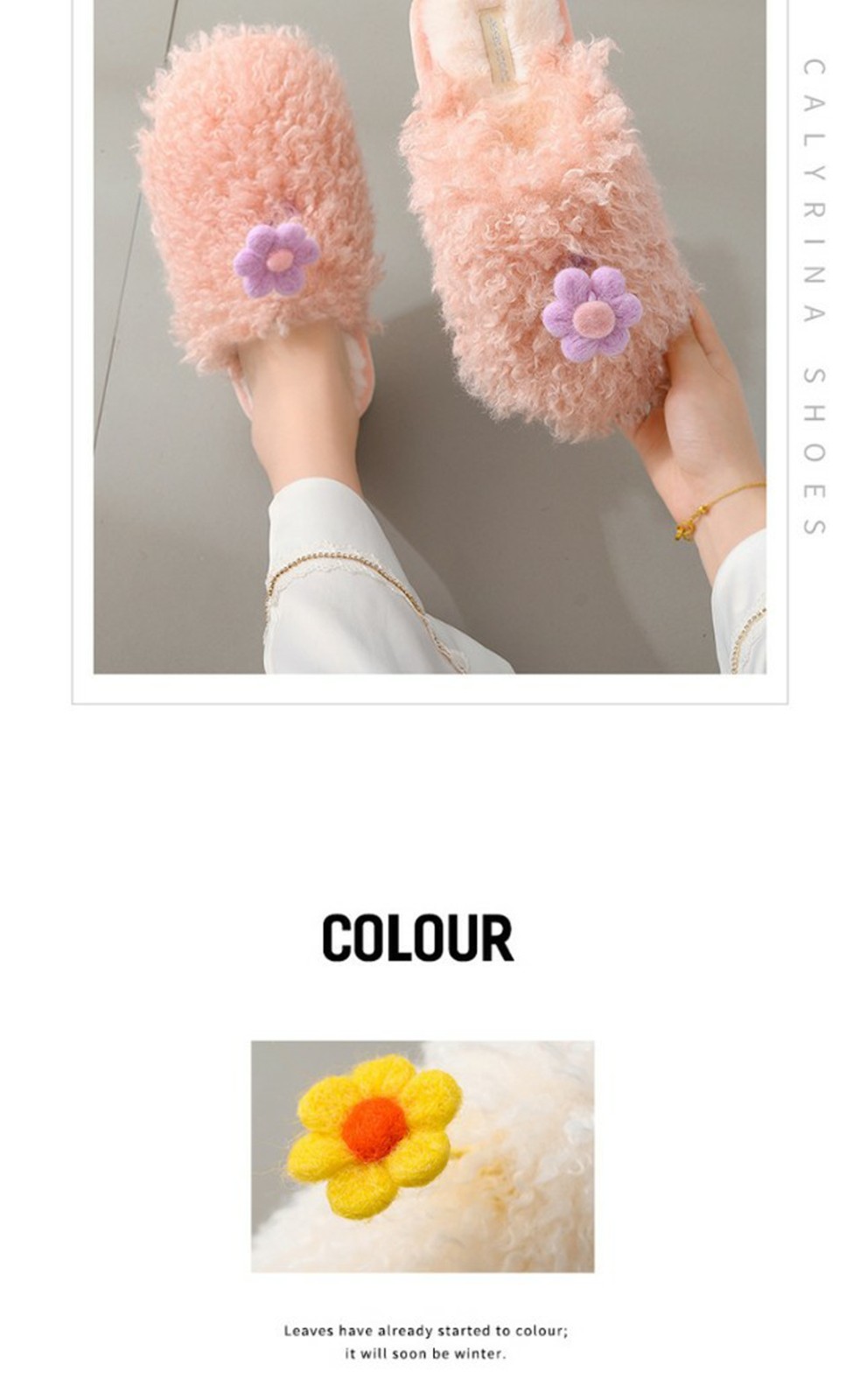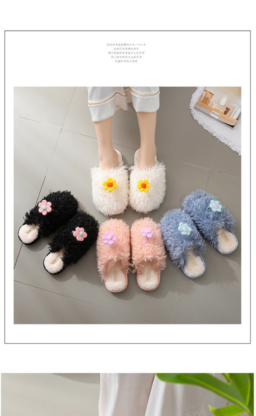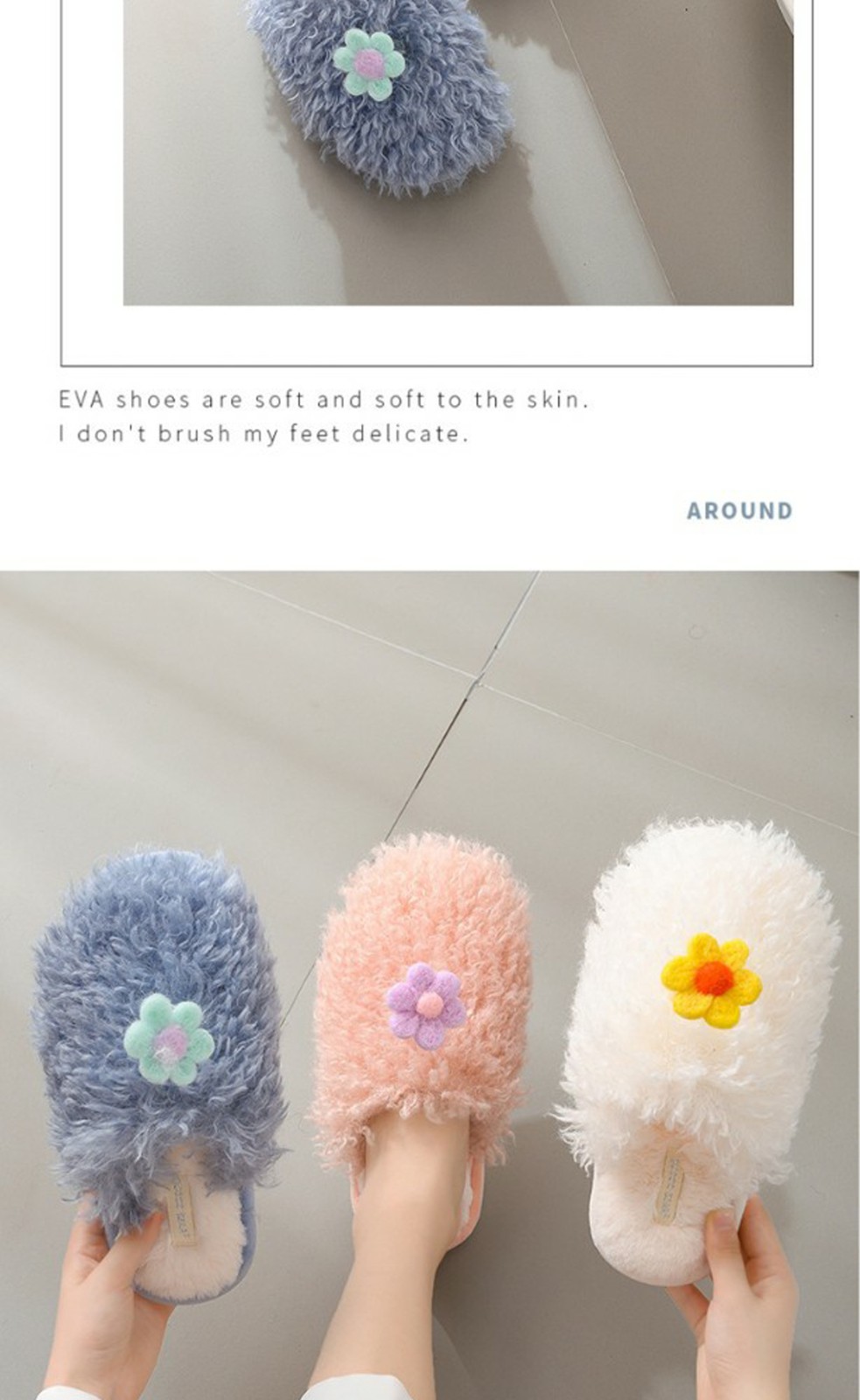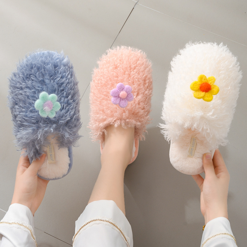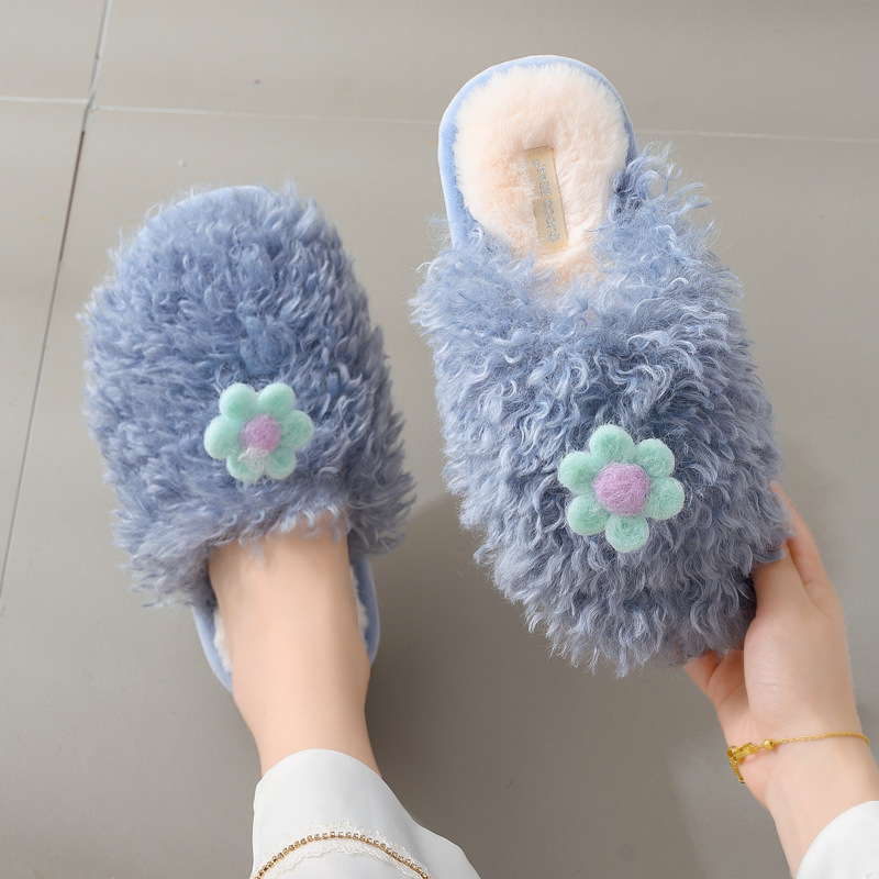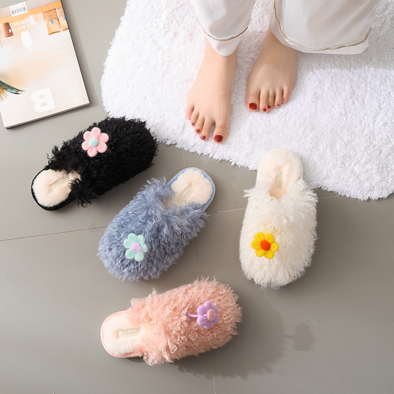 Winter Fashion Flowers Furry Home Shoes Indoor Breathable Warm Custom Closed Toe Slippers Ladies Slippers High Quality