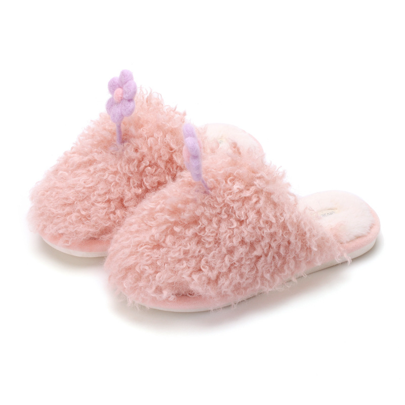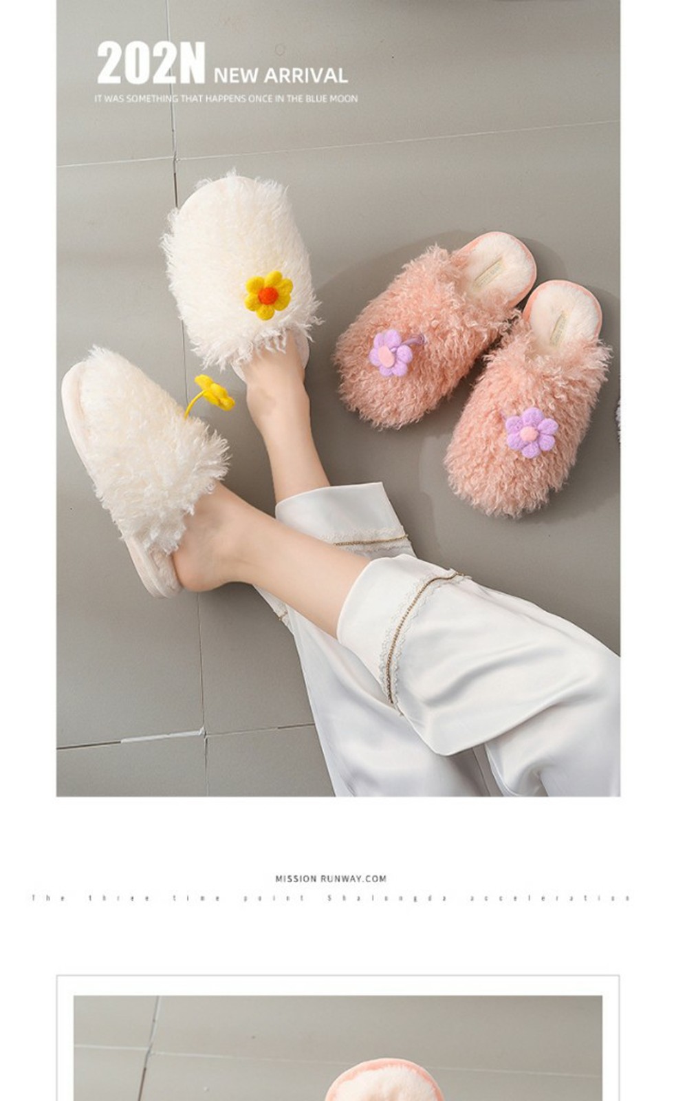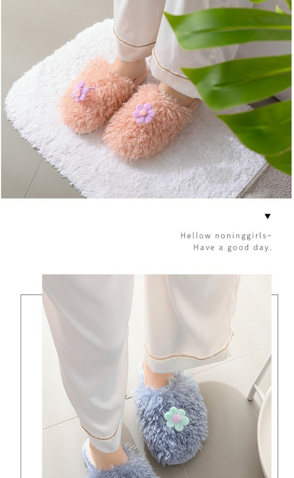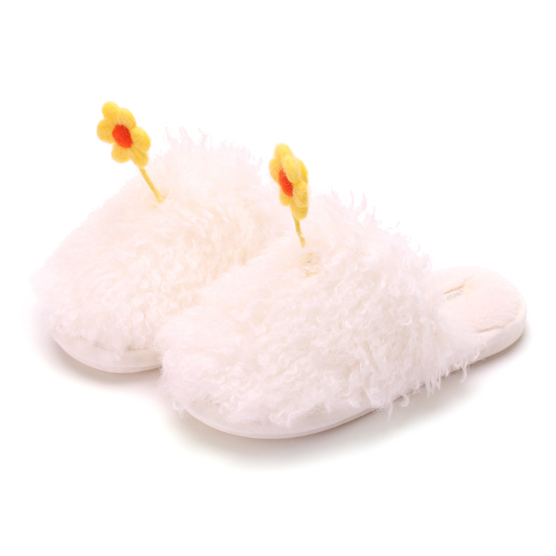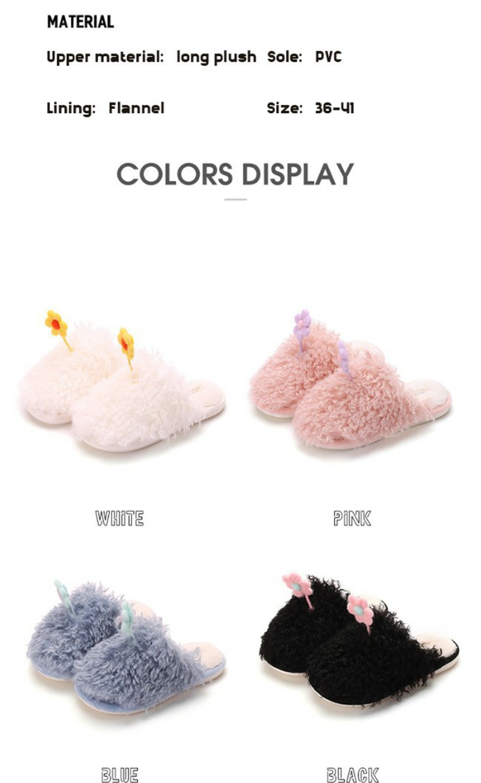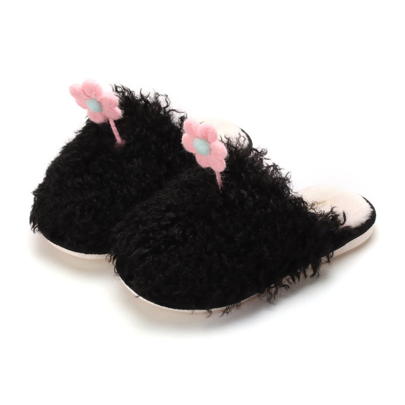 Winter Fashion Flowers Furry Home Shoes Indoor Breathable Warm Custom Closed Toe Slippers Ladies Slippers High Quality