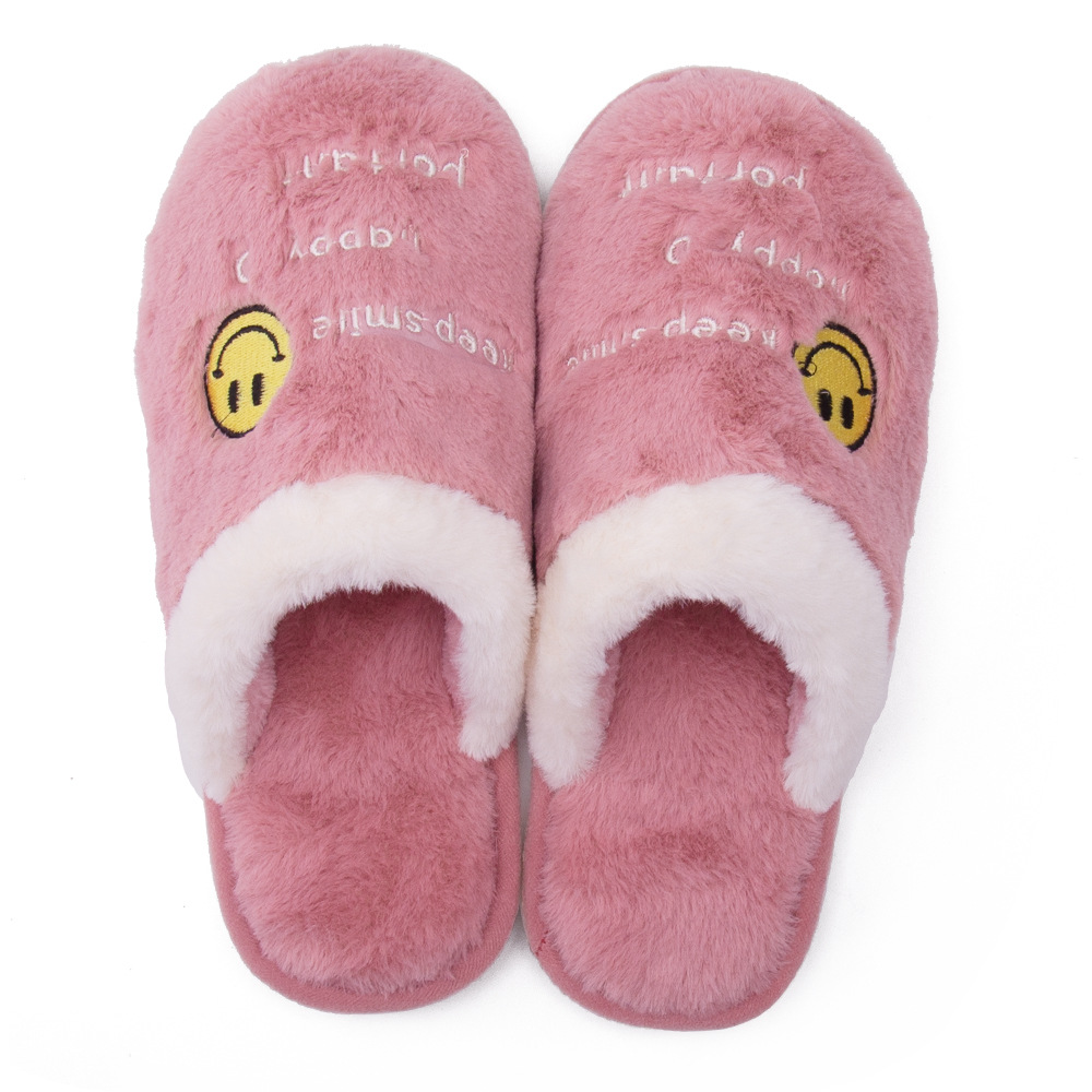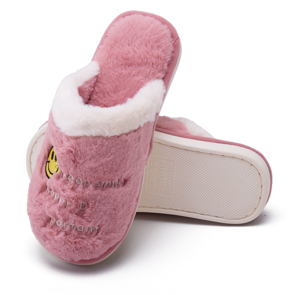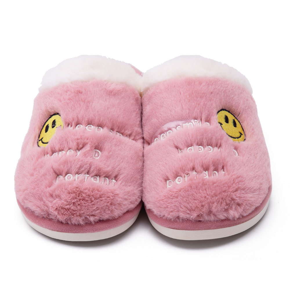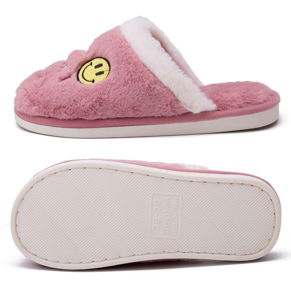 Custom Leisure Winter Warm Indoor Plush Smiley Slippers Non-slip Lightweight Home Shoes For Women Smiley Slippers