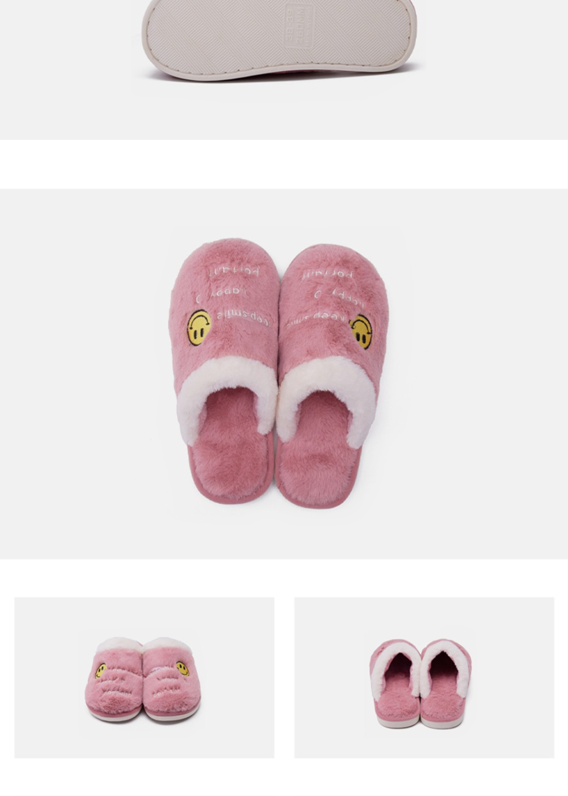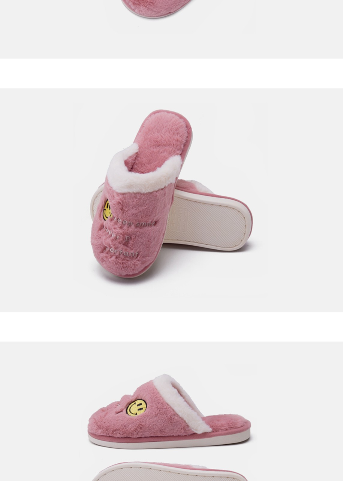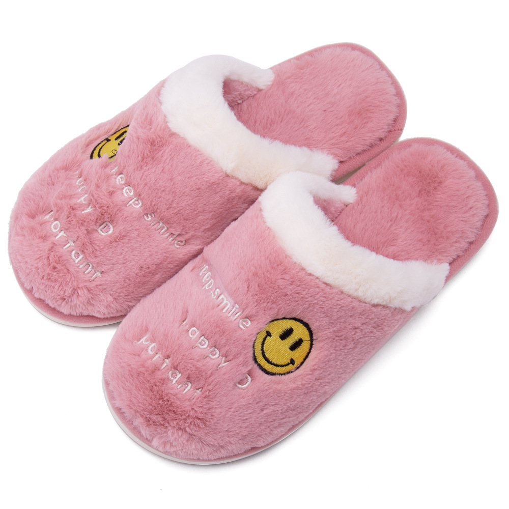 Custom Leisure Winter Warm Indoor Plush Smiley Slippers Non-slip Lightweight Home Shoes For Women Smiley Slippers
