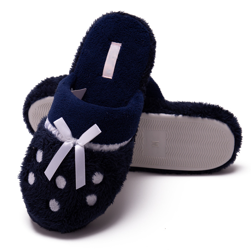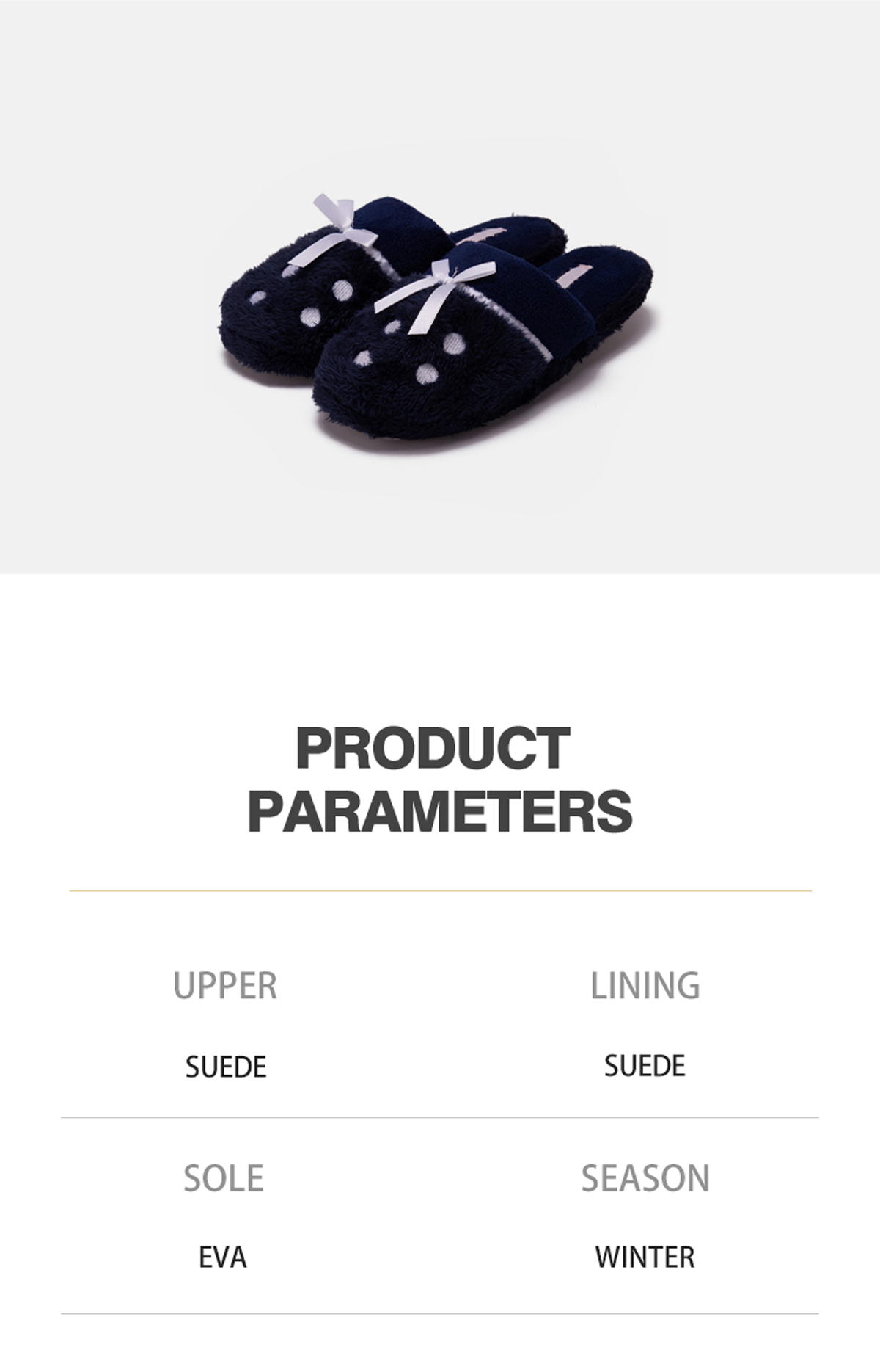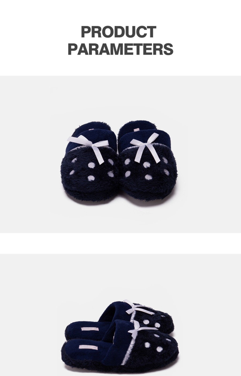 2023 Custom New Bow Polka Dot Slippers Winter Fashion Warm Furry Non-slip Home Slipper Shoes Men Casual Shoes