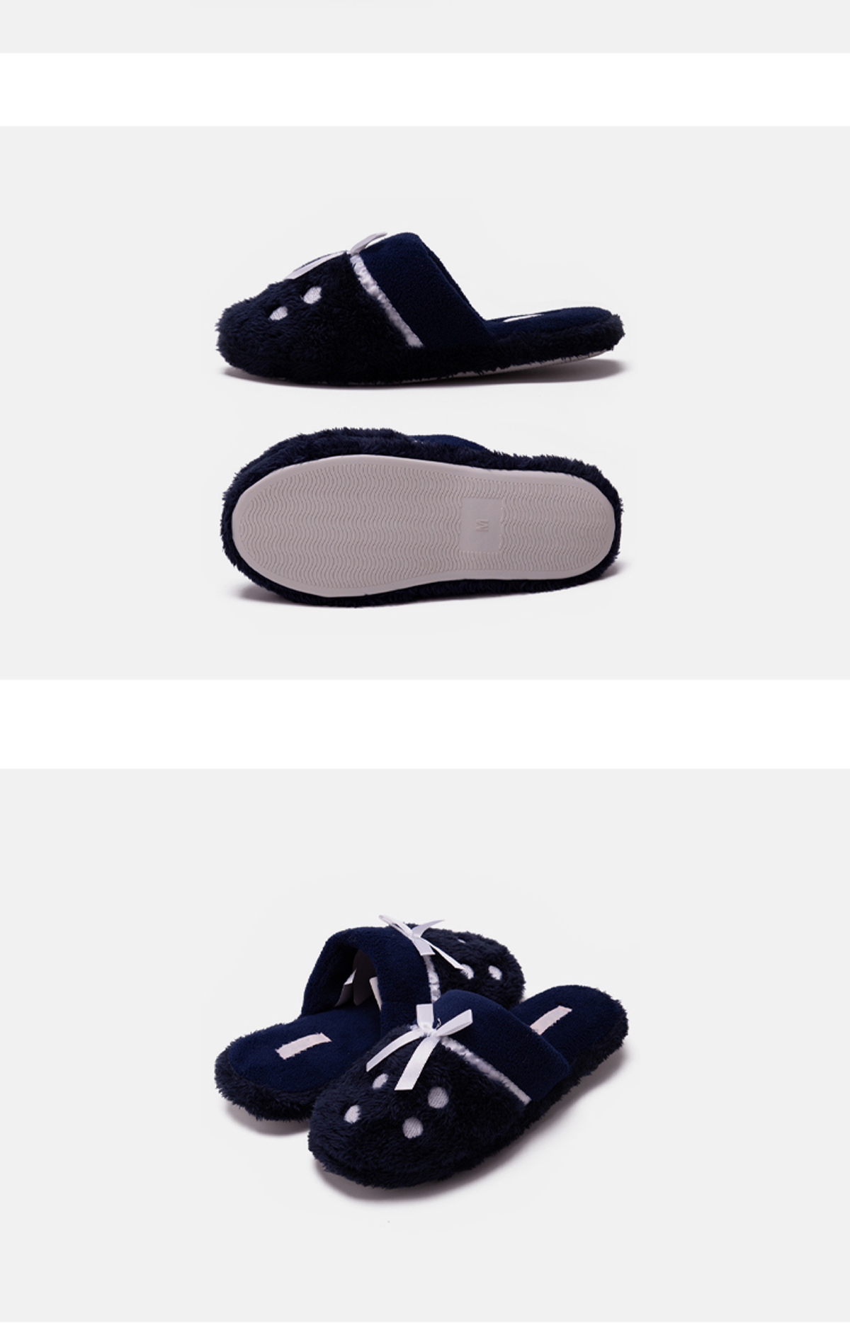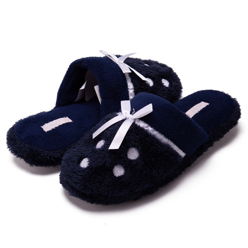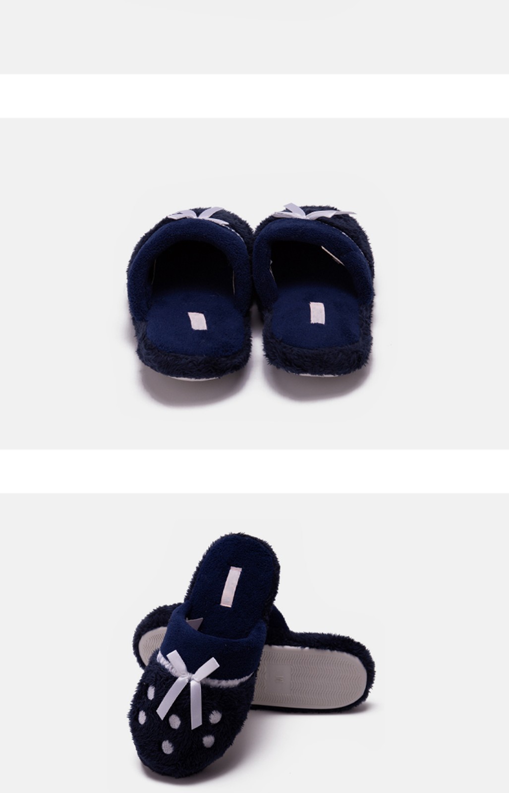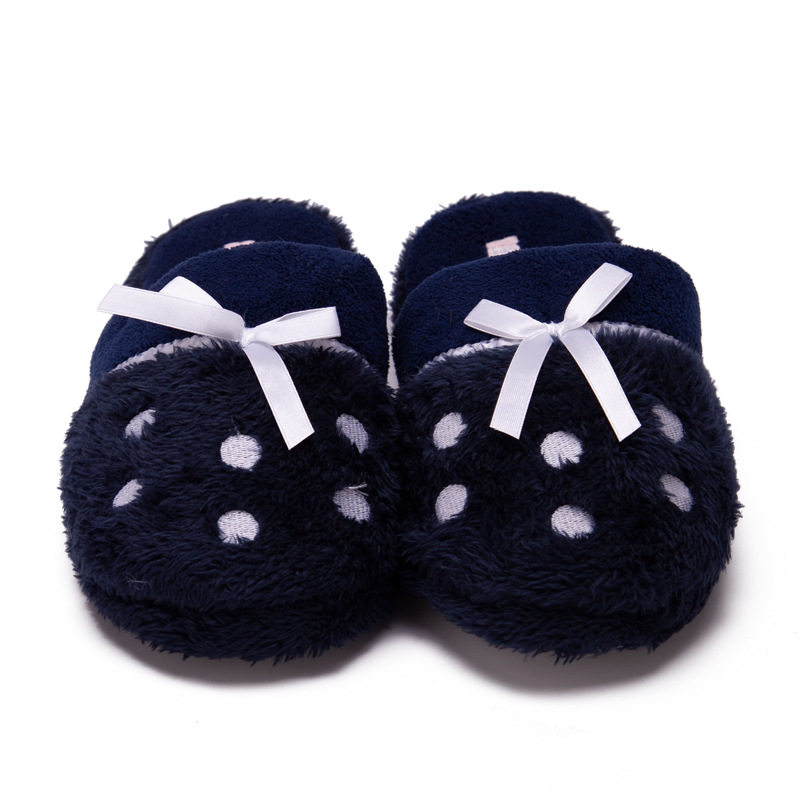 2023 Custom New Bow Polka Dot Slippers Winter Fashion Warm Furry Non-slip Home Slipper Shoes Men Casual Shoes