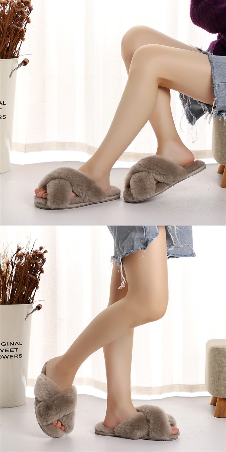 Ladies Fashion Trend Open Toe Fluffy Slippers Custom Home Indoor Warm Wool Light Weight Slippers Mens Luxury Shoes