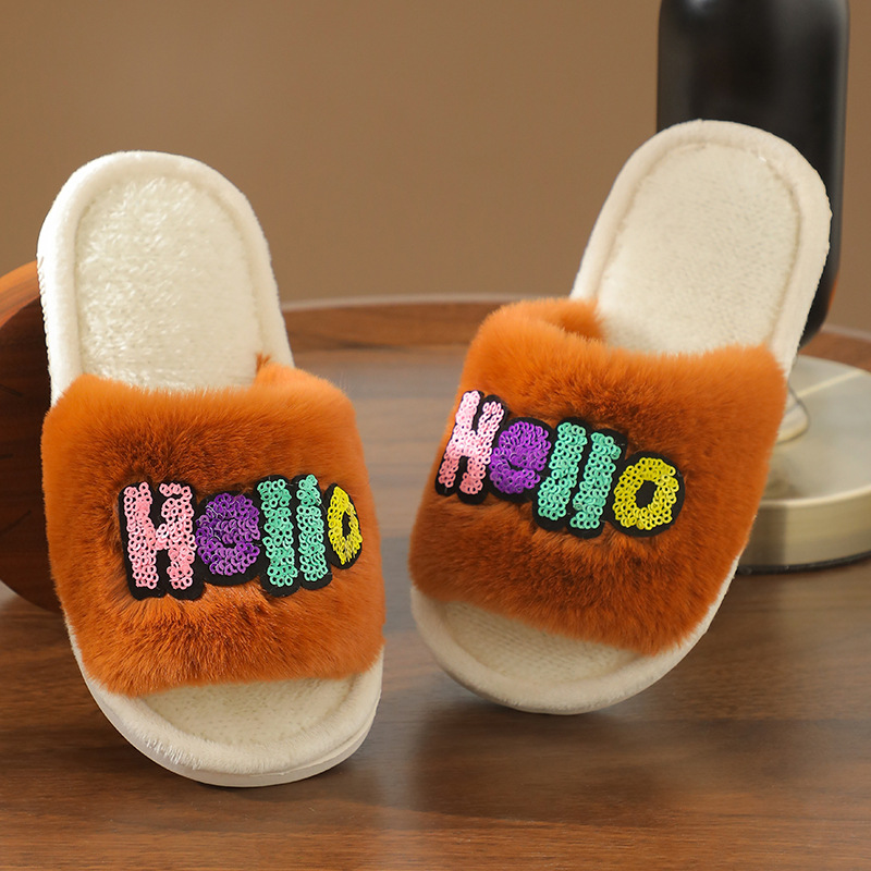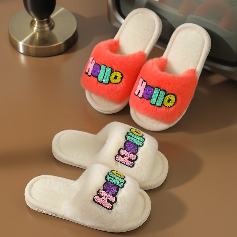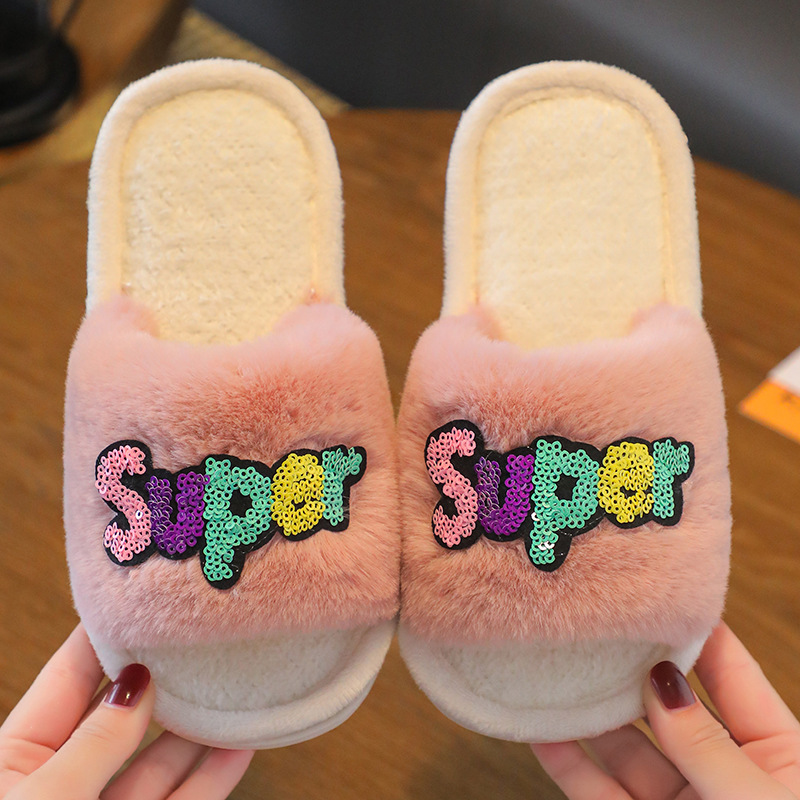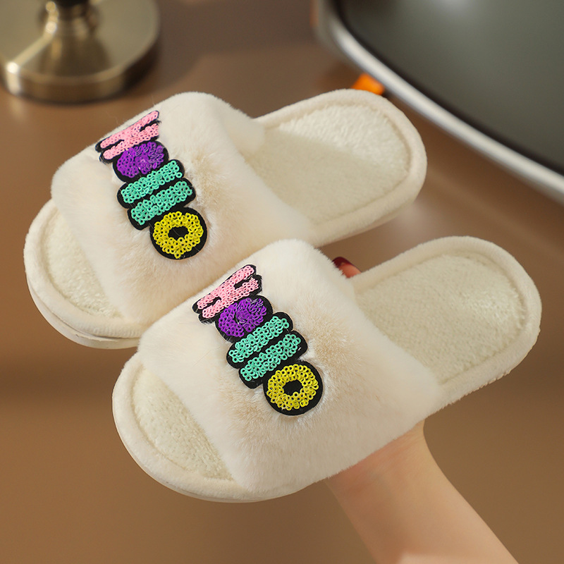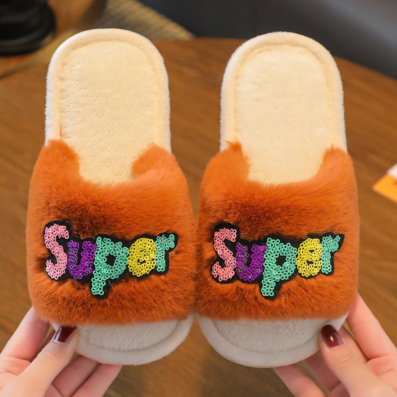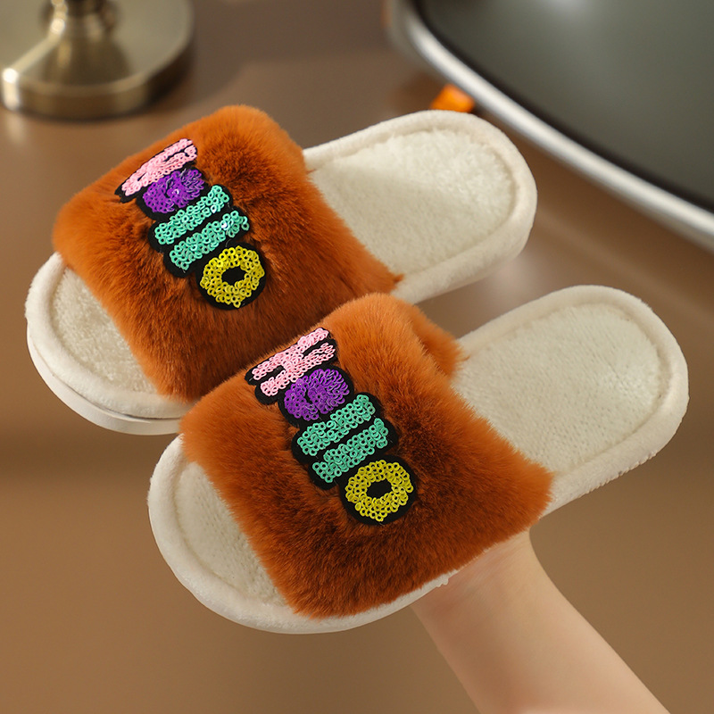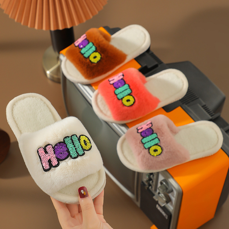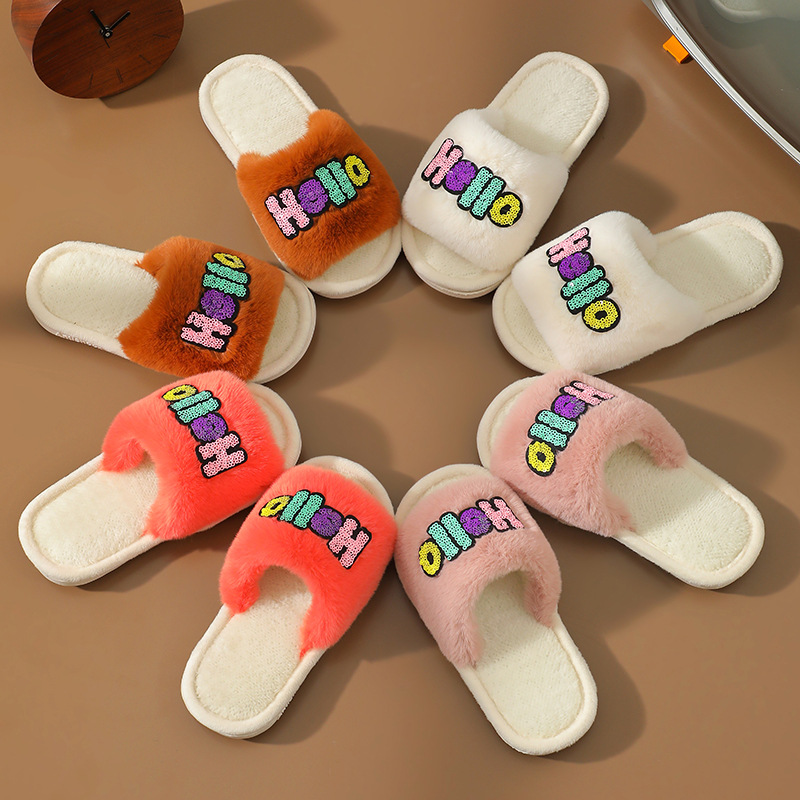 2023 Custom Fashion Children's Cotton Slippers Indoor Home Cute Cartoon Non-slip Soft Fluffy Slippers Shoes Children