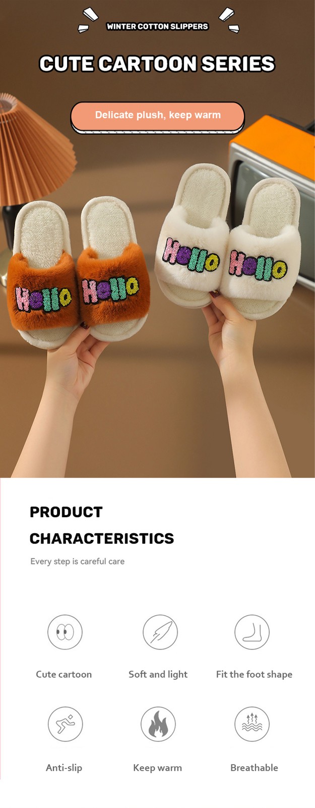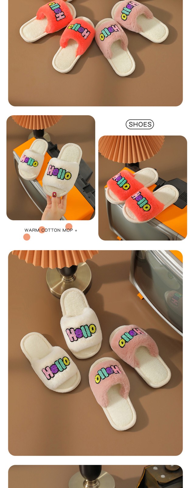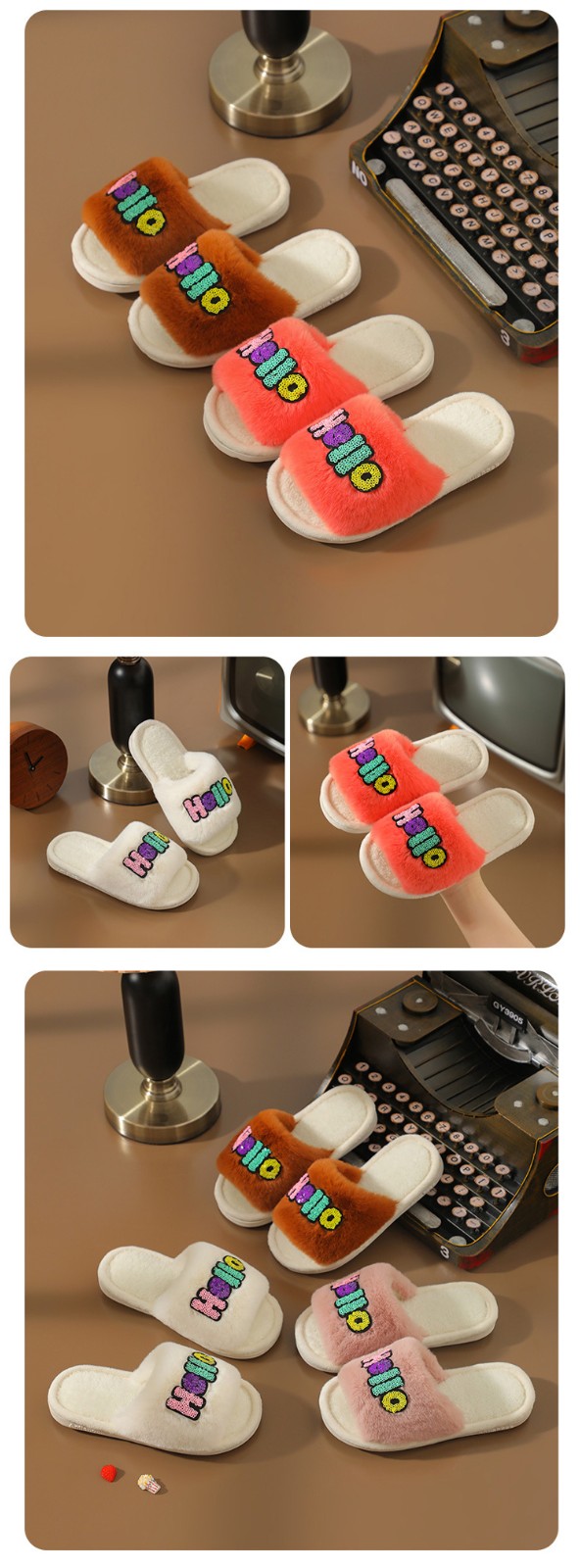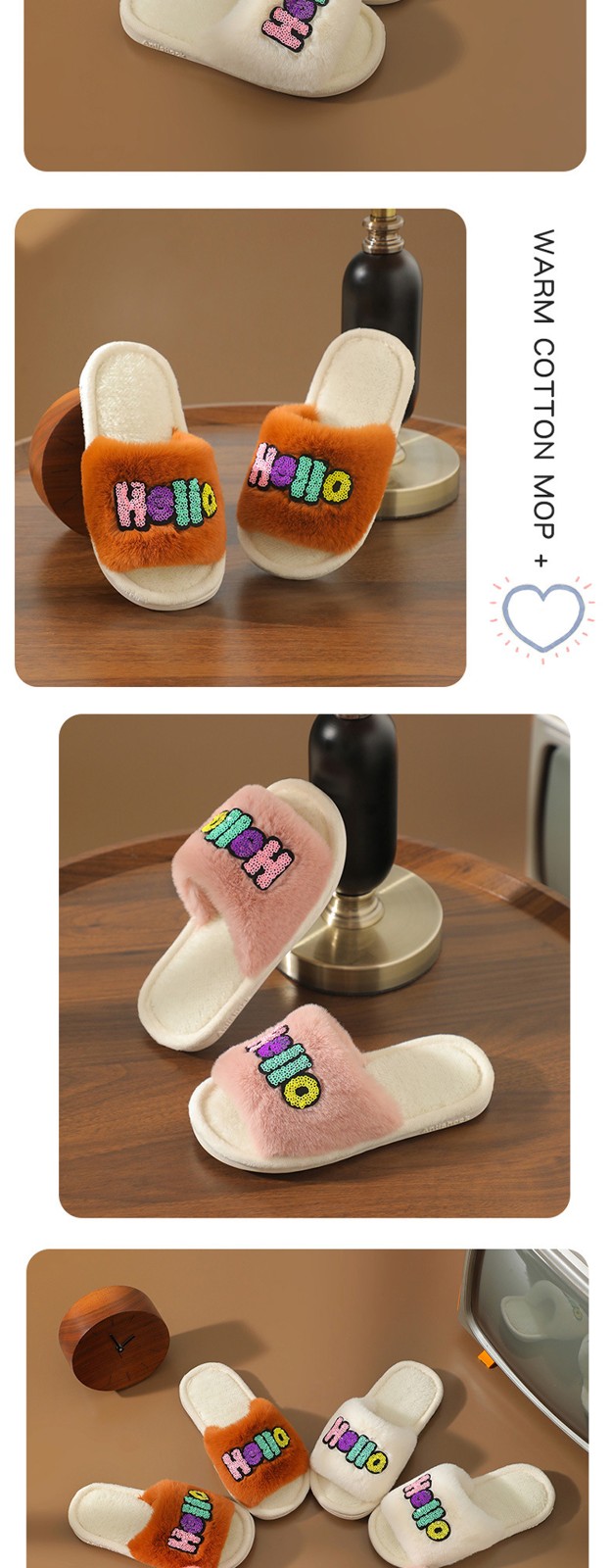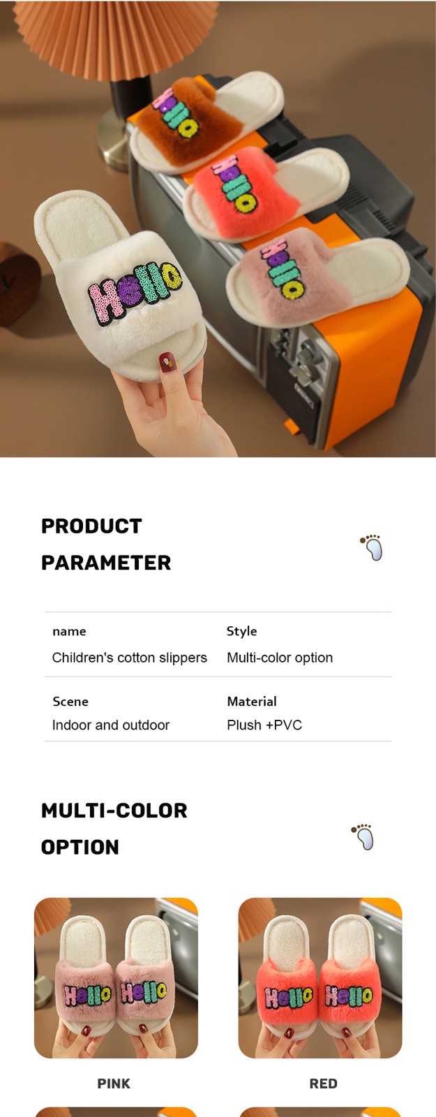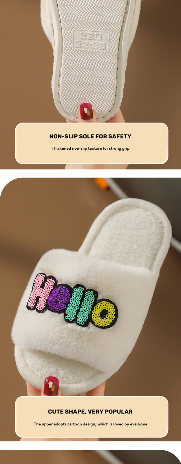 2023 Custom Fashion Children's Cotton Slippers Indoor Home Cute Cartoon Non-slip Soft Fluffy Slippers Shoes Children