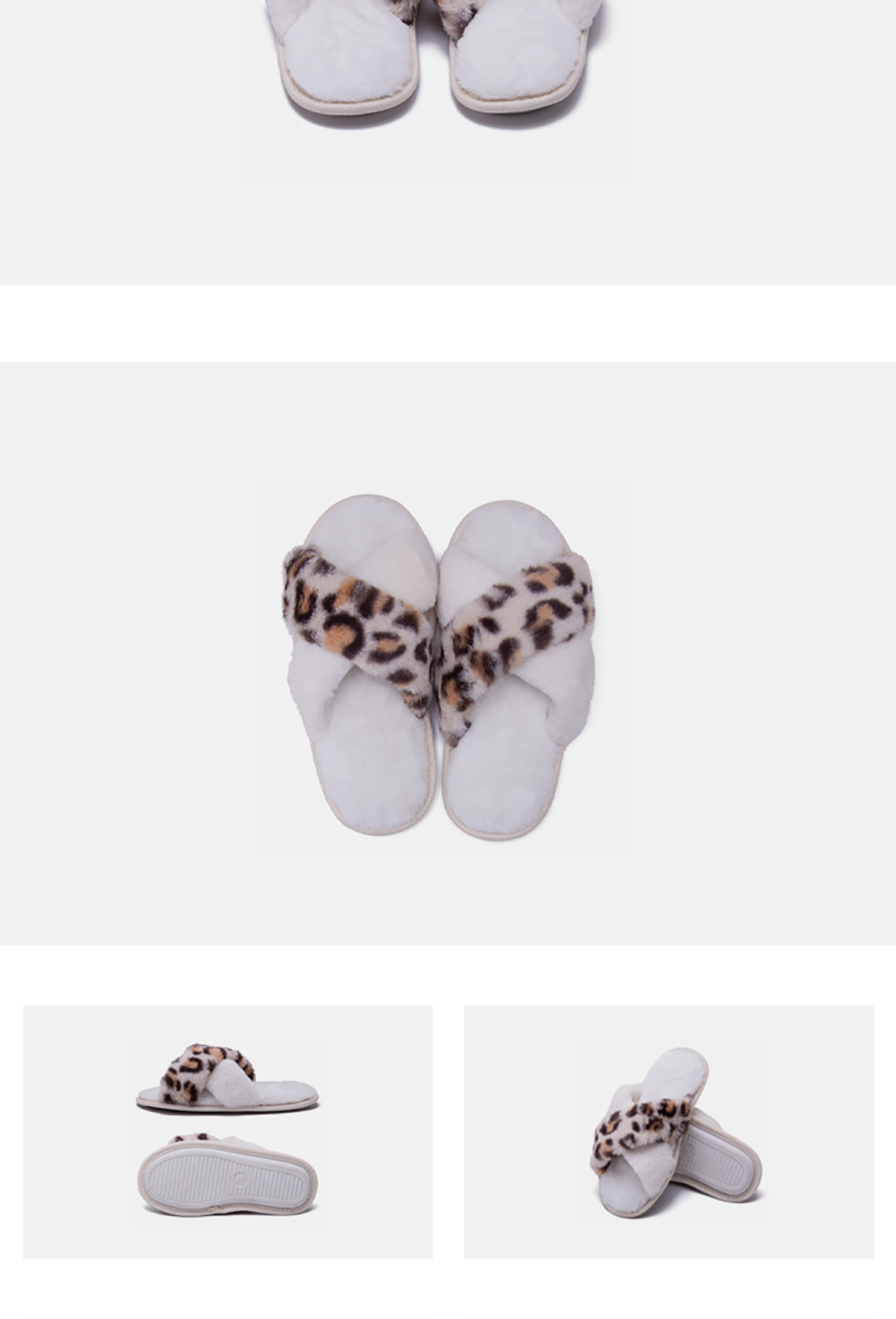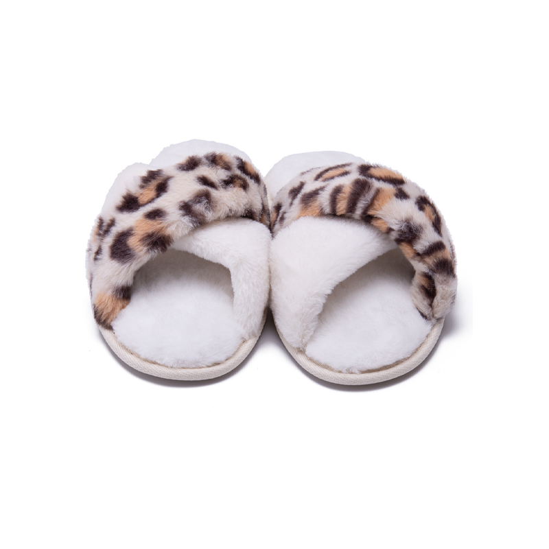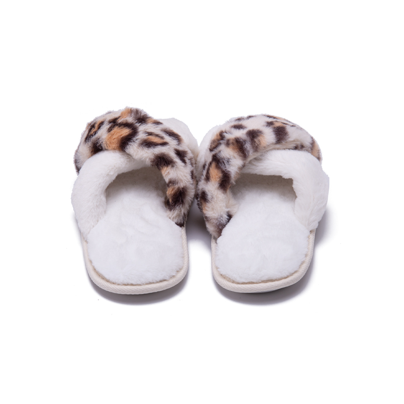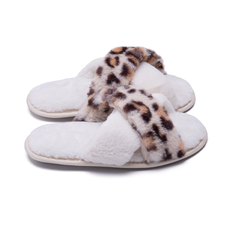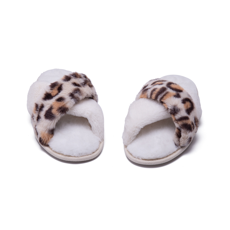 Custom Winter Home Leopard Print Warm Slippers Fashion Non-slip Fluffy Cross Strap Slippers White Shoes Men