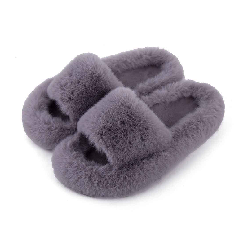Fluffy Home Warm Slippers Winter Custom Simple Solid Color Indoor Anti-Slippery Slippers Wholesale Flip Flops
