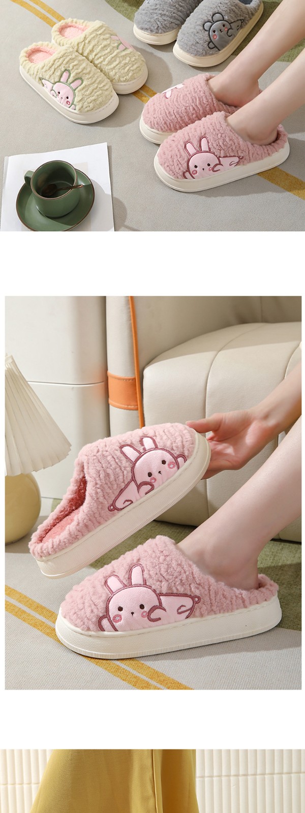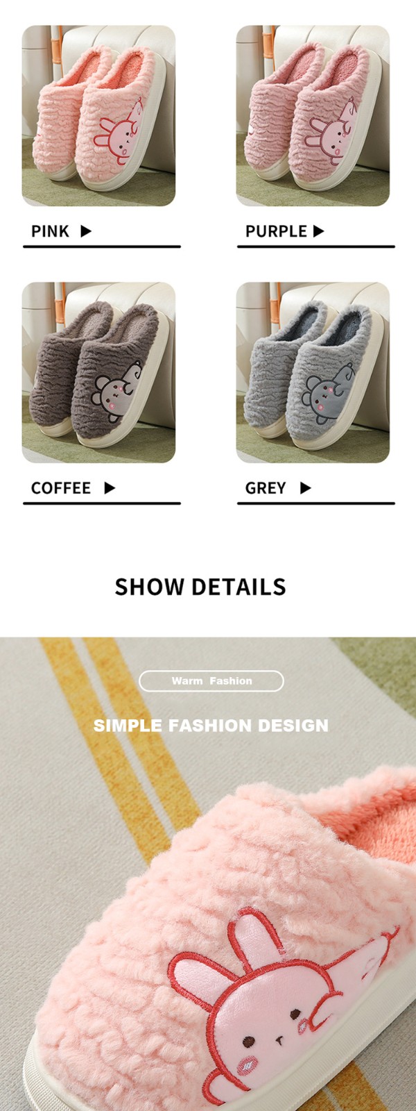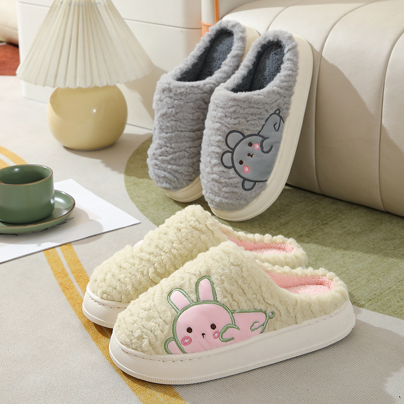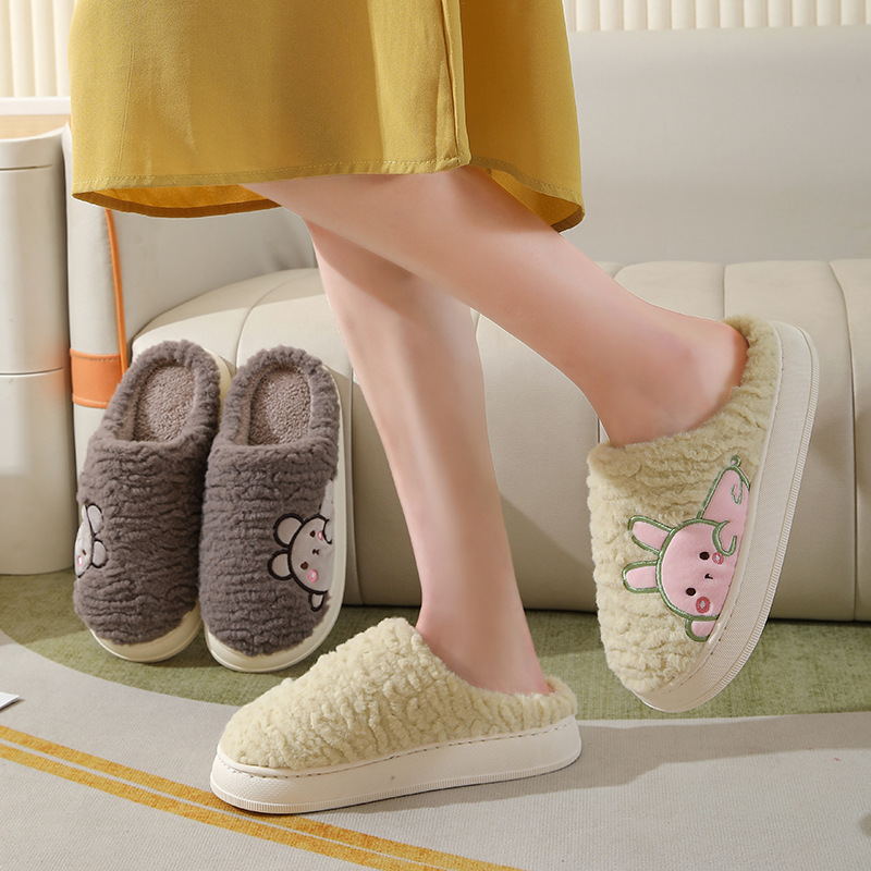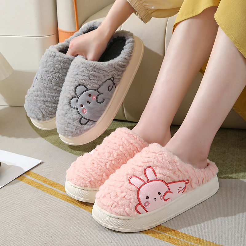 Winter Fashion Warm Cotton Slippers Home Indoor Non-slip Thick Cute Fluffy Slippers For Women Custom Slippers With Logo
