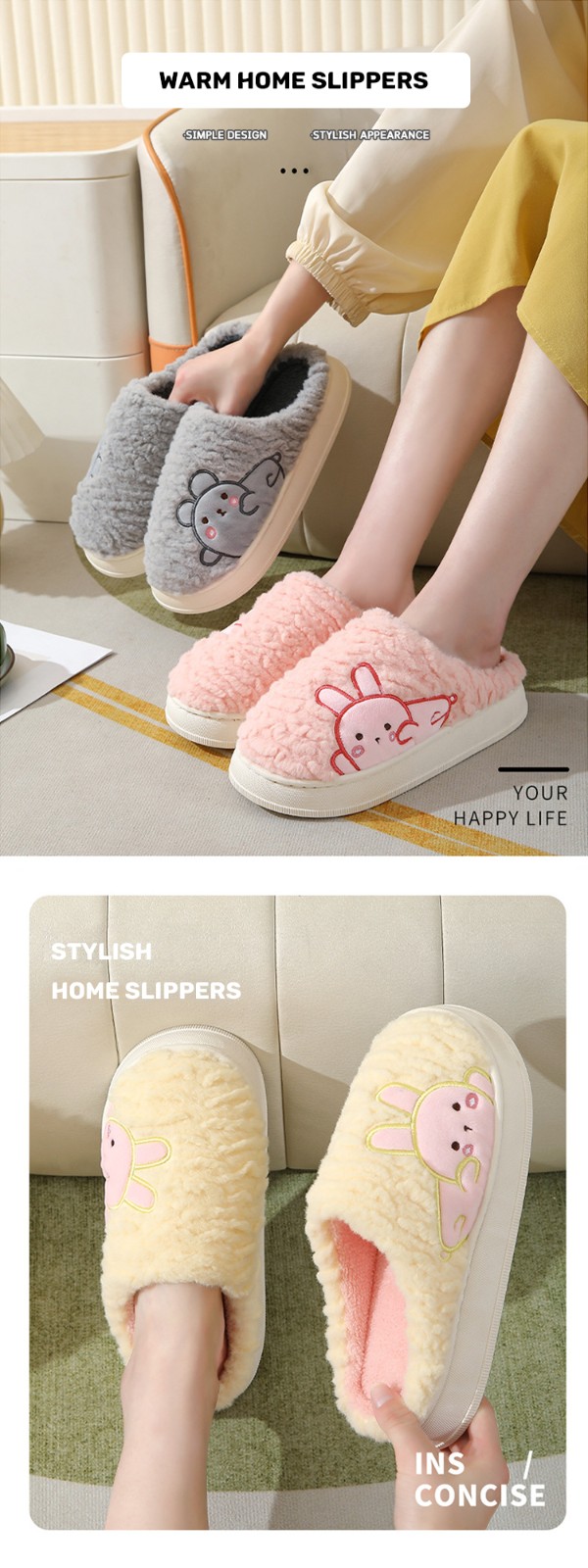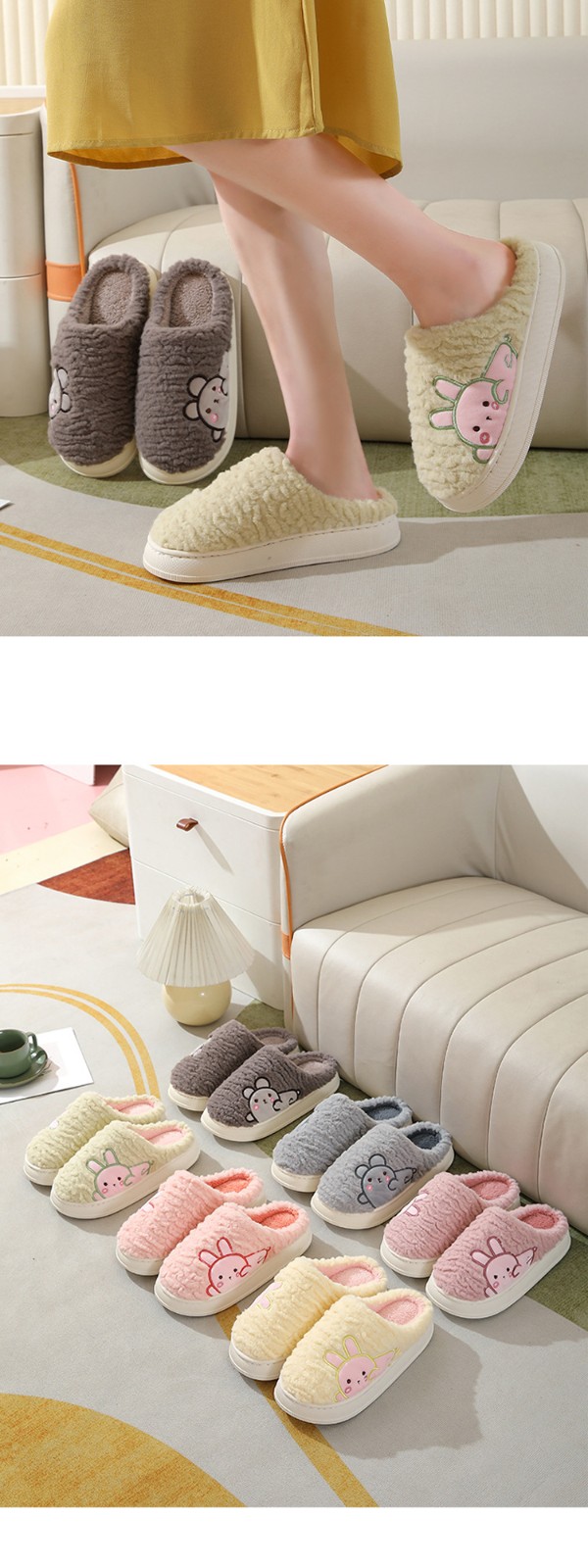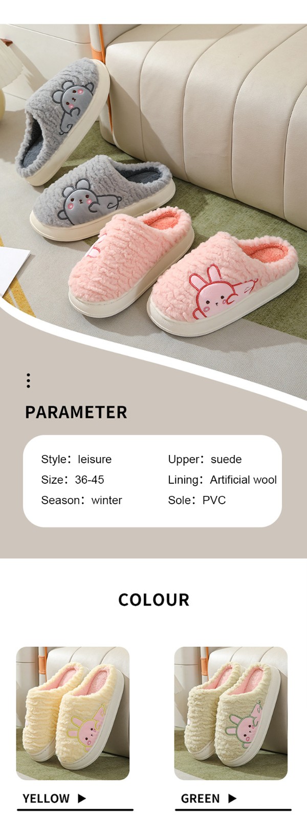 Winter Fashion Warm Cotton Slippers Home Indoor Non-slip Thick Cute Fluffy Slippers For Women Custom Slippers With Logo