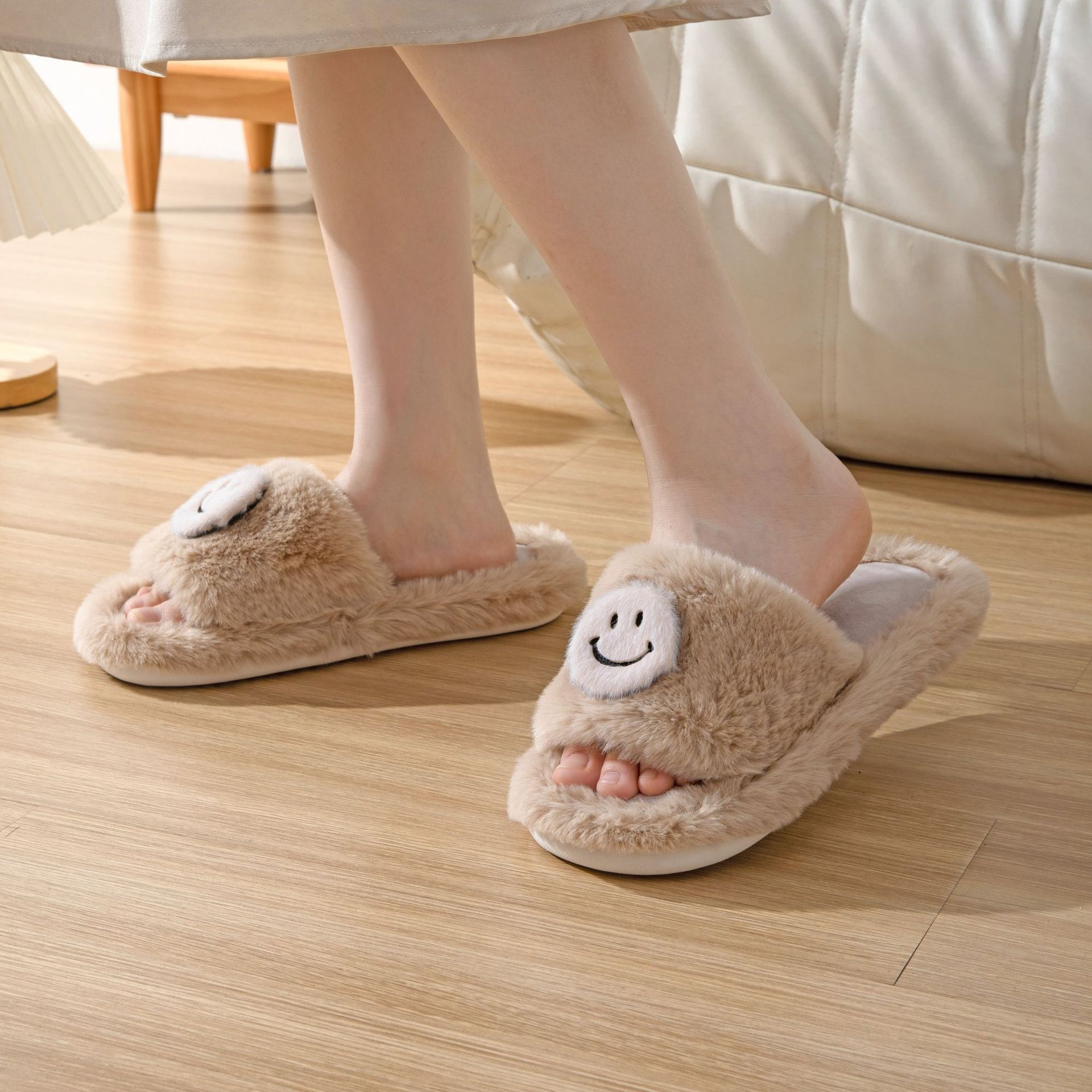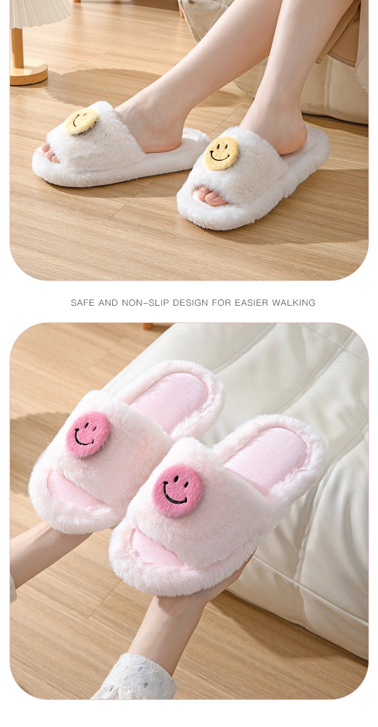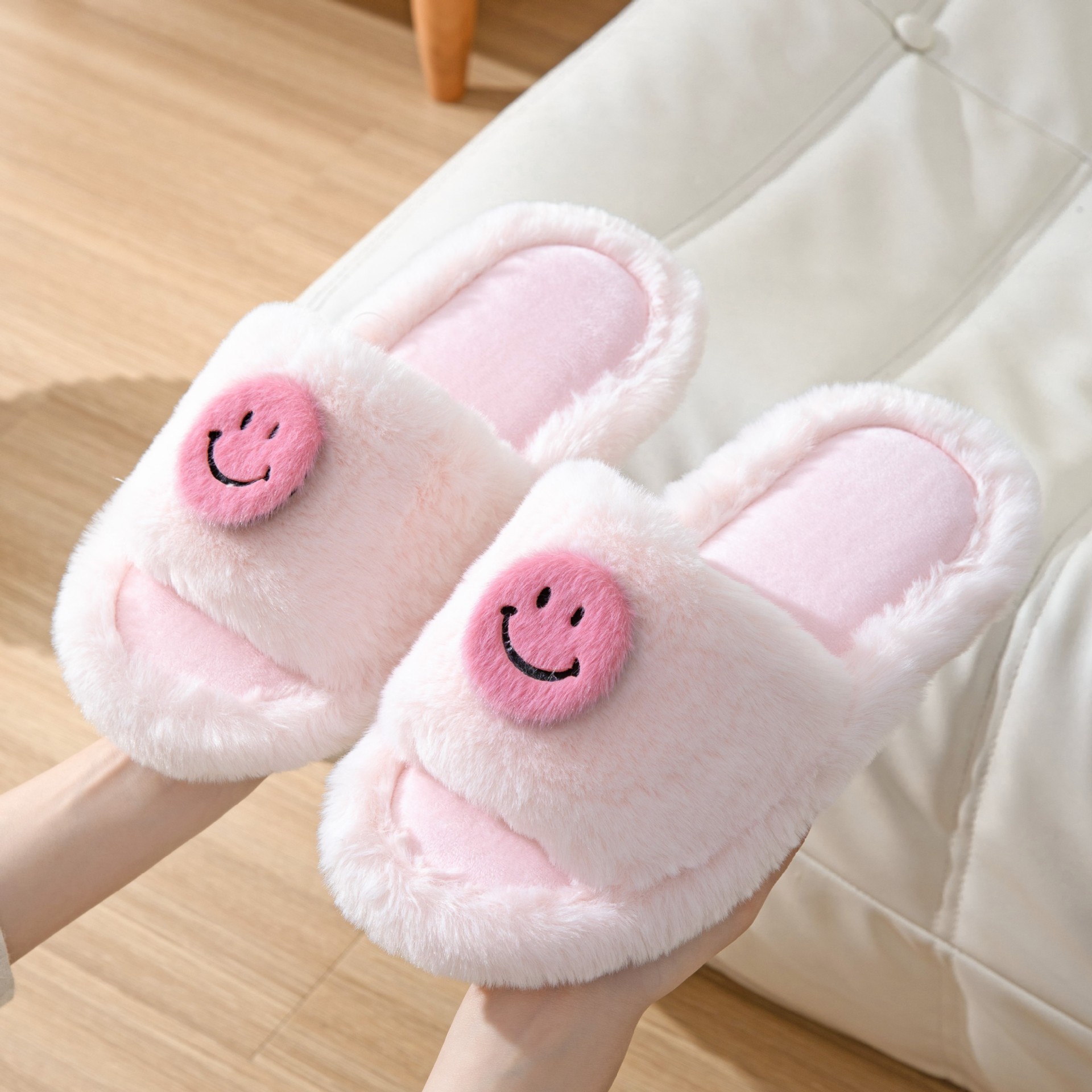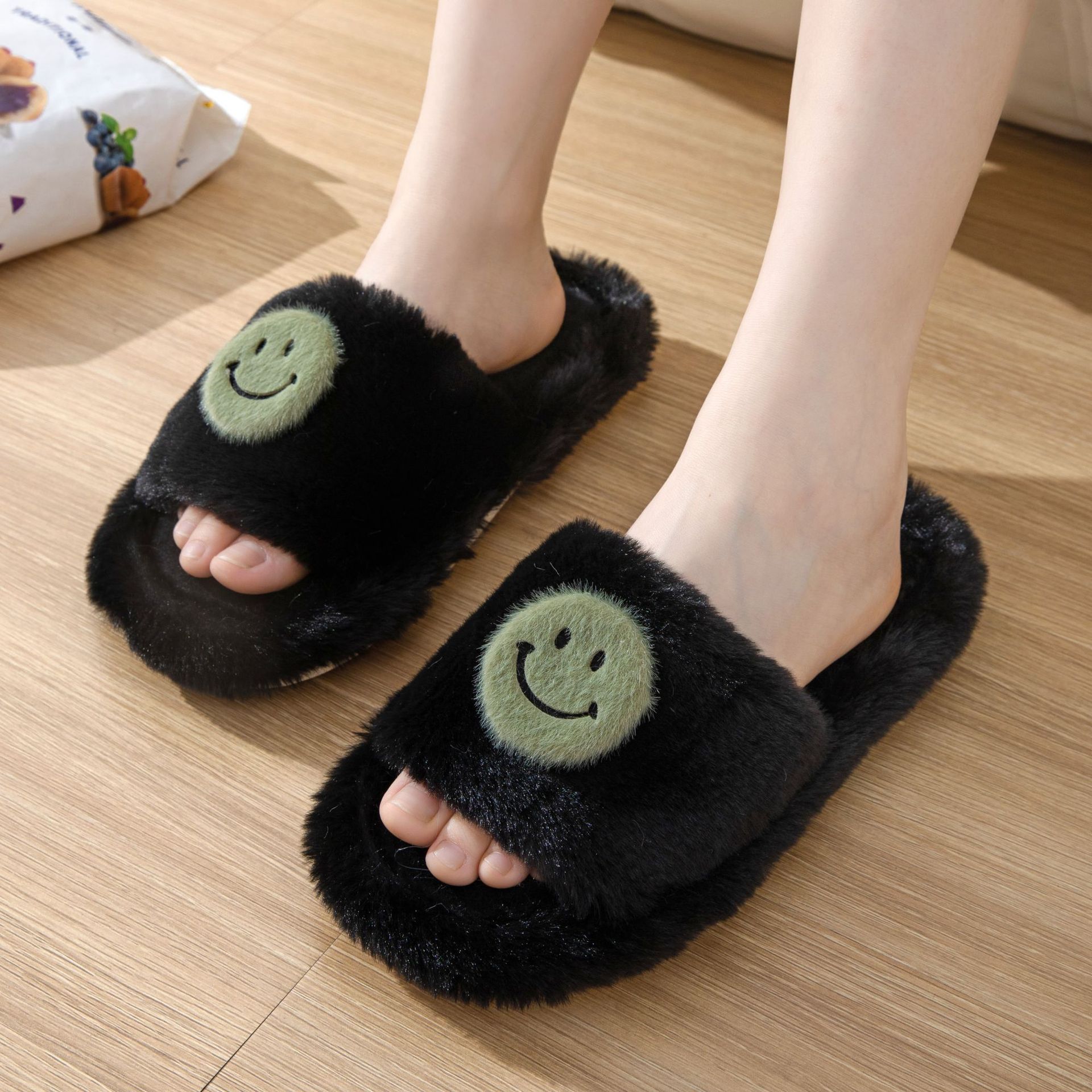 Smiley Open Toe Cotton Slippers Winter Home Indoor Plush Slippers Women's Warm Fuzzy Shoes Smile Face Slippers