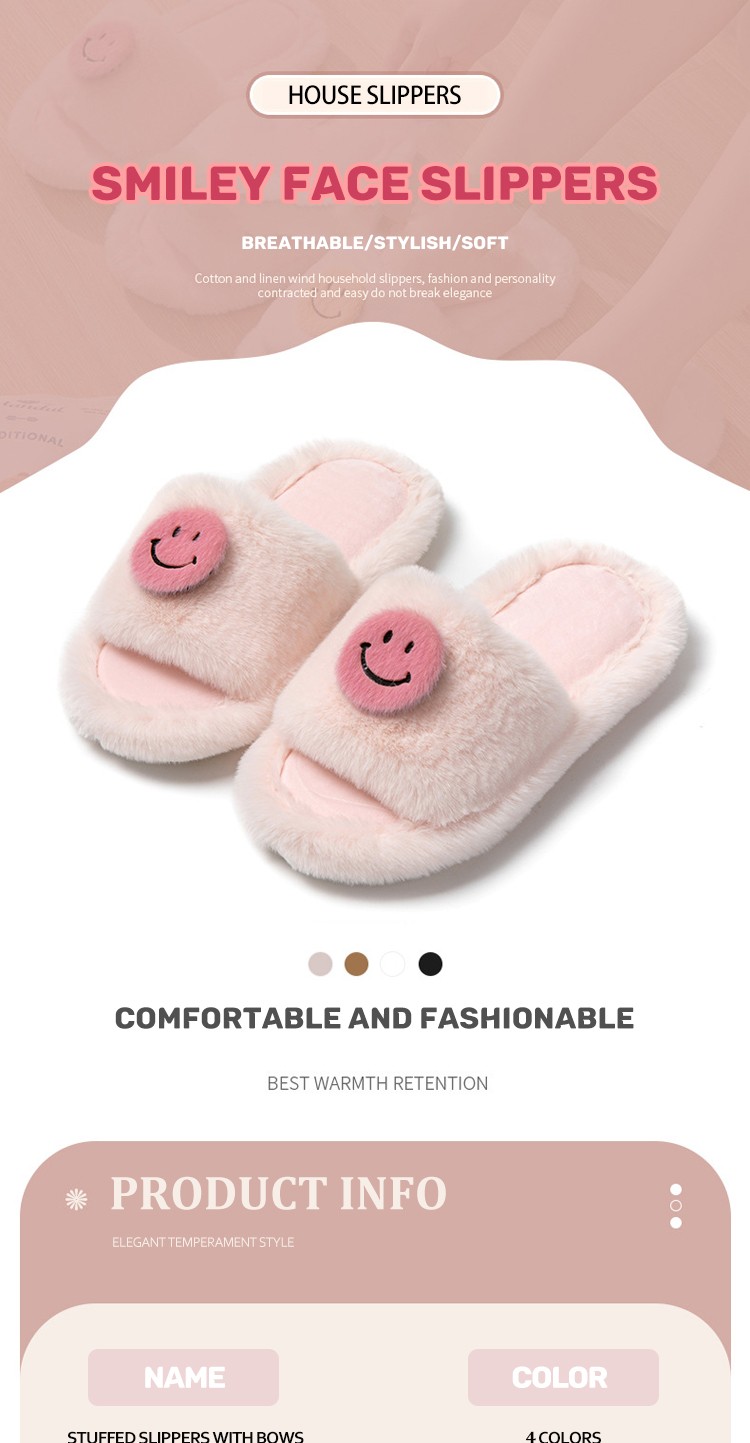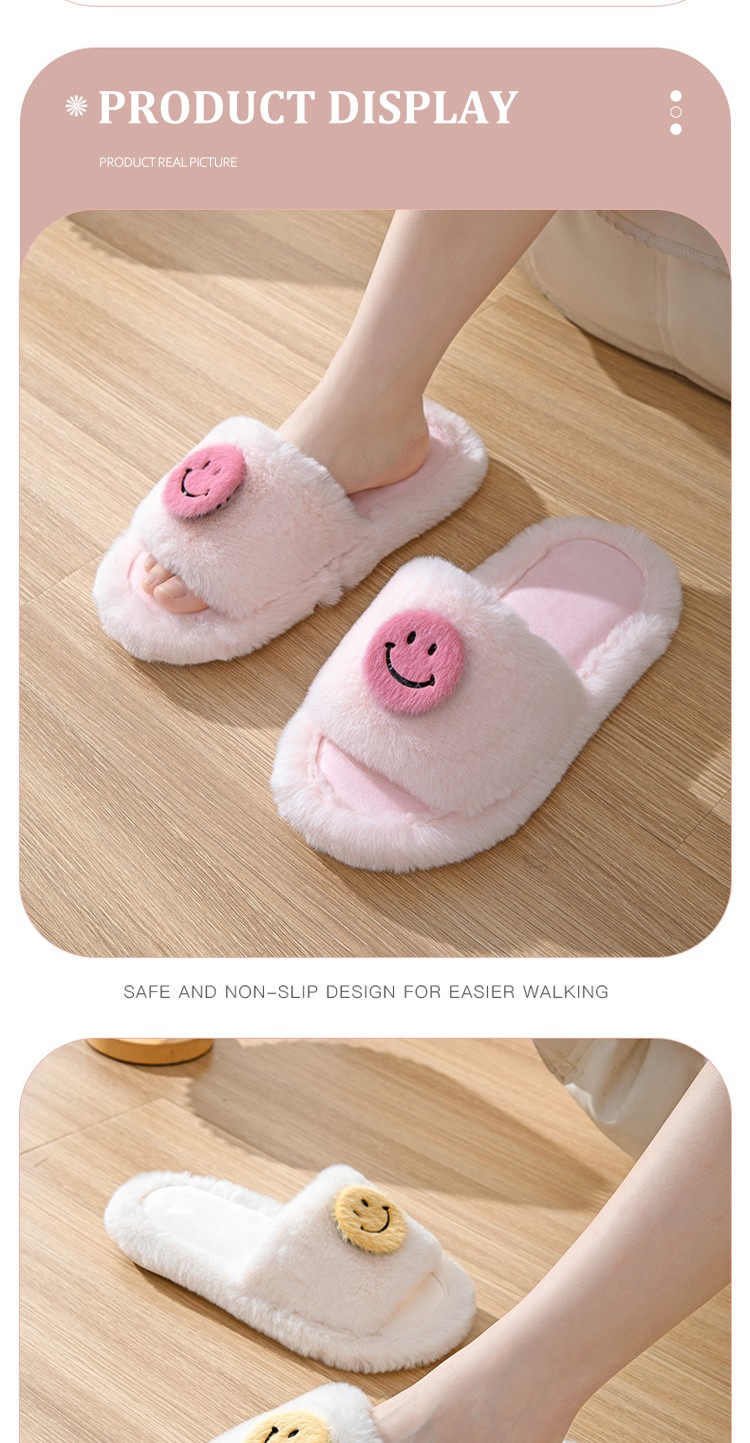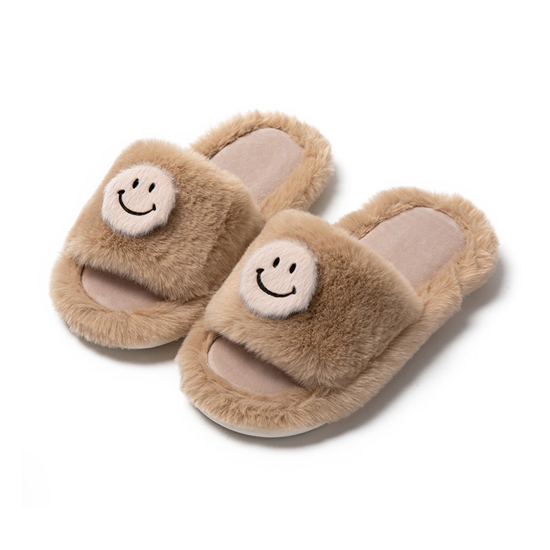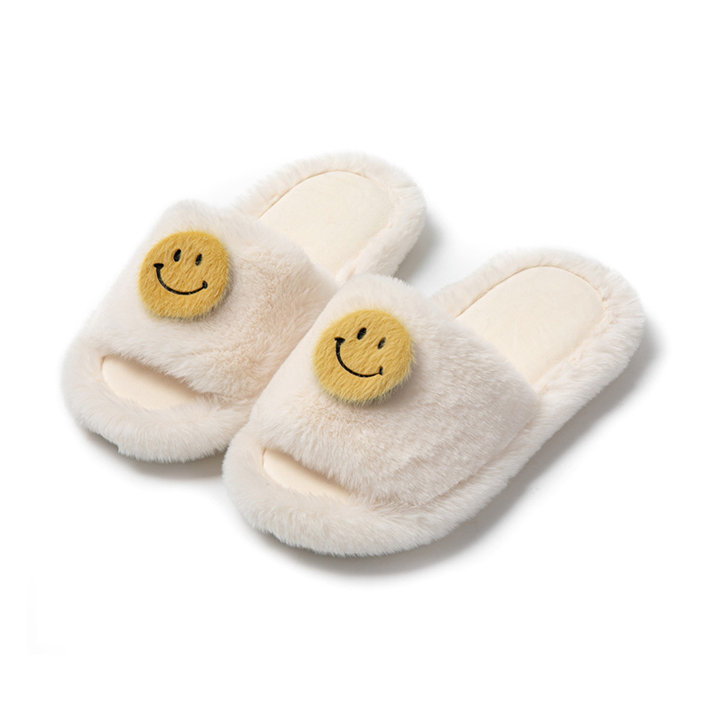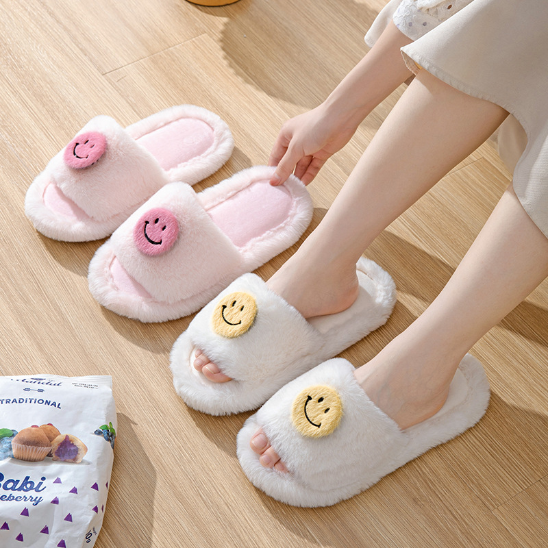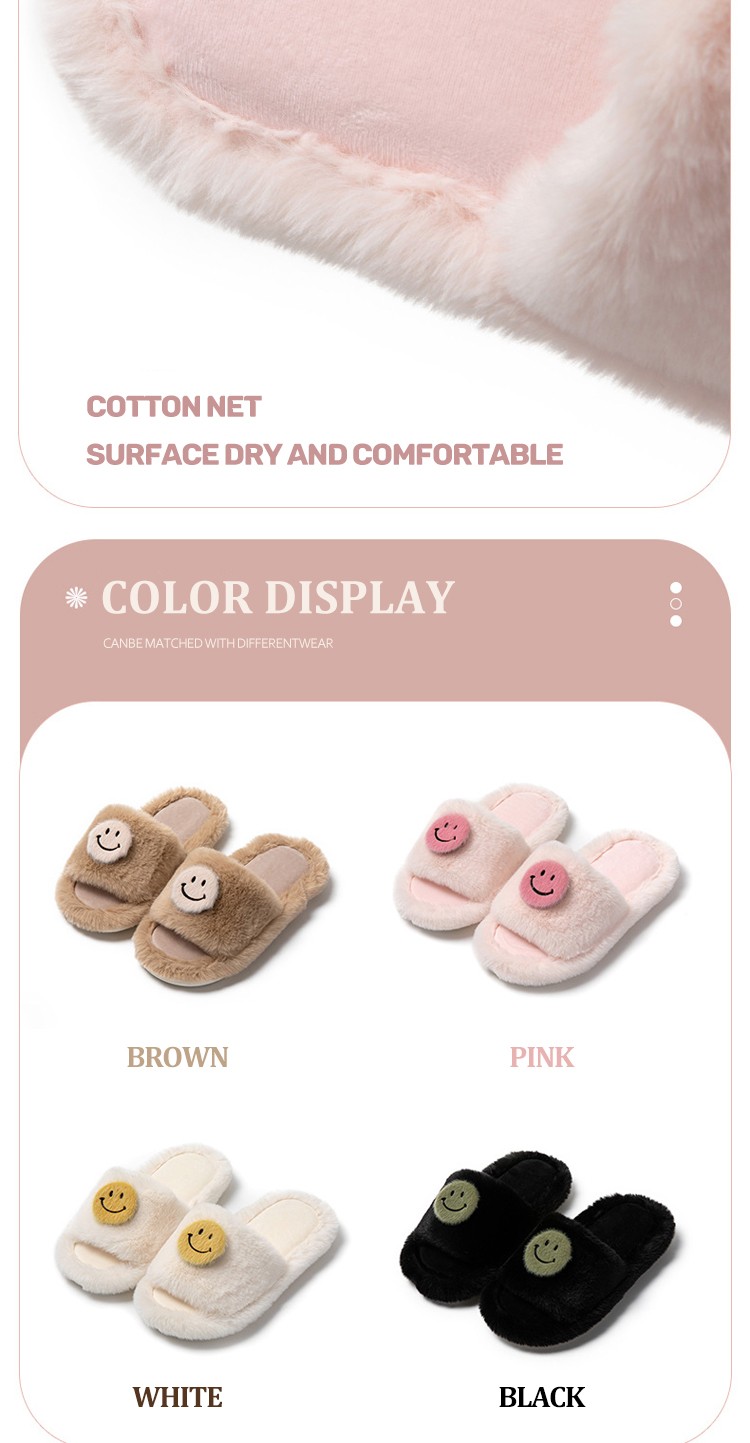 Smiley Open Toe Cotton Slippers Winter Home Indoor Plush Slippers Women's Warm Fuzzy Shoes Smile Face Slippers