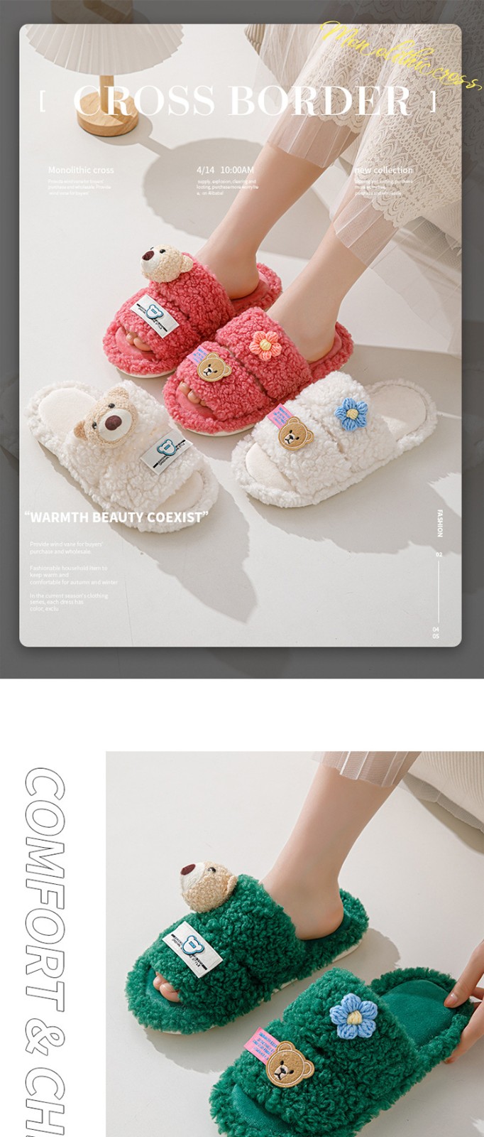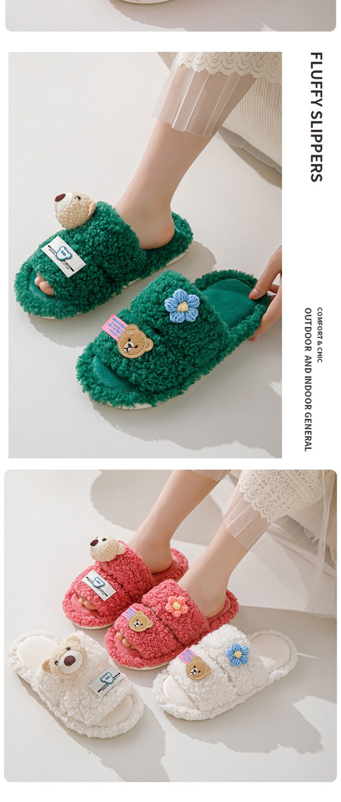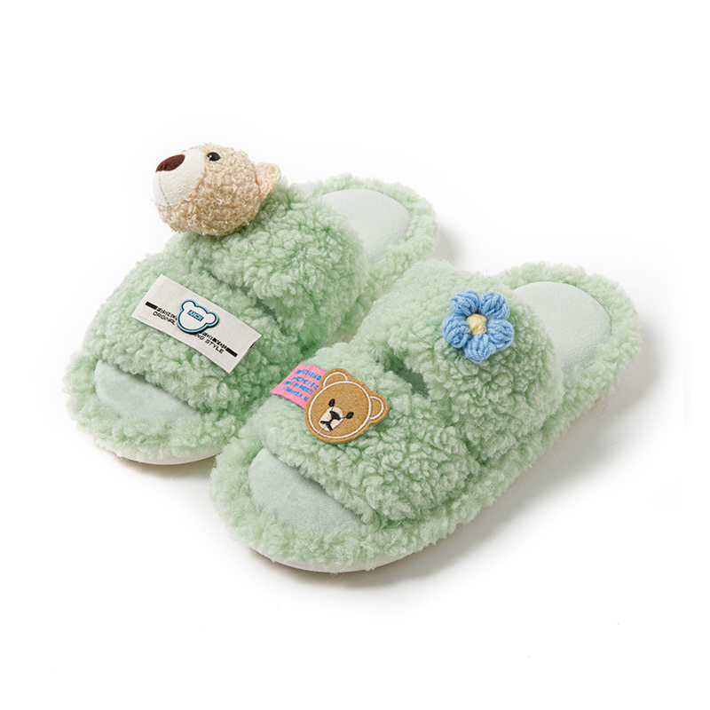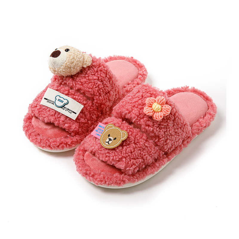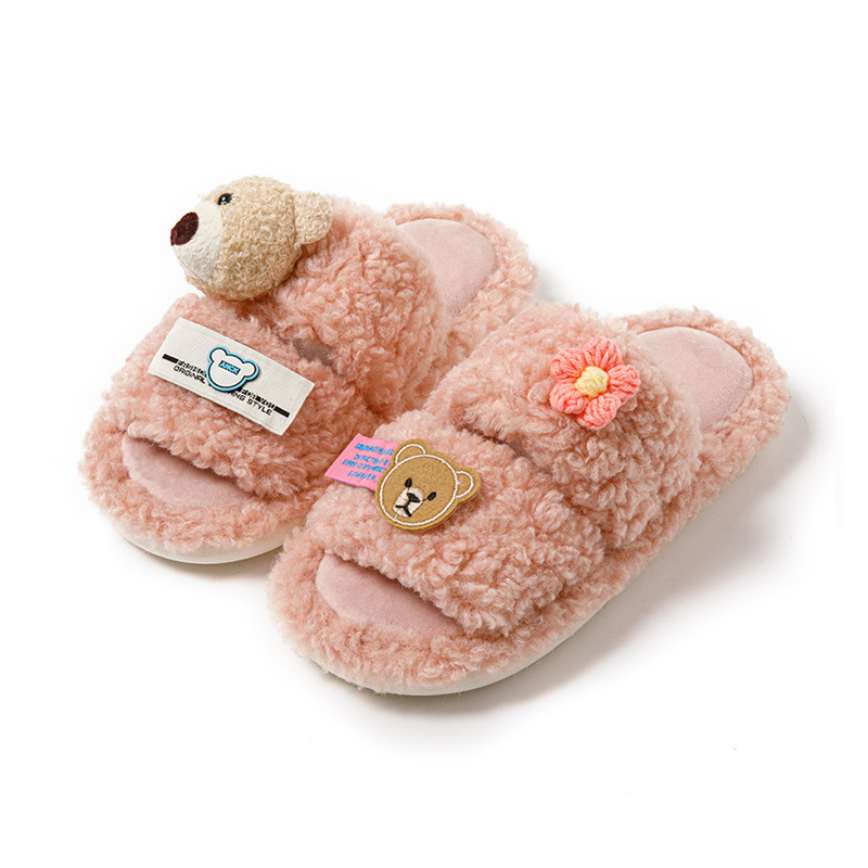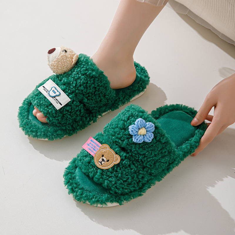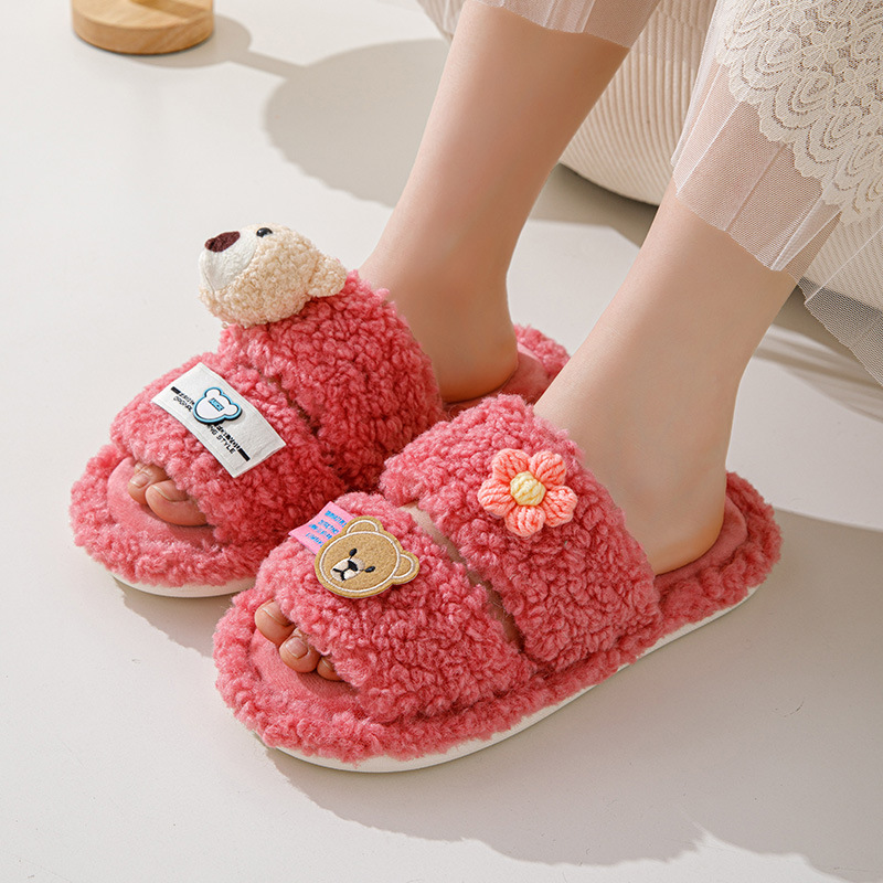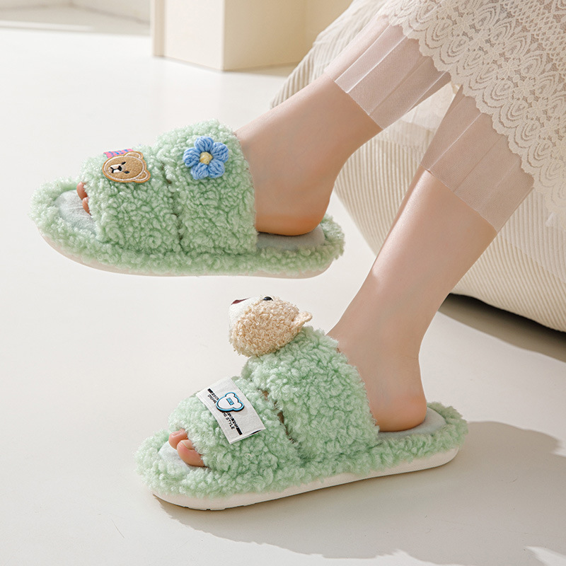 Cartoon Leisure Open Toe Cotton Slippers 2023 Winter Indoor Fluffy Non-slip Warm Shoes For Women Home Slippers Woman