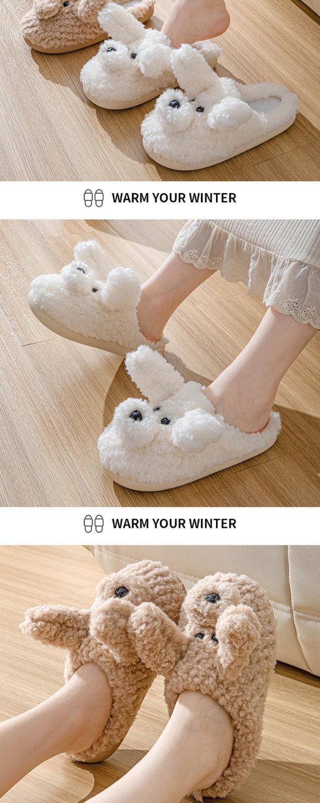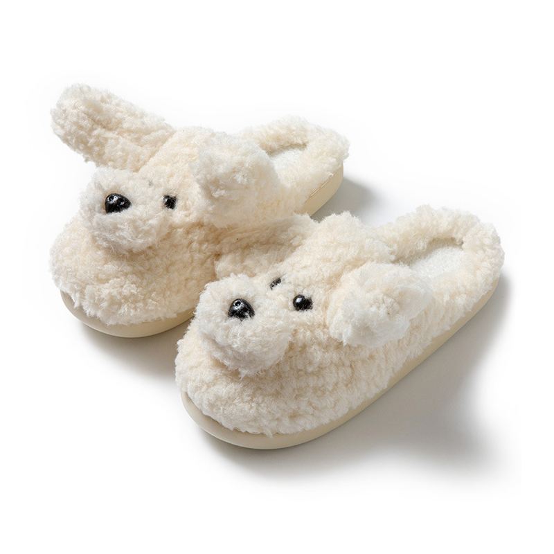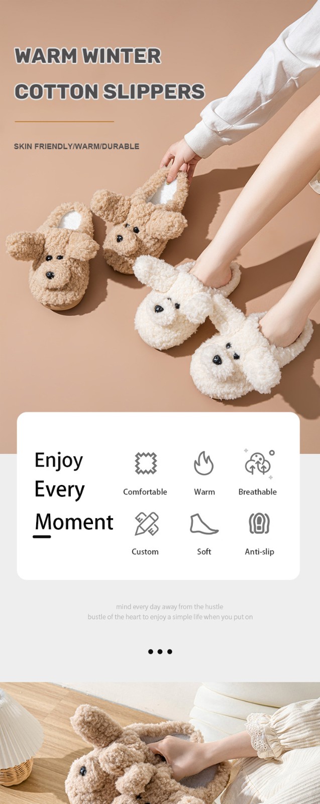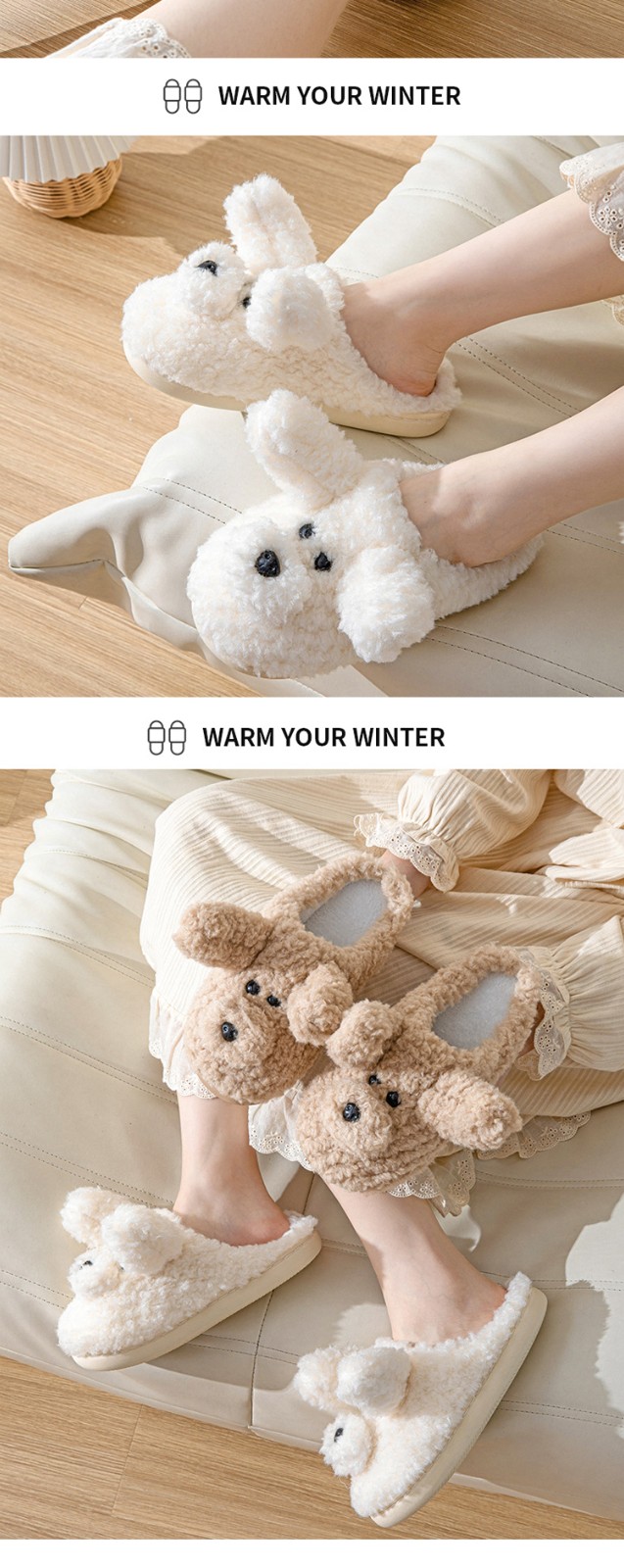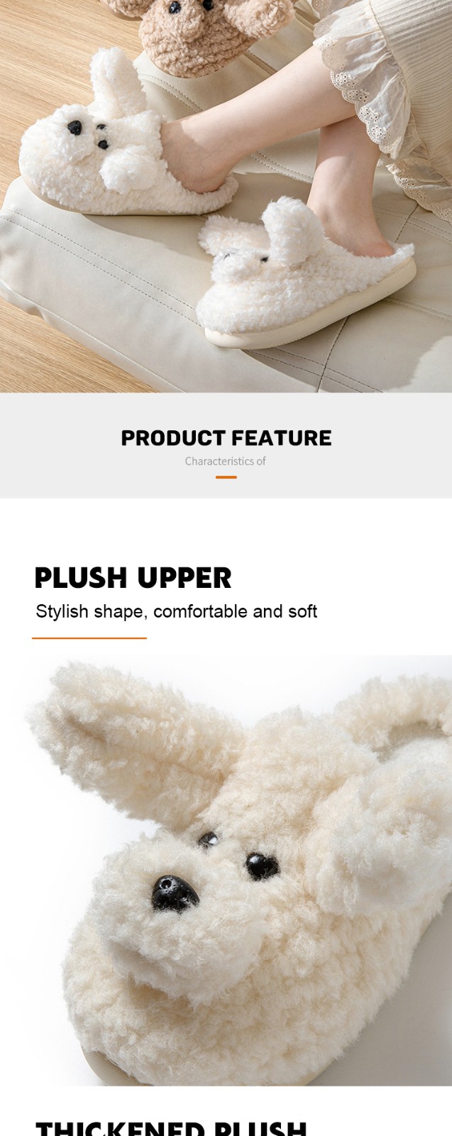 2023 Fashion Winter Curly Puppy Plush Slippers Indoor Women's Closed Toe Cartoon Cotton Slippers Teddy Bear Slippers