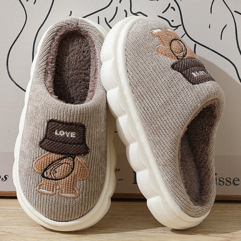 2023 Winter Children's Warm Linen Slippers Cute Home Shoes For Children Non-slip Breathable Thick Sole Slippers Kids Shoes Boys