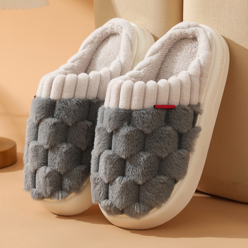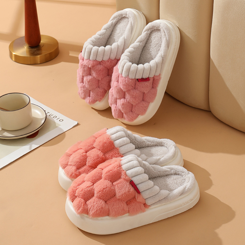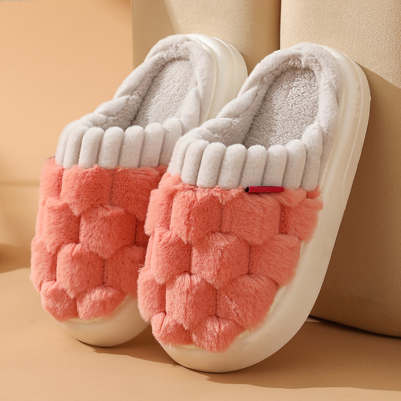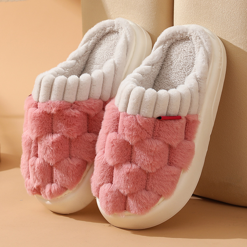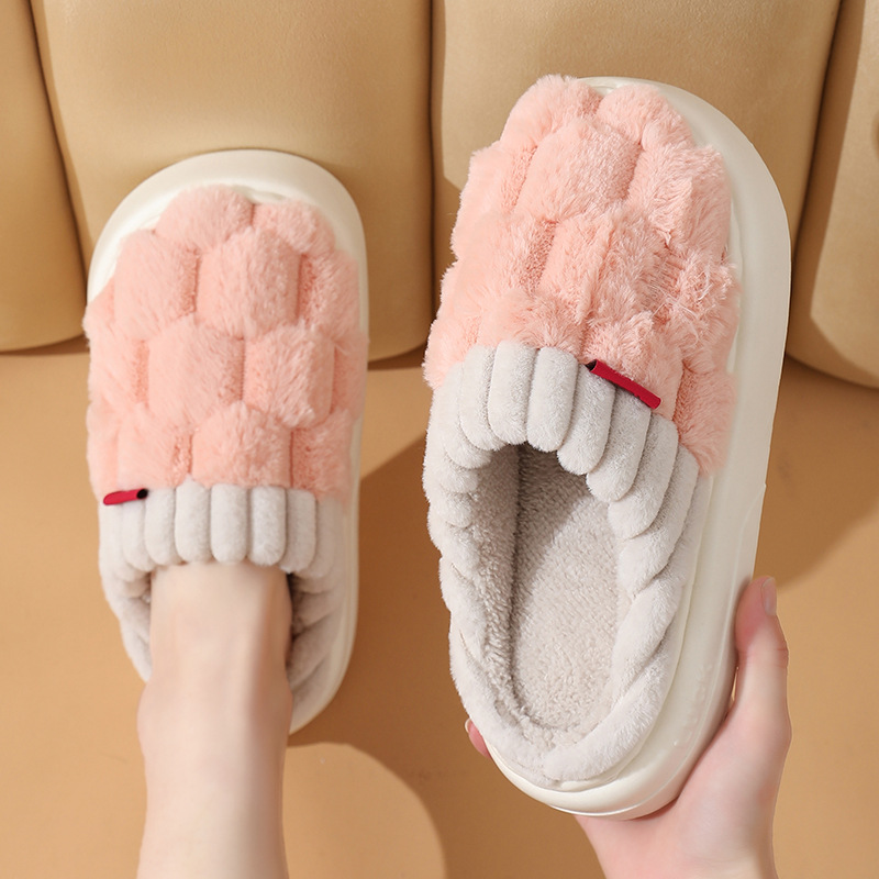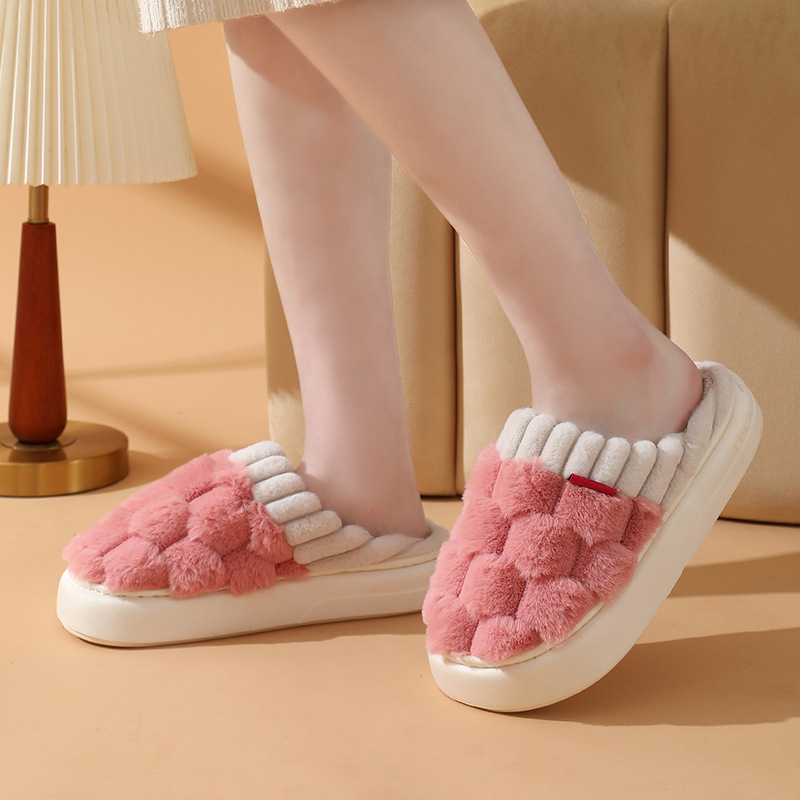 2023 Winter Indoor Slippers Custom Logo Fluffy Warm Home Shoes Woman Slip On Soft Flats Casual Home Shoes