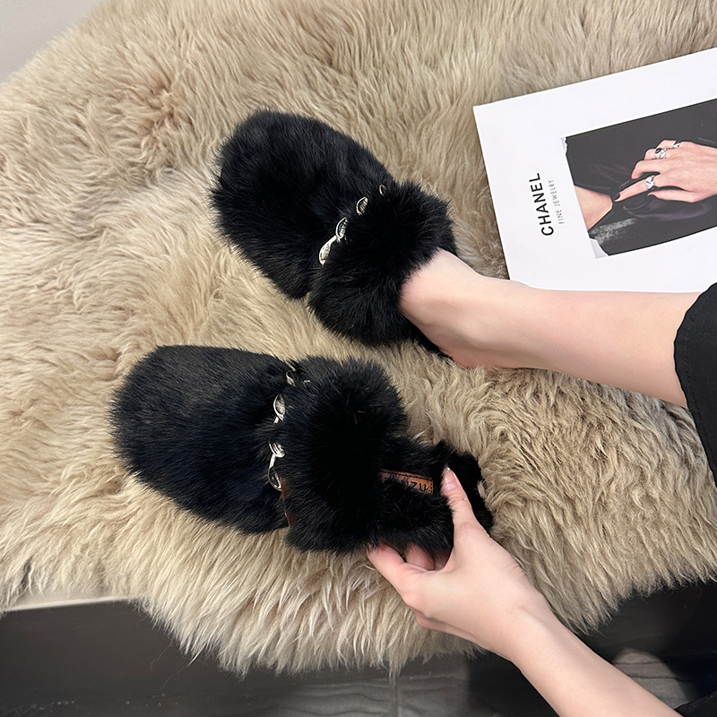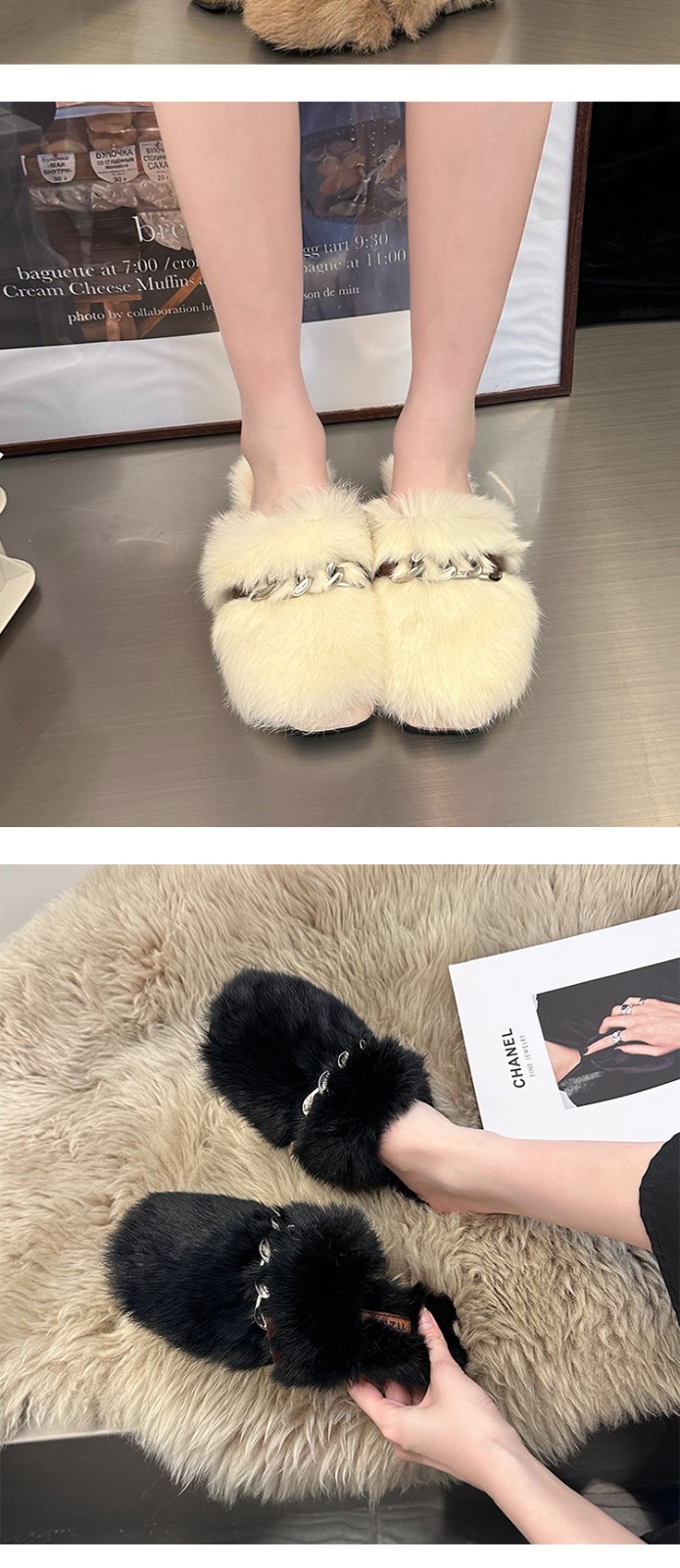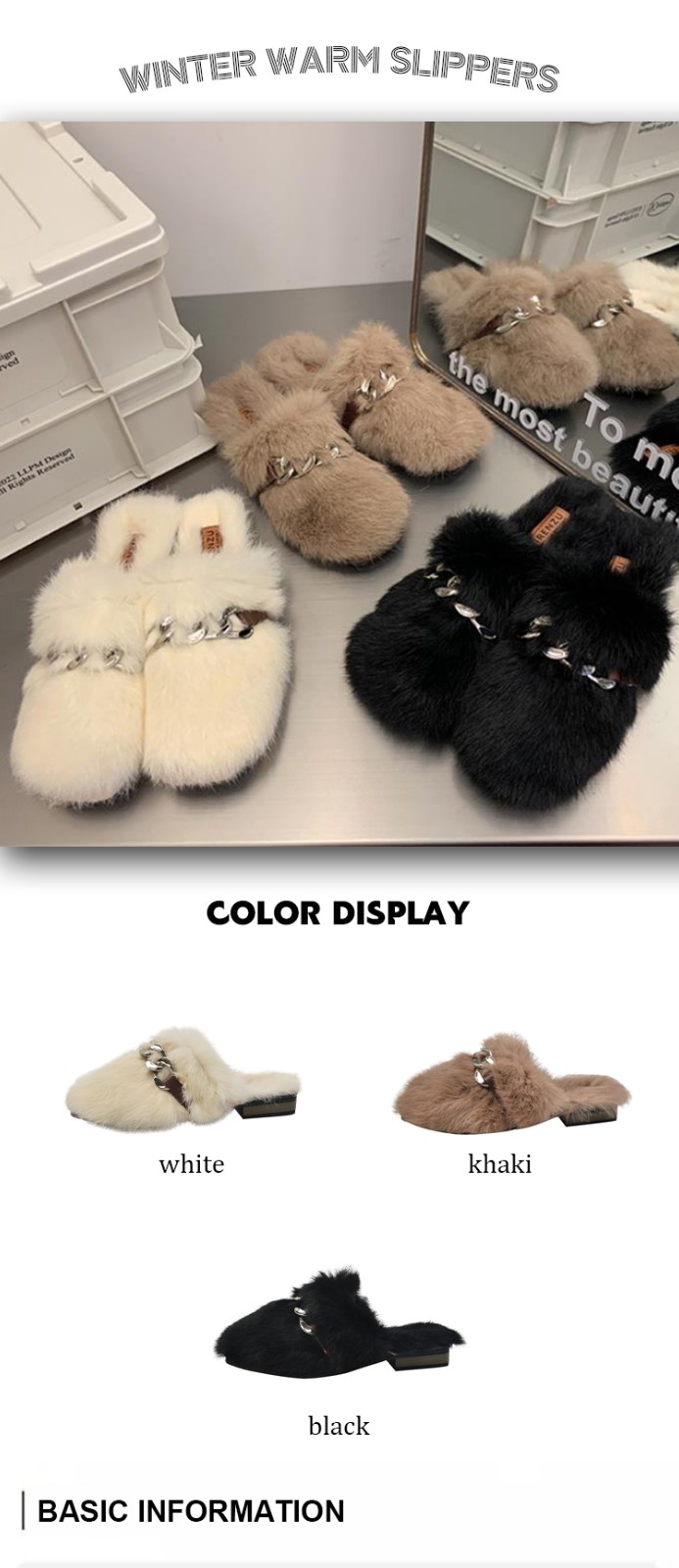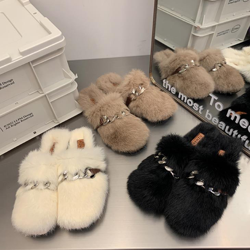 2023 Fashion Flat Warm Slippers Winter Round Toe Chain Shoes Non-slip Soft Plush Warm Winter Slippers For Women
