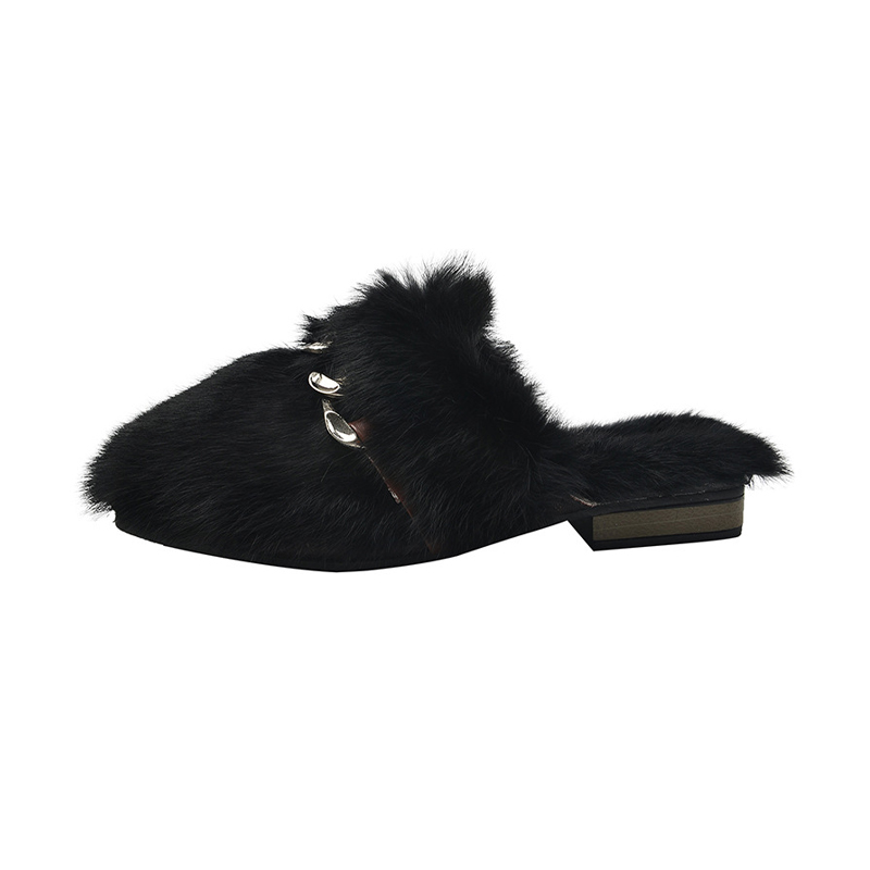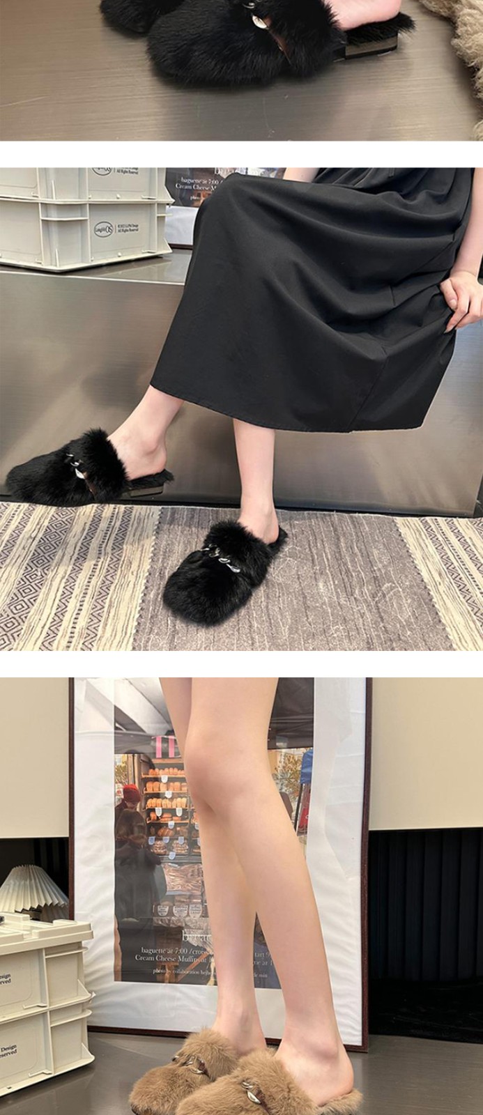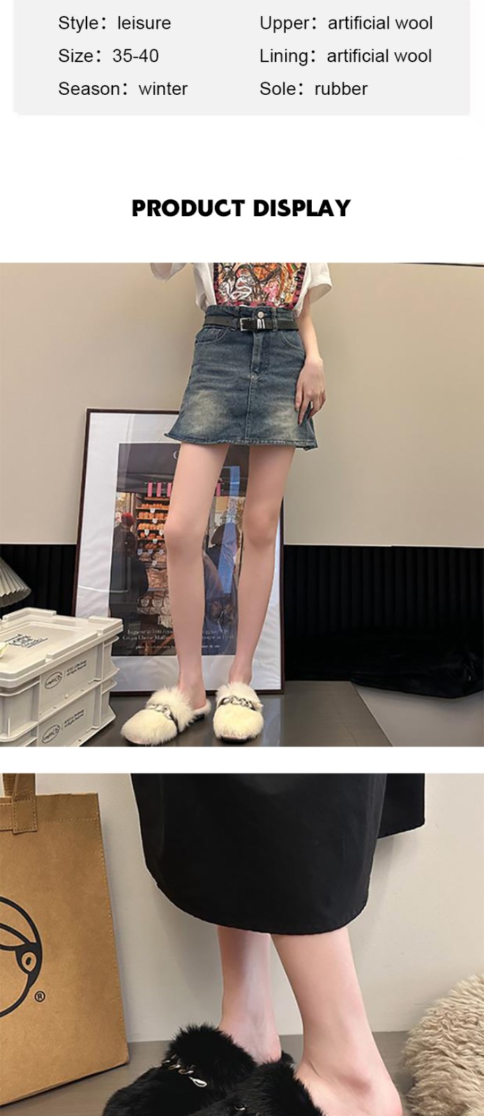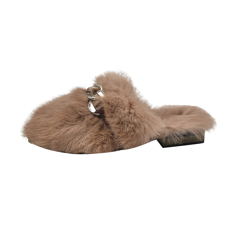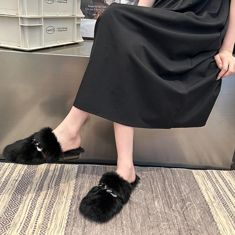 2023 Fashion Flat Warm Slippers Winter Round Toe Chain Shoes Non-slip Soft Plush Warm Winter Slippers For Women
