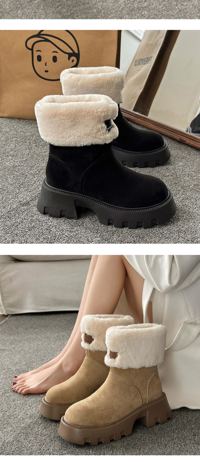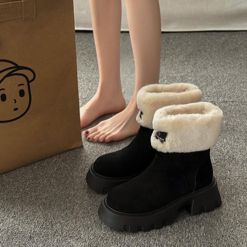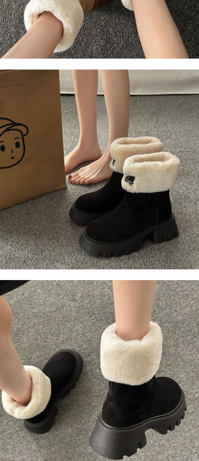 Women's Martin Boots 2023 Winter New Round Toe Fashion Casual Warm Thick Sole Thick Heel Short Snow Boots Winter Boots Girls