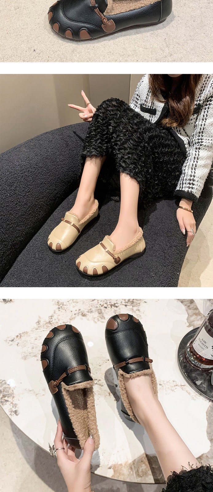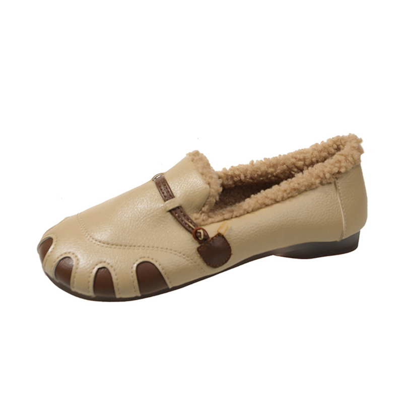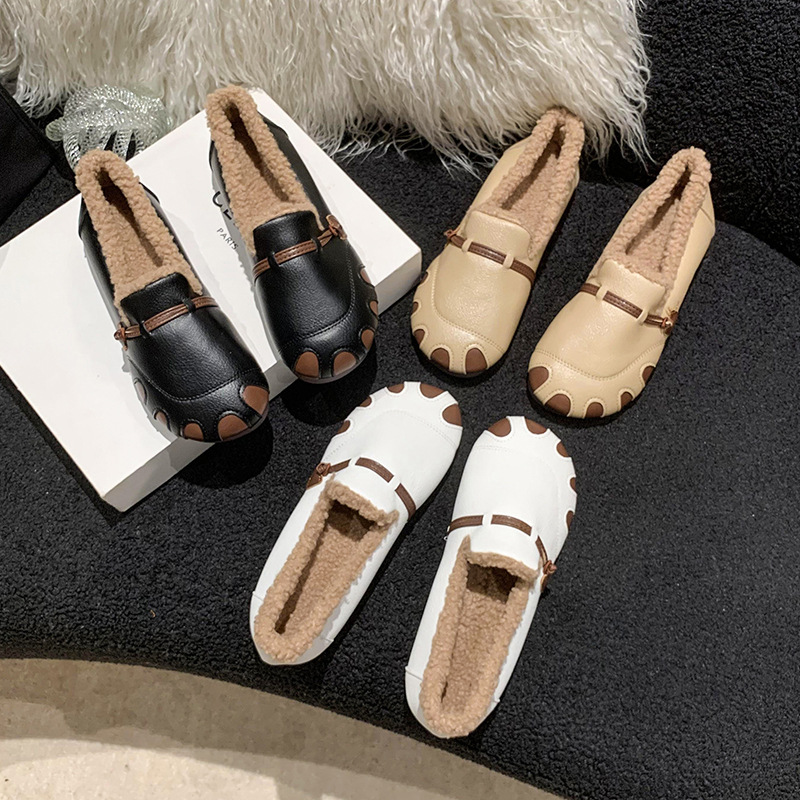 2023 Winter Flat Heels Fluffy Shoes Soft Soled Anti-slip Slip-On Warm Shoes For Ladies Custom Logo Shoes