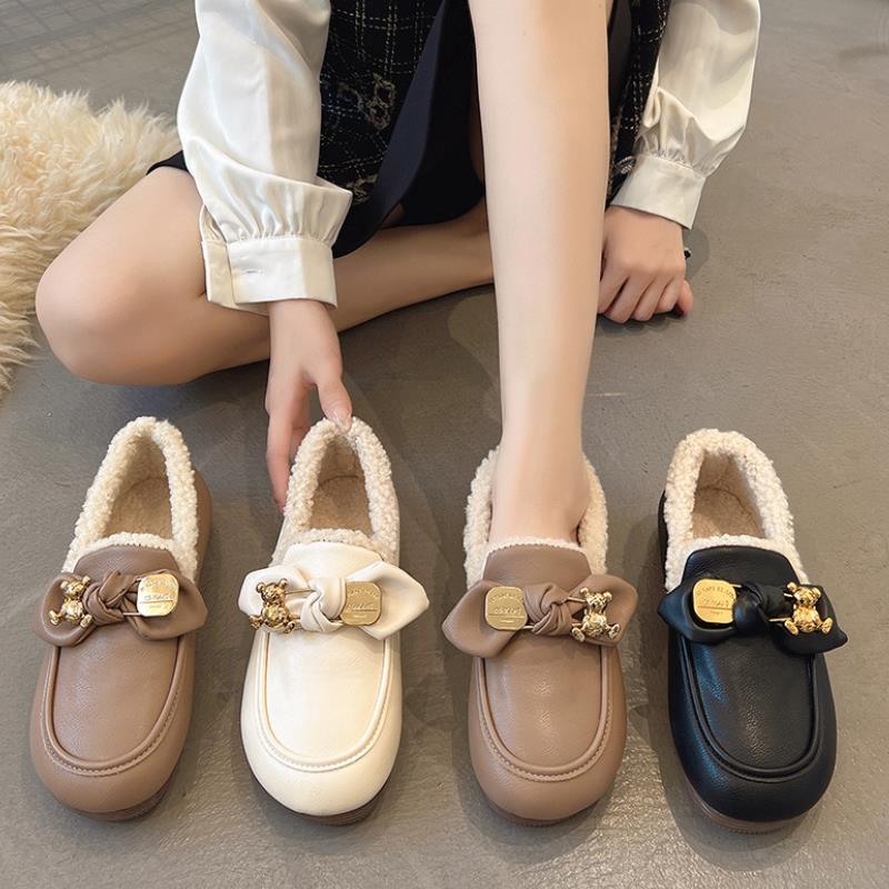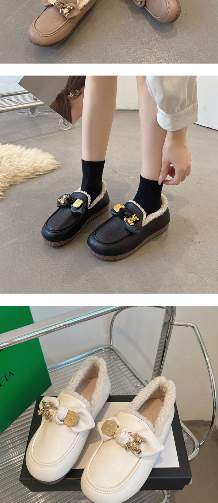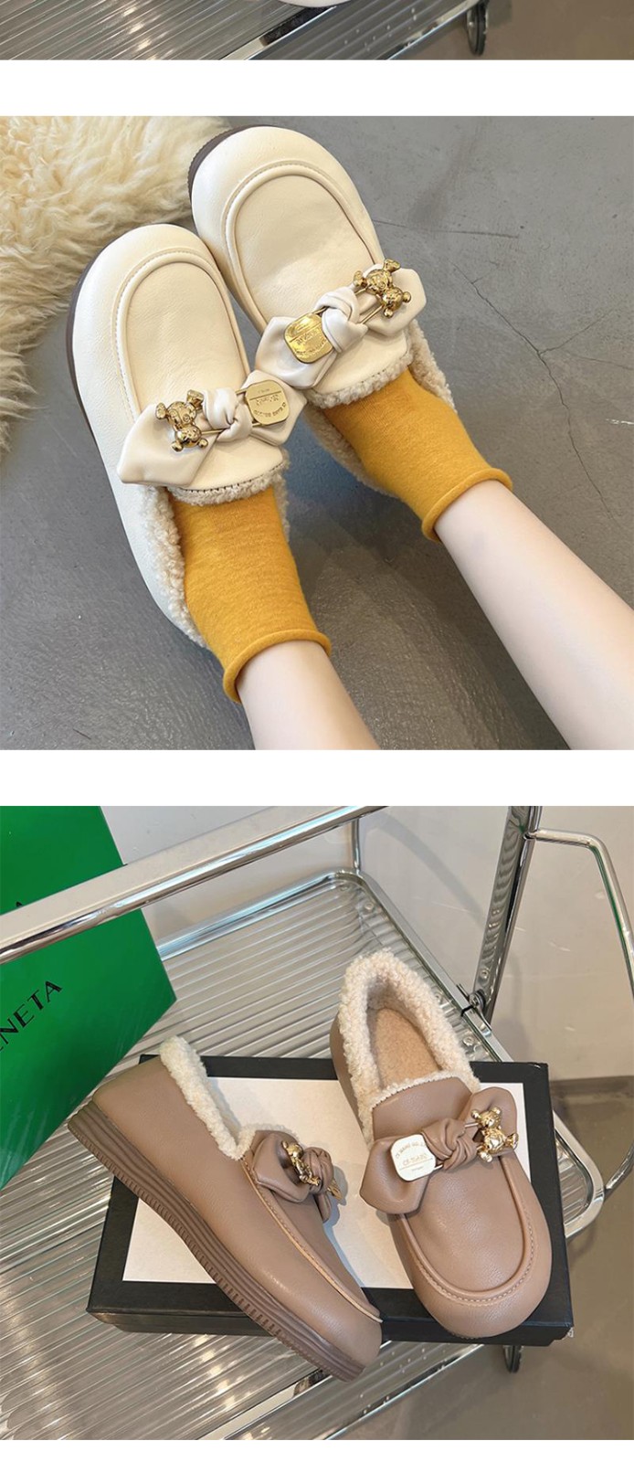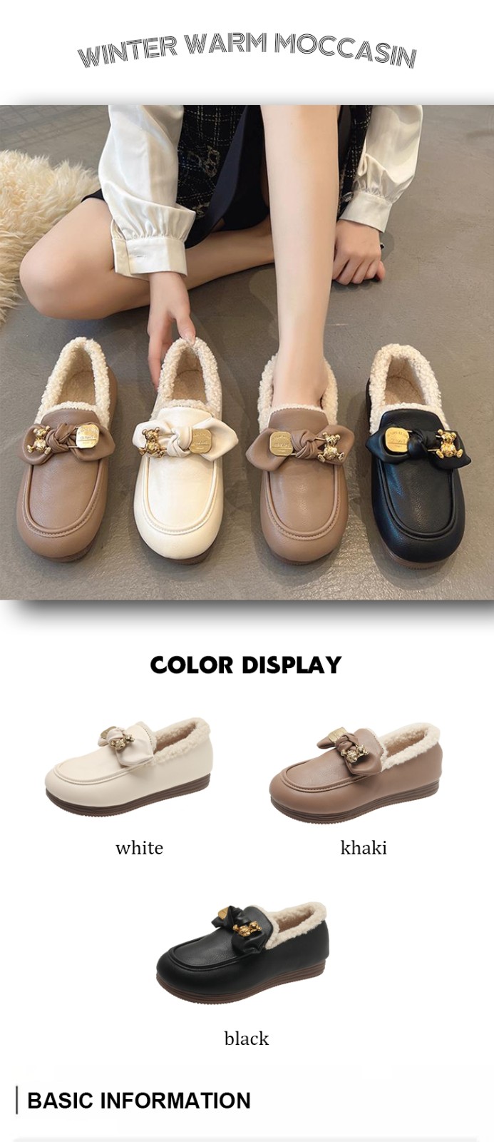 2023 Winter Fashion Warm Flat Shoes Custom Logo Plus Size Soft Sole Bow Metal Buckle Casual Winter Shoes For Women