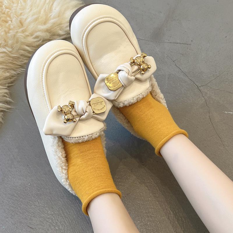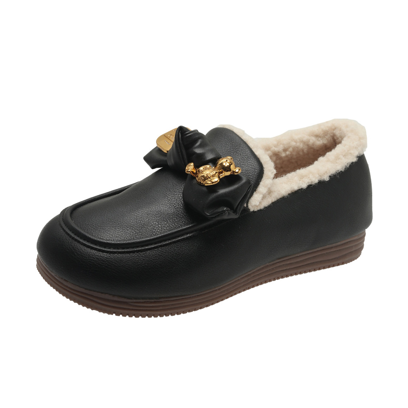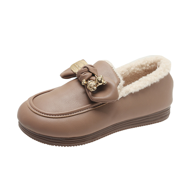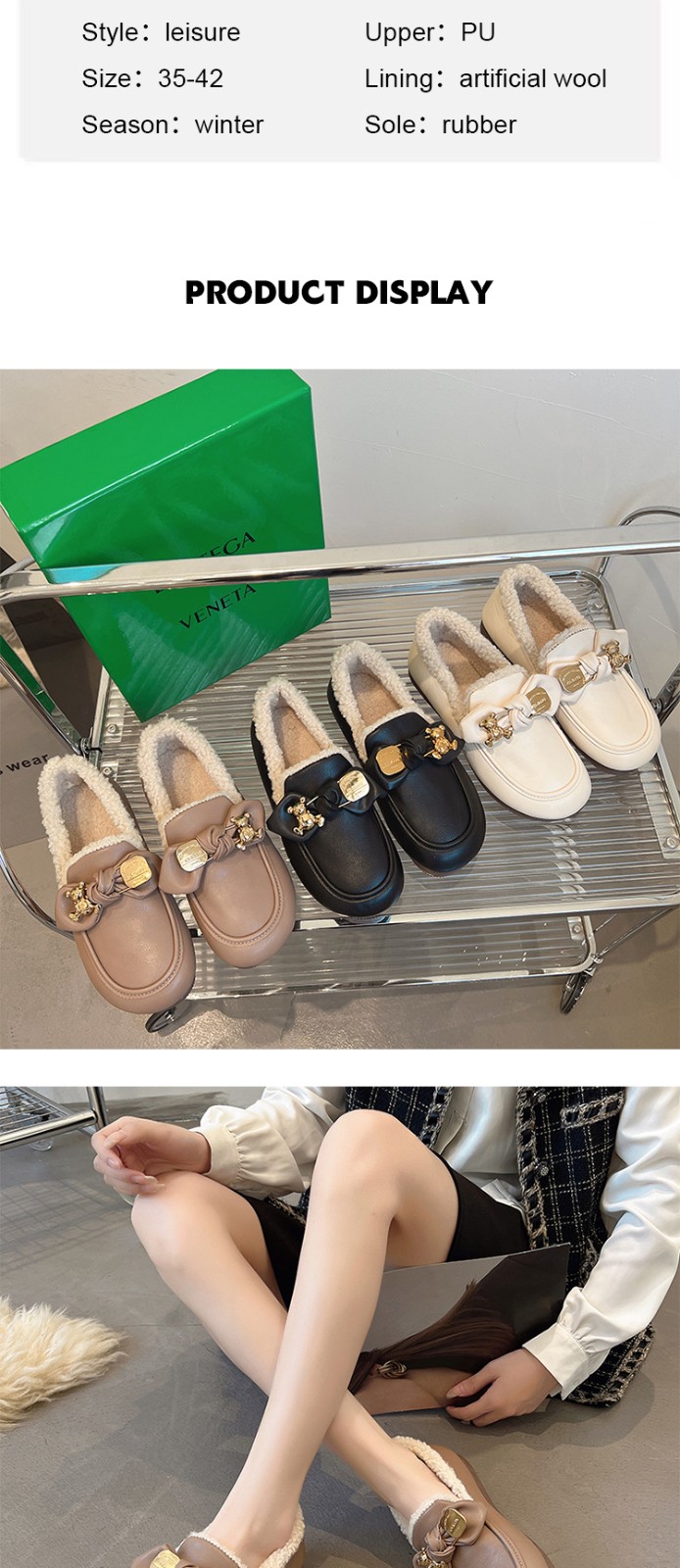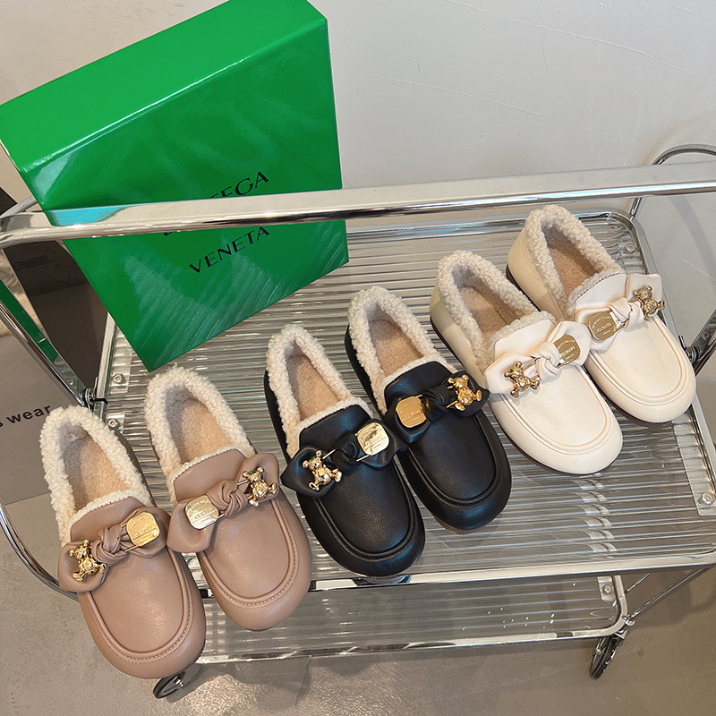 2023 Winter Fashion Warm Flat Shoes Custom Logo Plus Size Soft Sole Bow Metal Buckle Casual Winter Shoes For Women