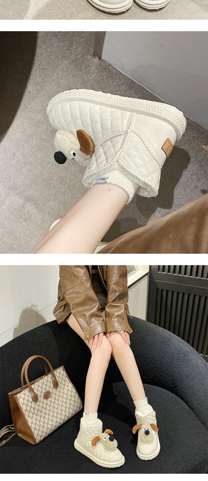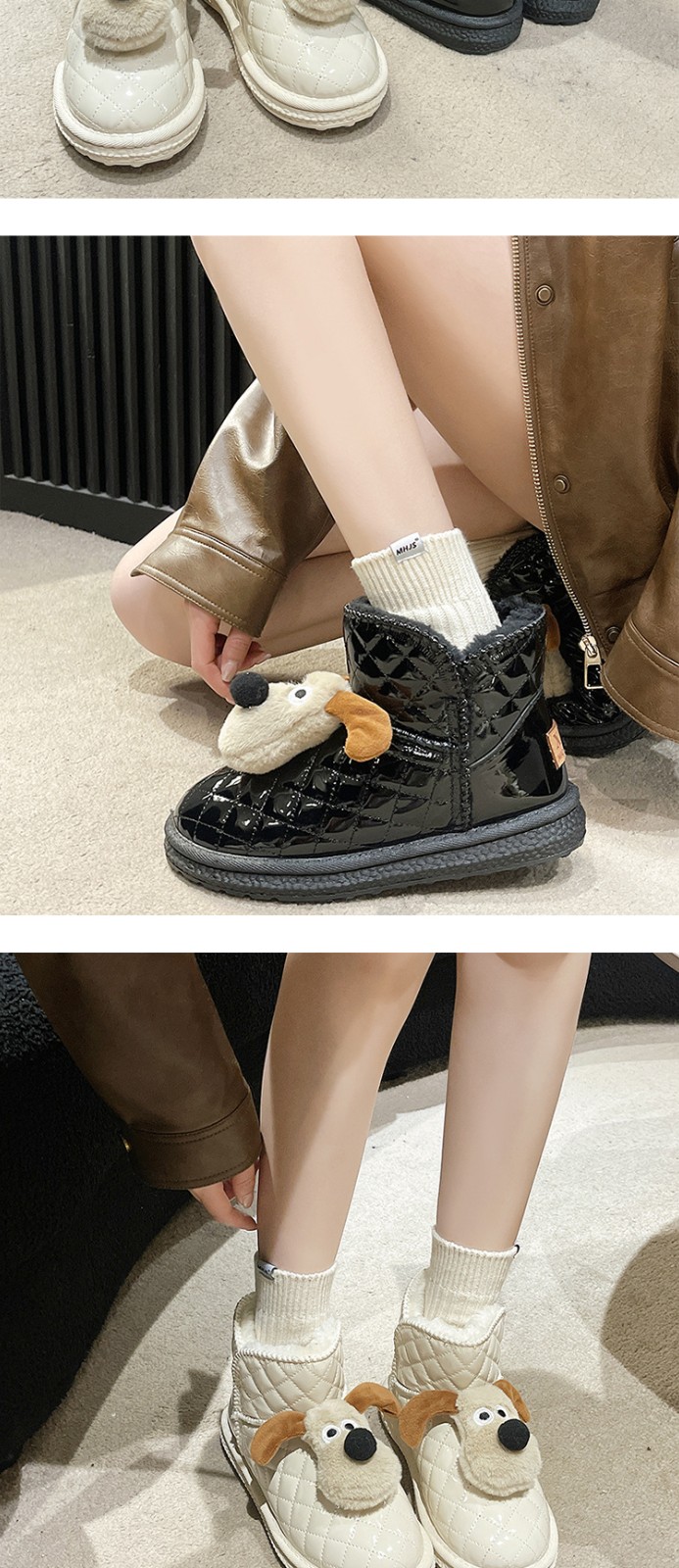 Women's Winter Snow Boots 2023 Custom Casual Hard-Wearing Cartoon Puppy Height Increasing Boots Women Chunky Boots