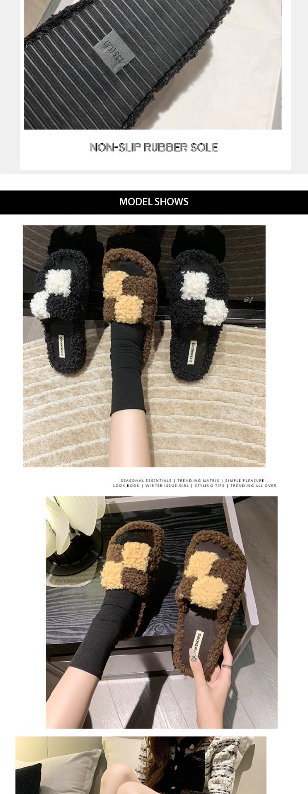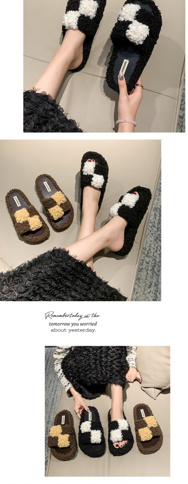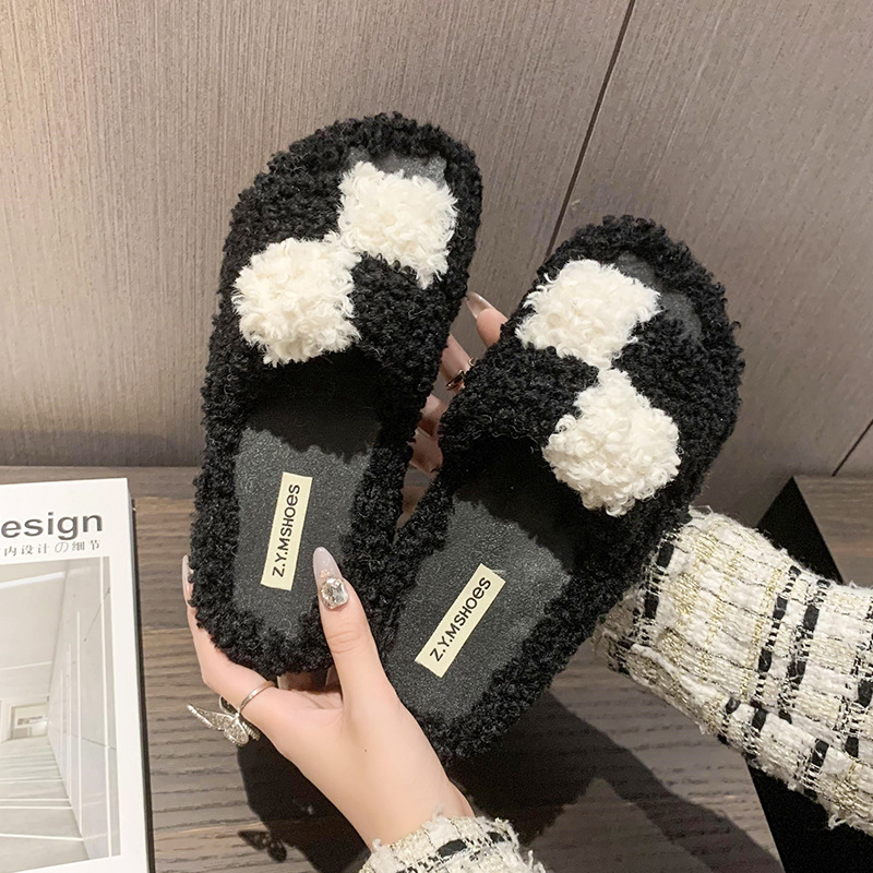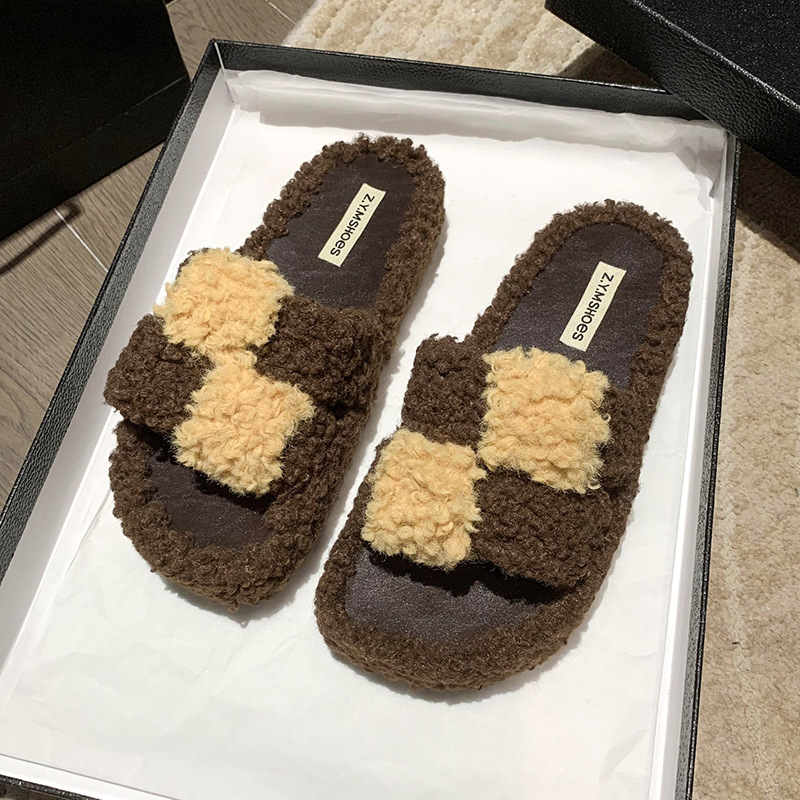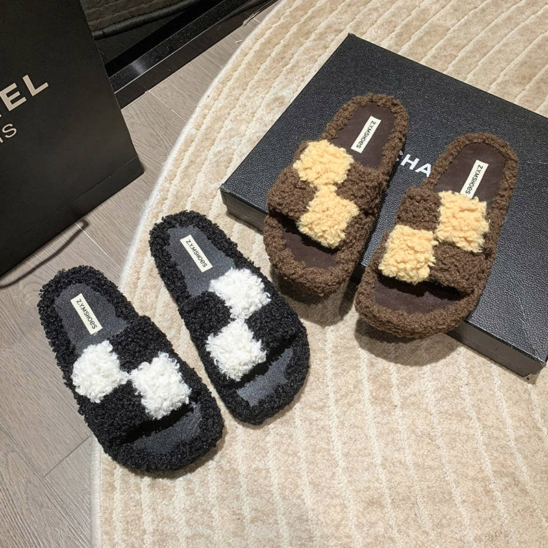 Winter Thick-Soled Casual Fluffy Fashion Plaid Slippers For Women Comfortable Indoor Shoes Soft Slippers For Men