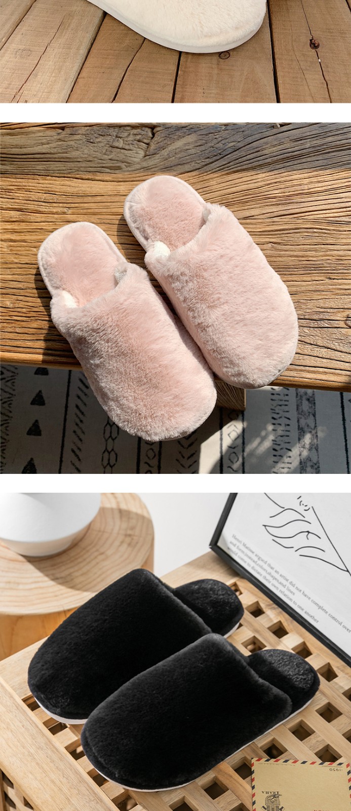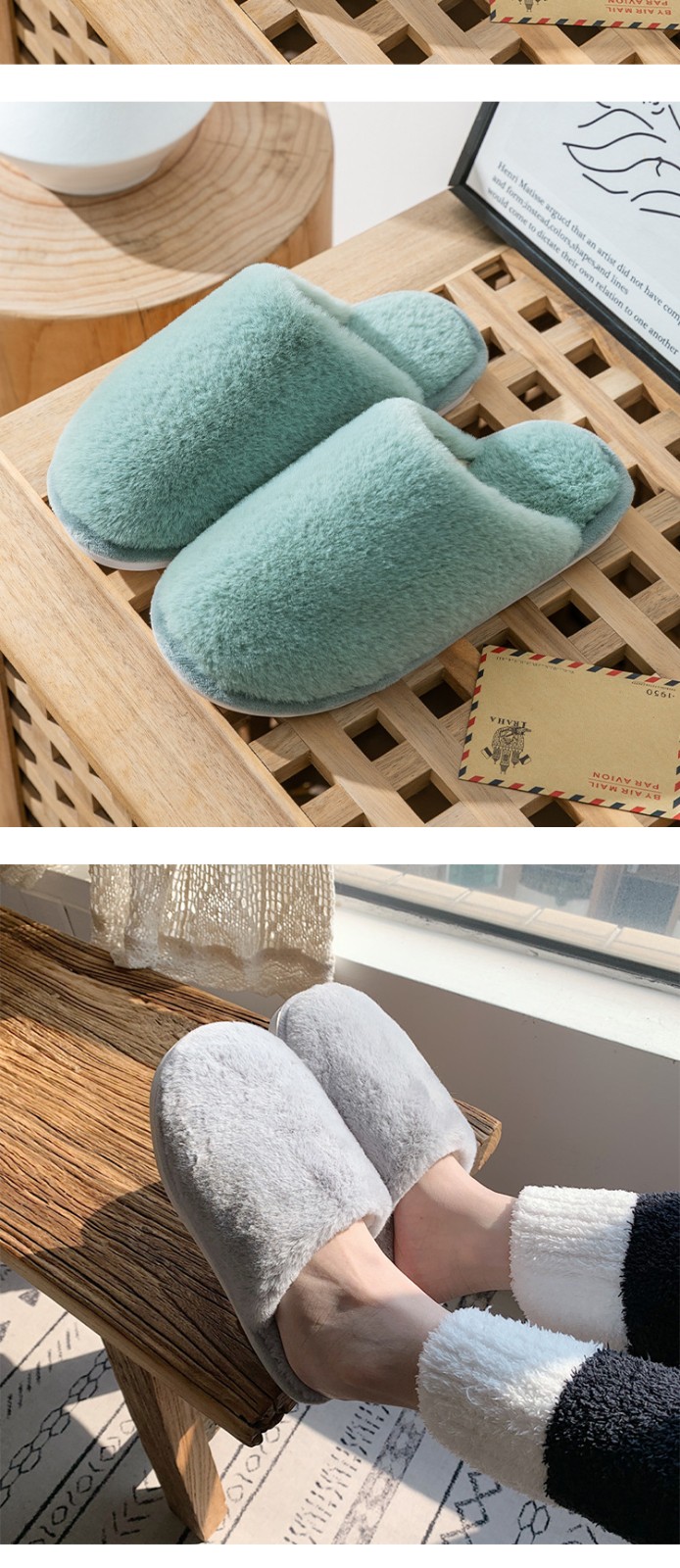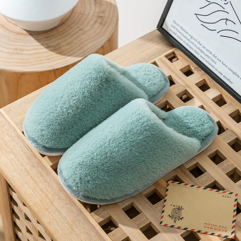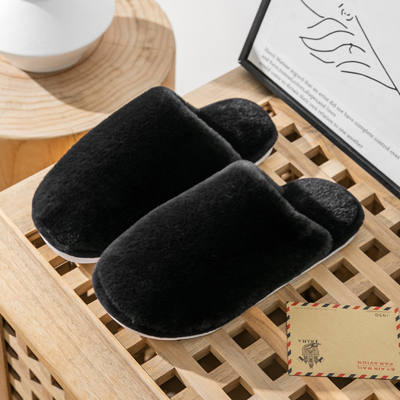 2023 Winter Warm Indoor Solid Color Cotton Slippers Custom Logo Women's Home Non-slip Soft Fluffy Slippers