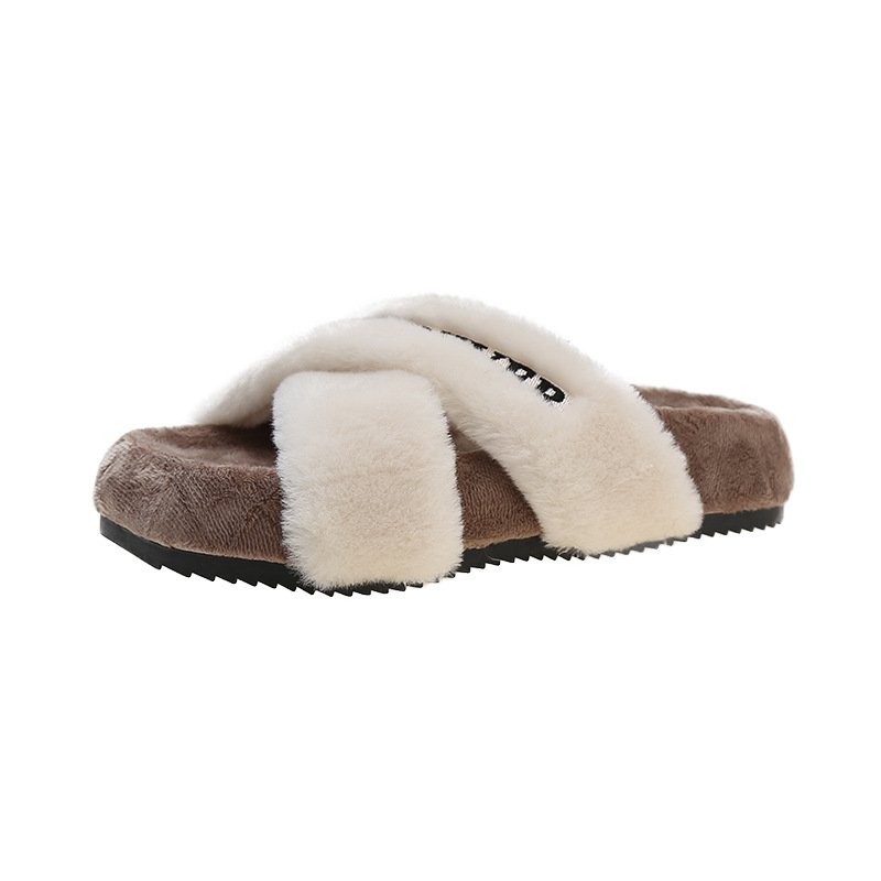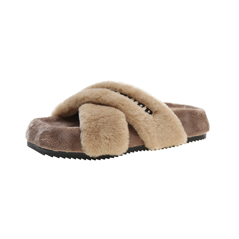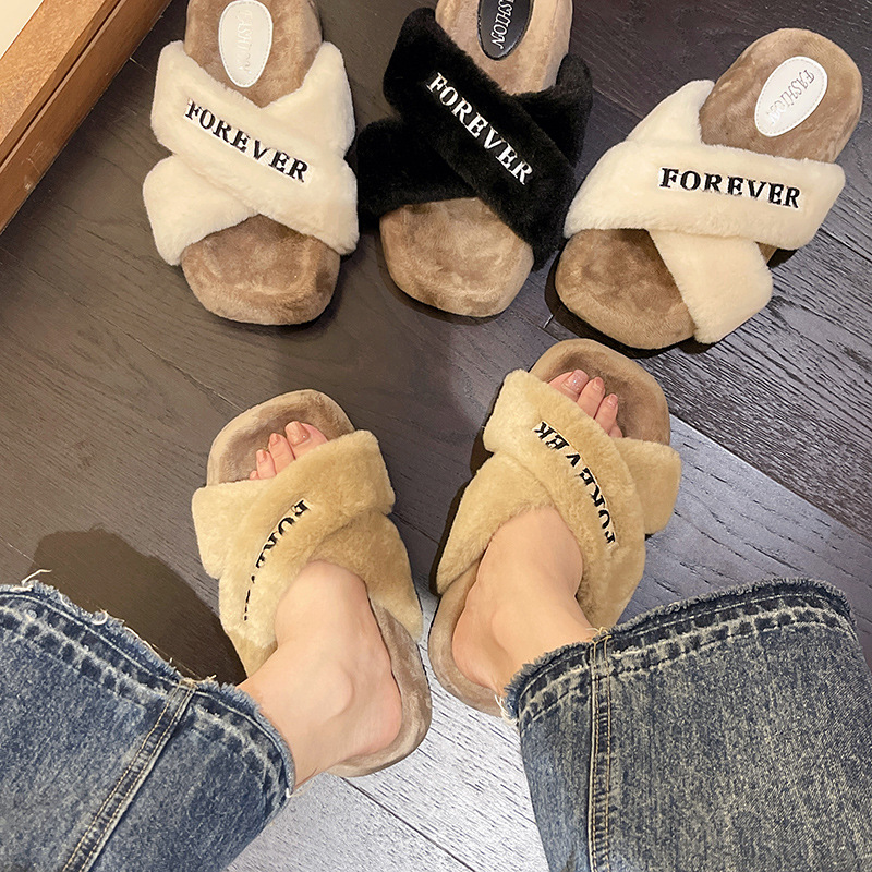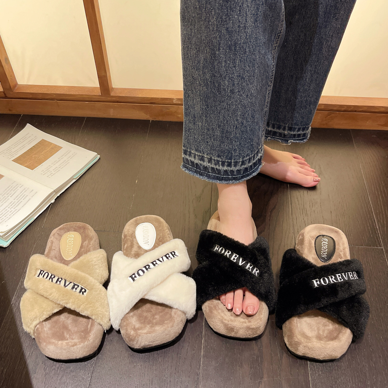Women's Winter Slippers Stylish Fluffy Cross Strap 2023 Custom Logo Casual Indoor Warm Shoes Women Slippers 2023