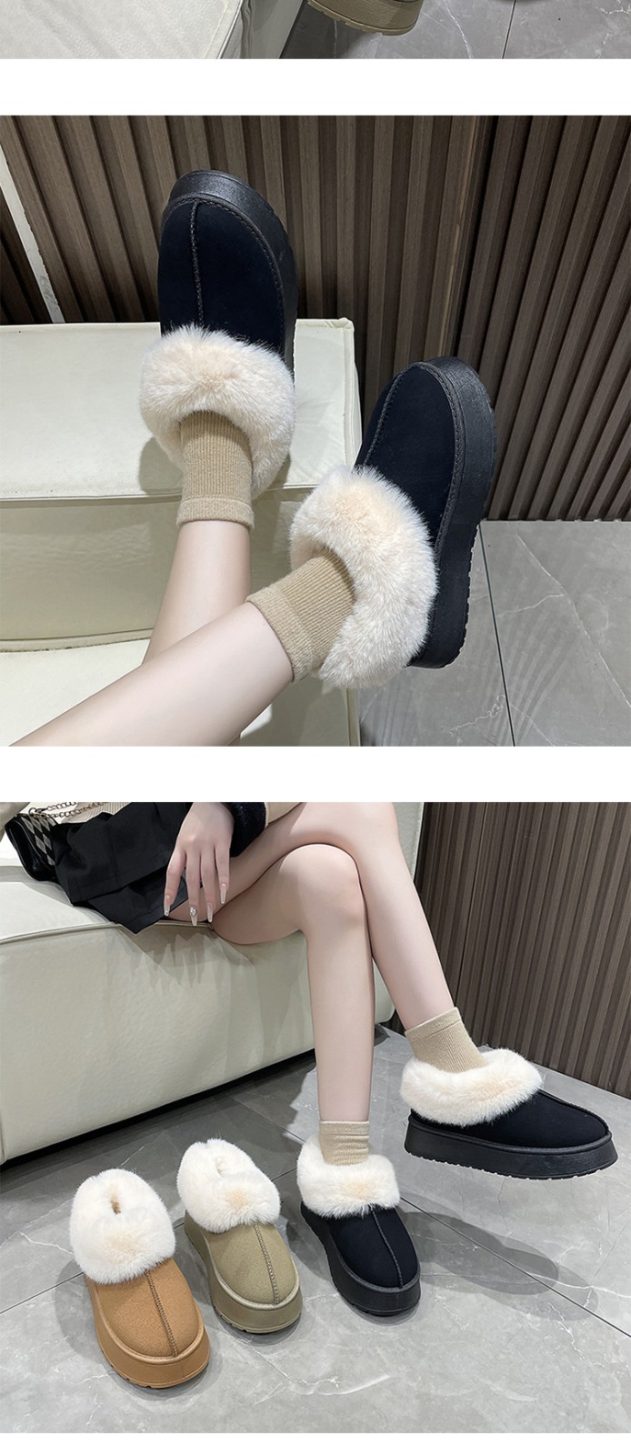 Winter Fluffy Thick Sole Snow Boots Custom Logo Women's Fashion Non-slip Hard-Wearing Boots Winter Boots Unisex