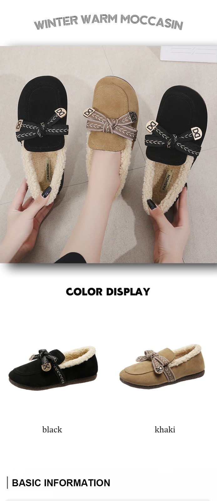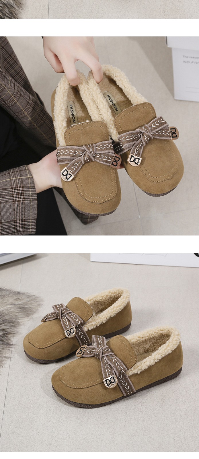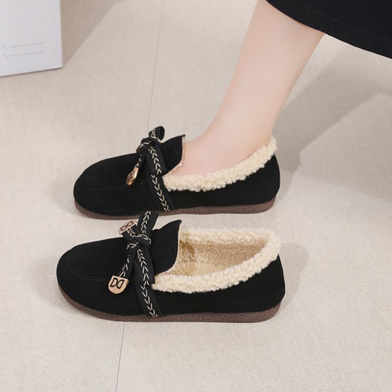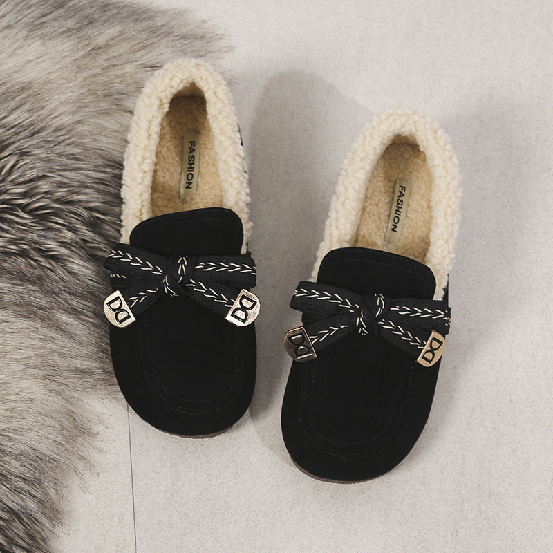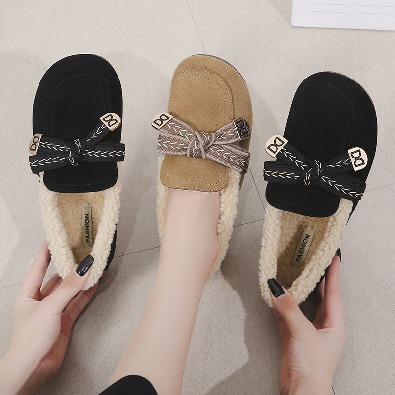 2023 Winter Round Toe Bow Warm Casual Flat Shoes For Women Breathable Lightweight Slip-On Shoes Casual Shoes For Men New Styles