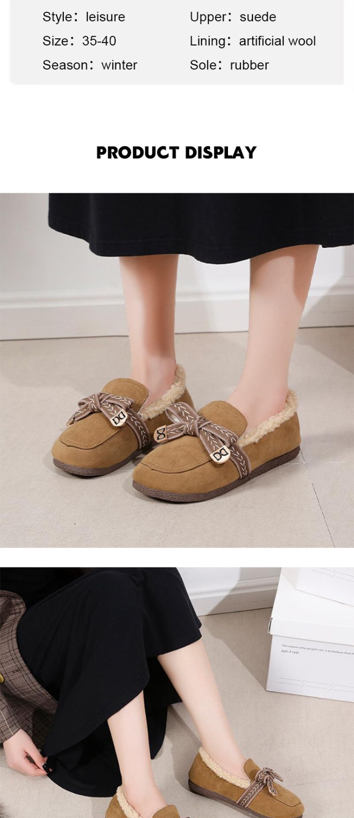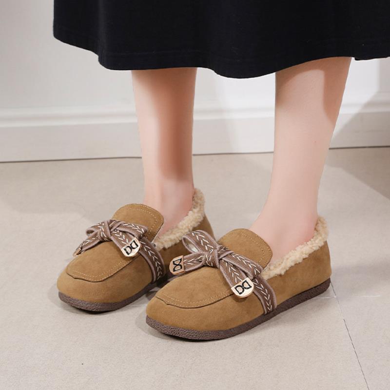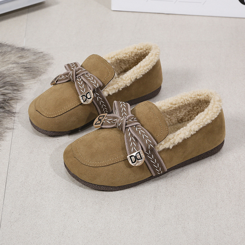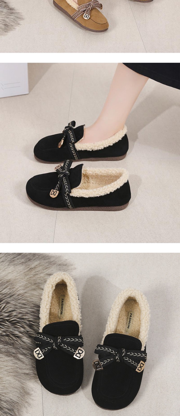 2023 Winter Round Toe Bow Warm Casual Flat Shoes For Women Breathable Lightweight Slip-On Shoes Casual Shoes For Men New Styles