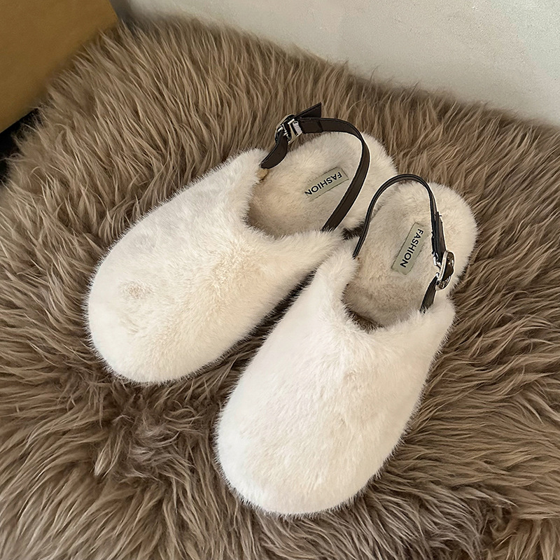 Closed Toe Indoor Fluffy Slippers For Women 2023 Custom Logo Fashion Casual Non-slip Home Shoes White Slippers