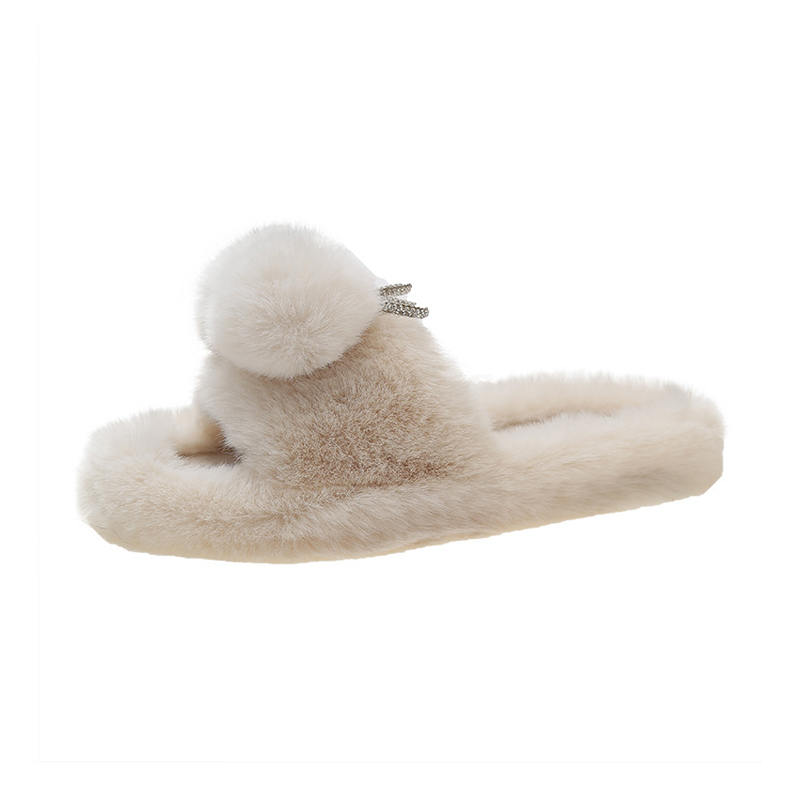 Hot Selling Elegant Fluffy Ladies Flat Home Slippers 2023 Wholesale Fashion Indoor Hard-Wearing Slippers Smile Face Slippers