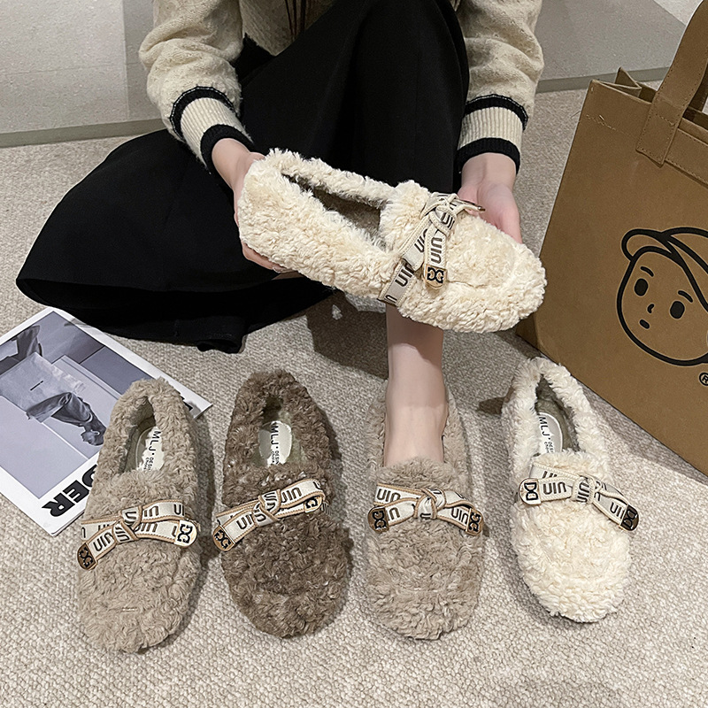 Winter fluffy warm breathable Moccasins 2023 wholesale women's design simple elegant flat shoes oem shoes