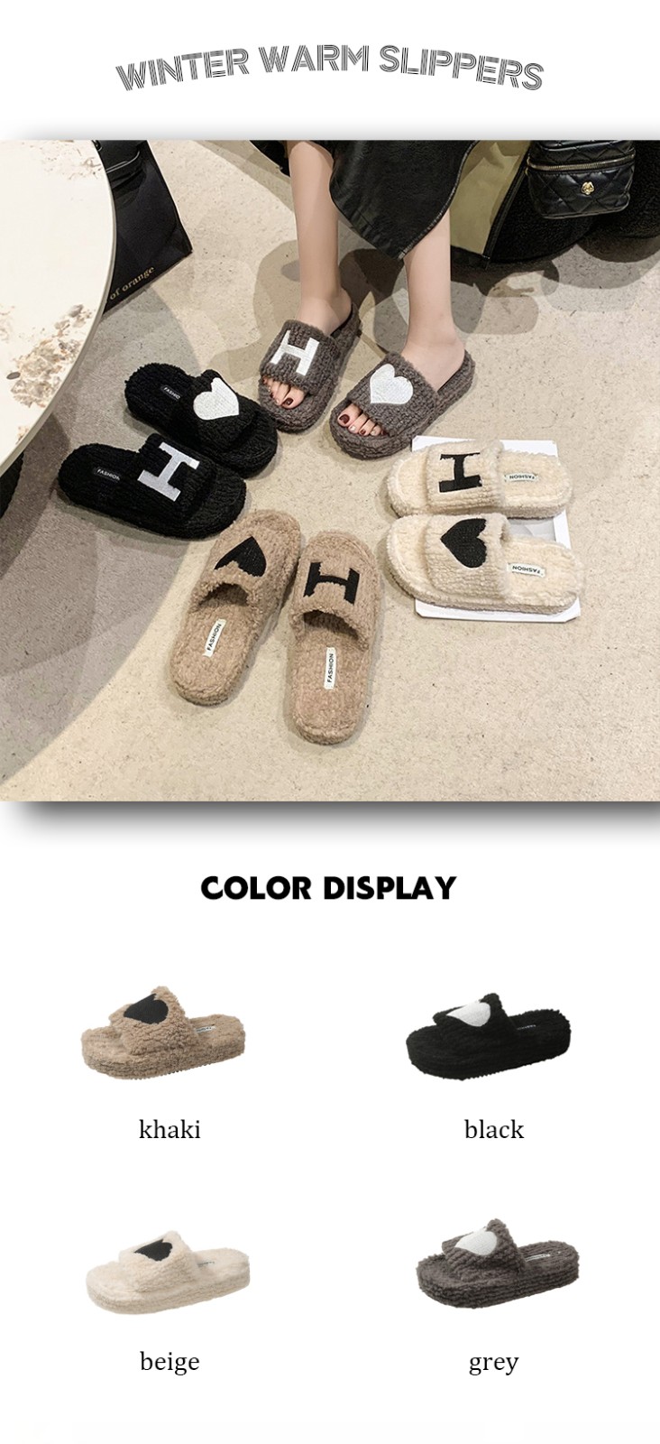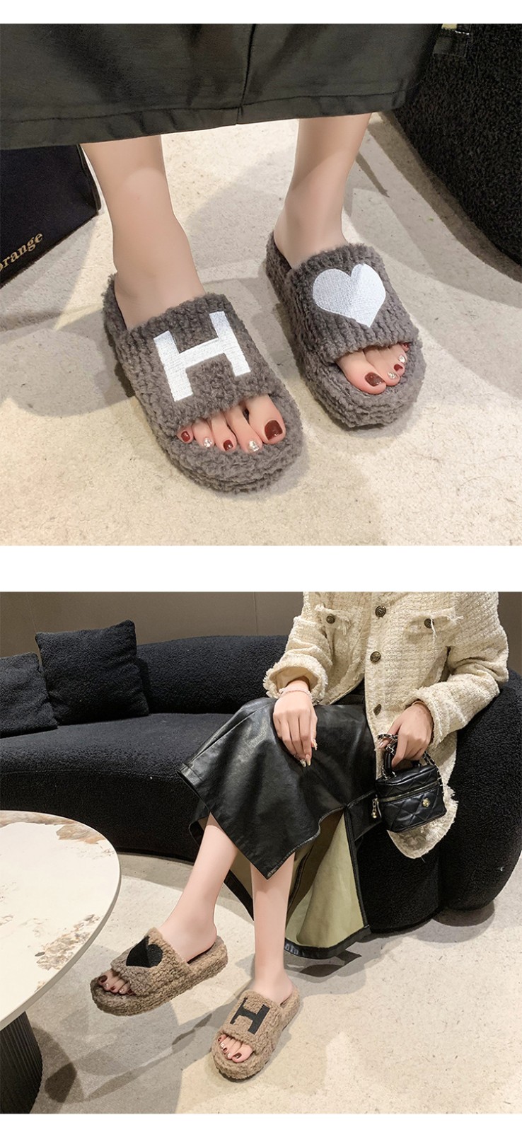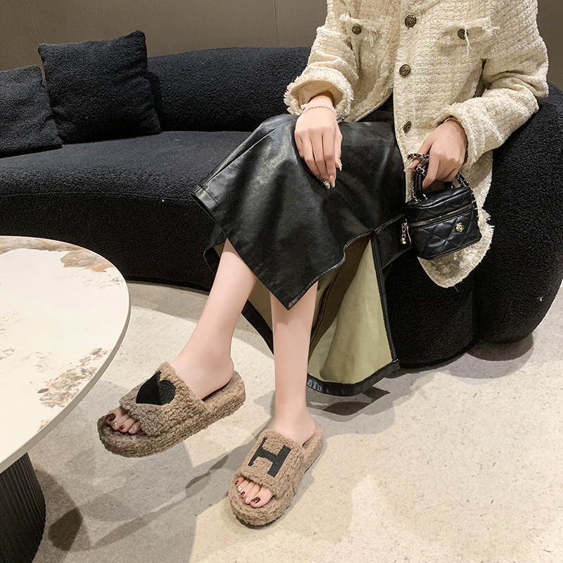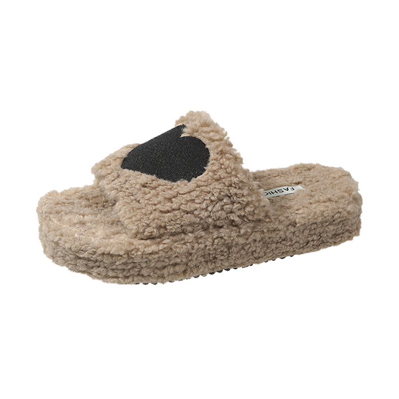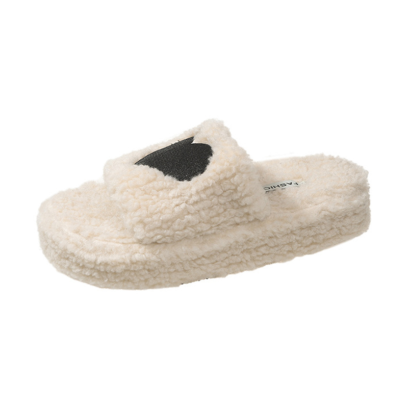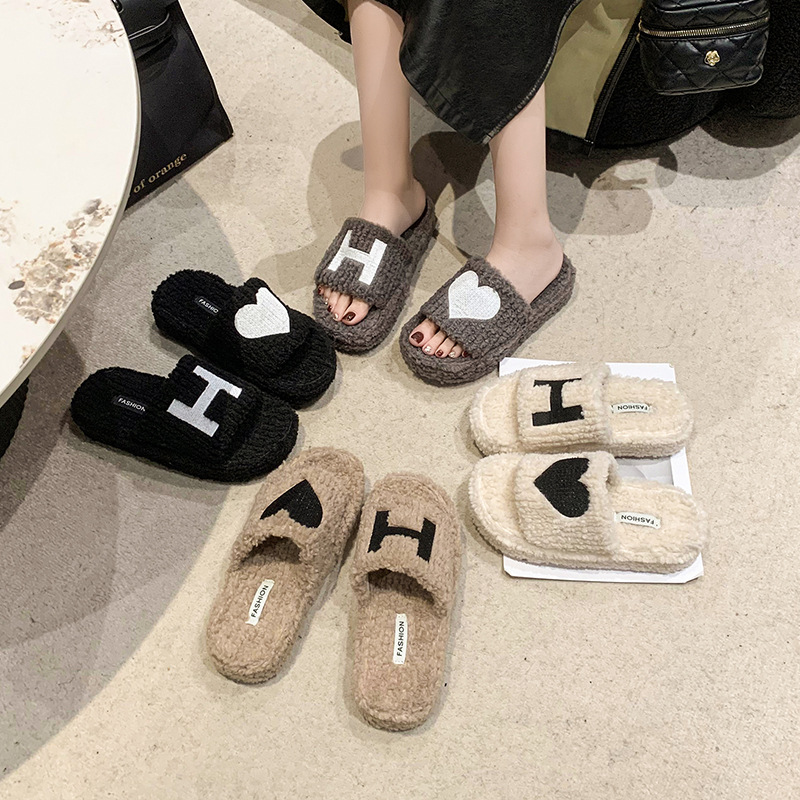 Thick soles Love shape fluffy home slippers 2023 custom logo winter new women fashion shoes soft slippers for men