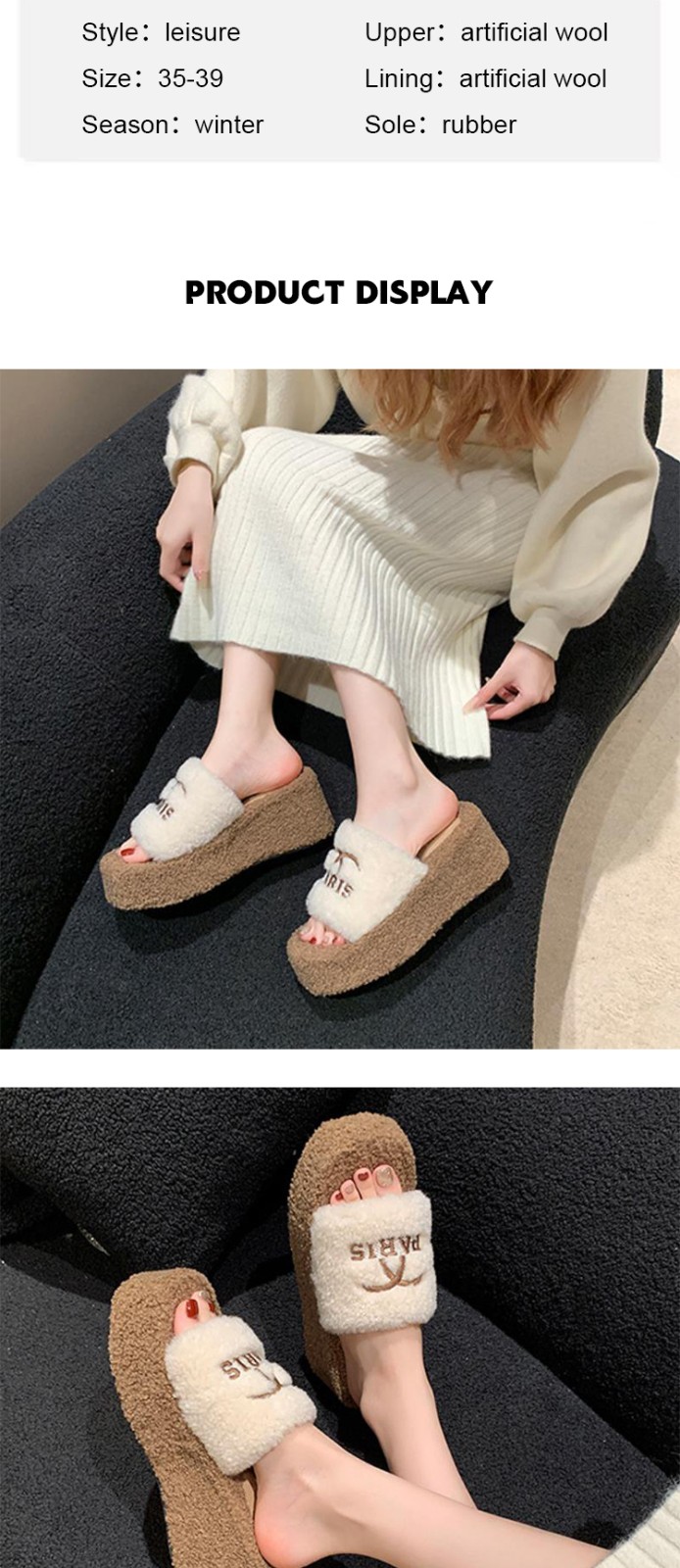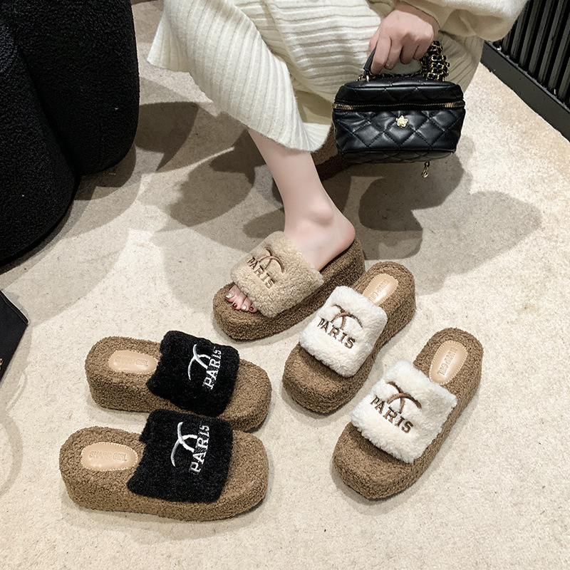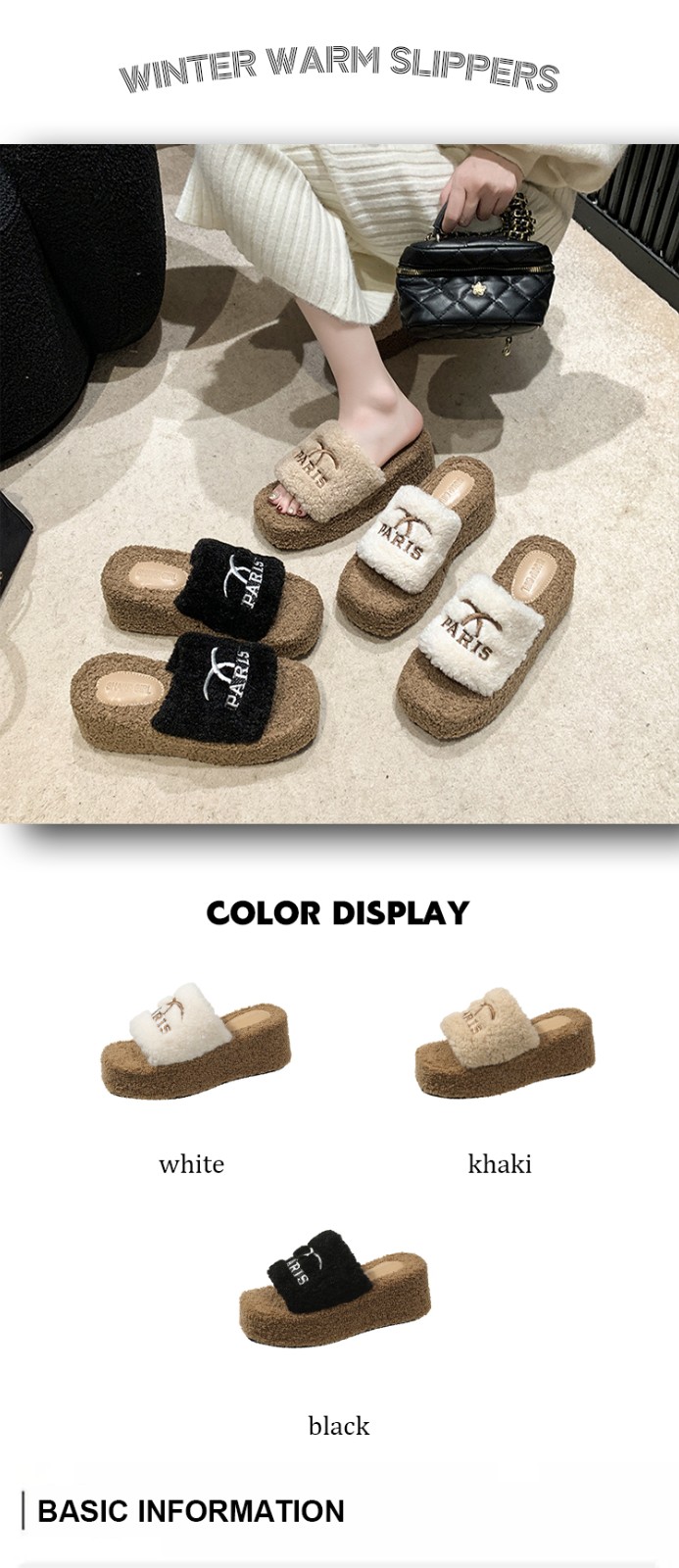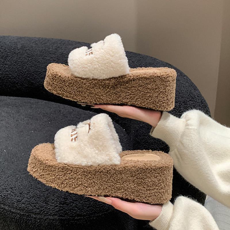 Fluffy ladies fashion thick sole lamb wool slippers 2023 custom Logo casual indoor simple slippers men soft slipper