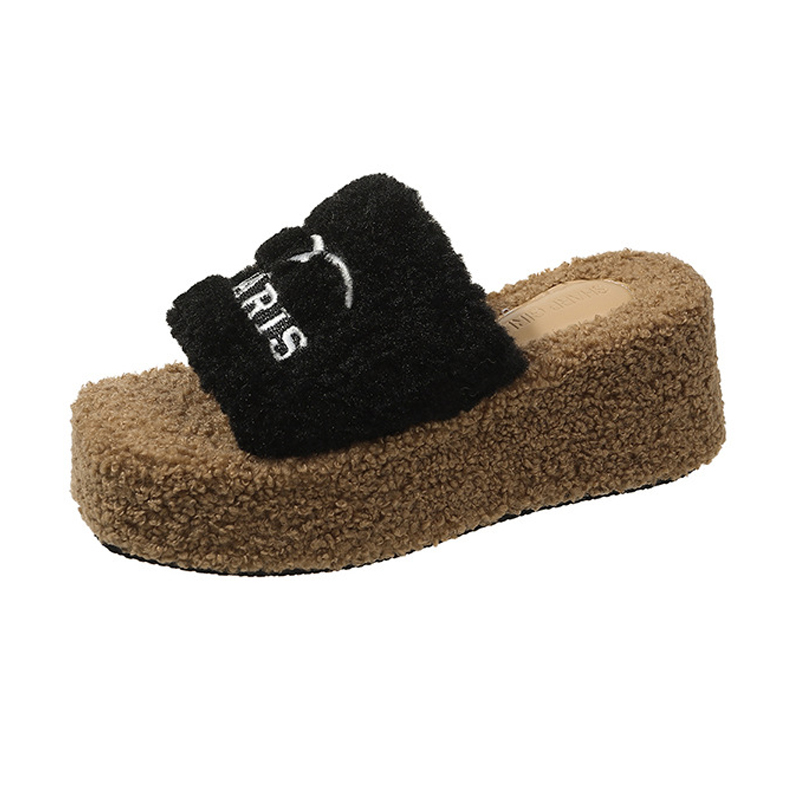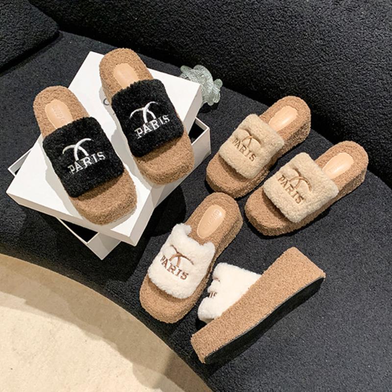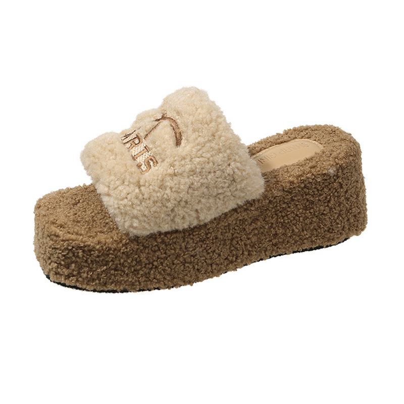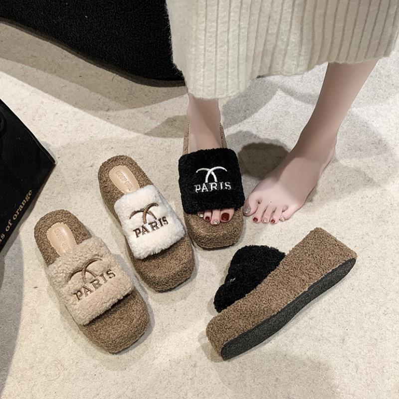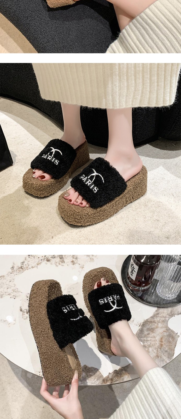 Fluffy ladies fashion thick sole lamb wool slippers 2023 custom Logo casual indoor simple slippers men soft slipper