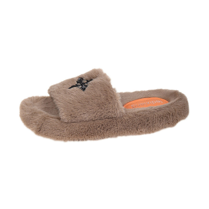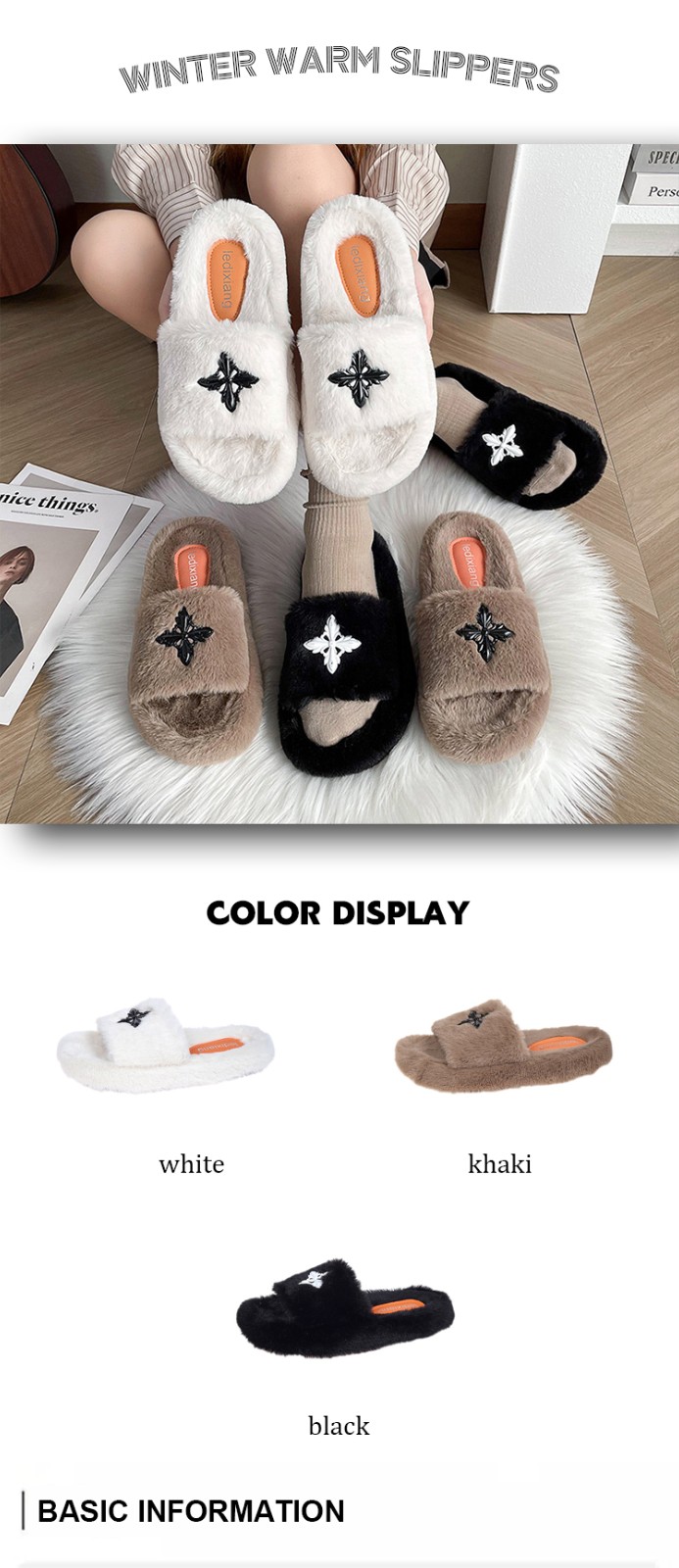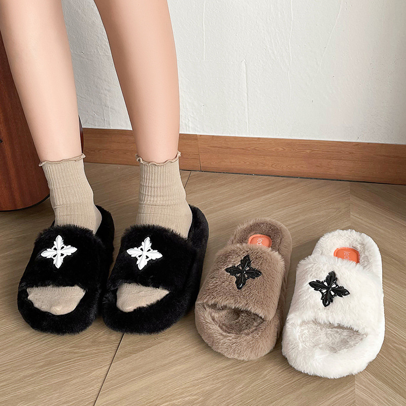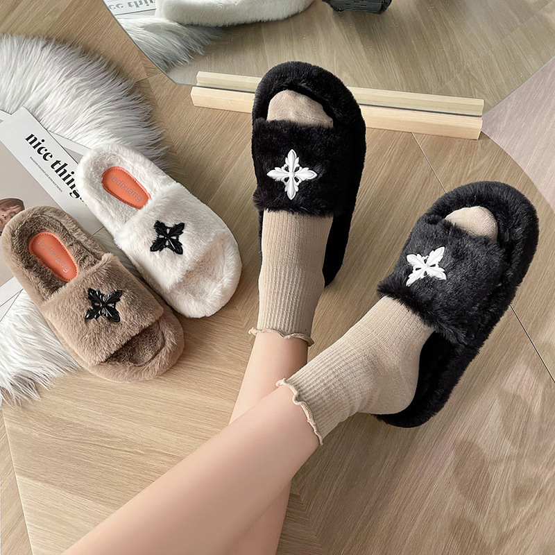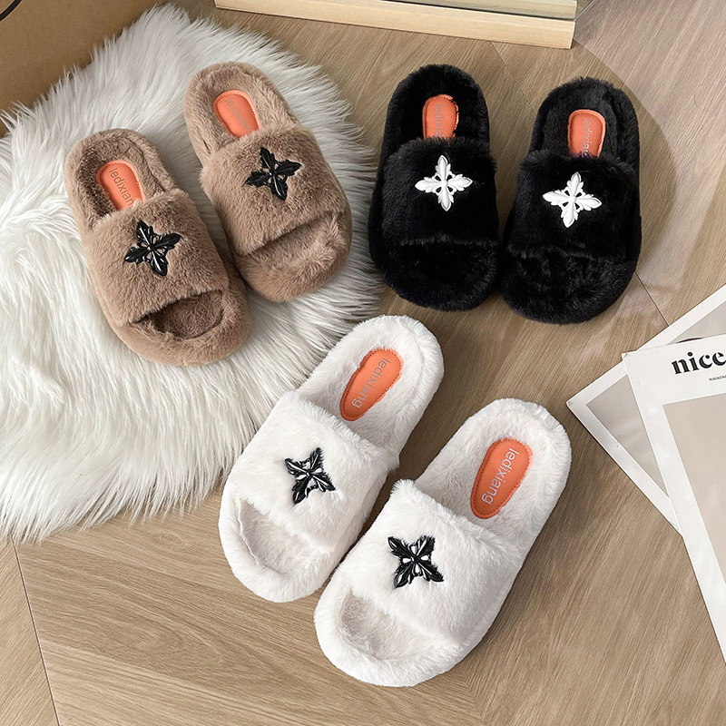 2023 custom logo winter fluffy ladies indoor non-slip warm slippers casual elegant lady shoes slippers femmes