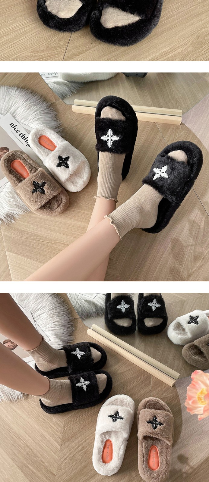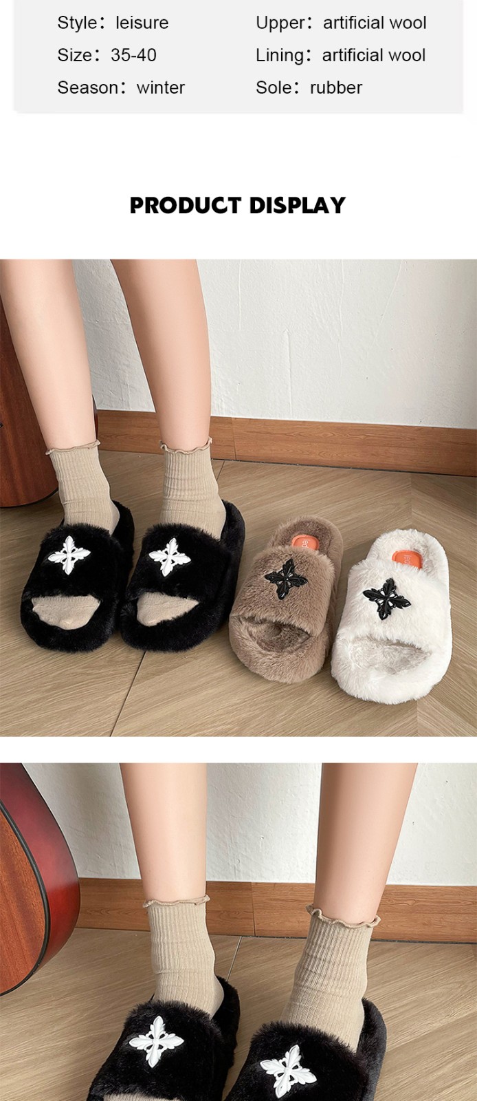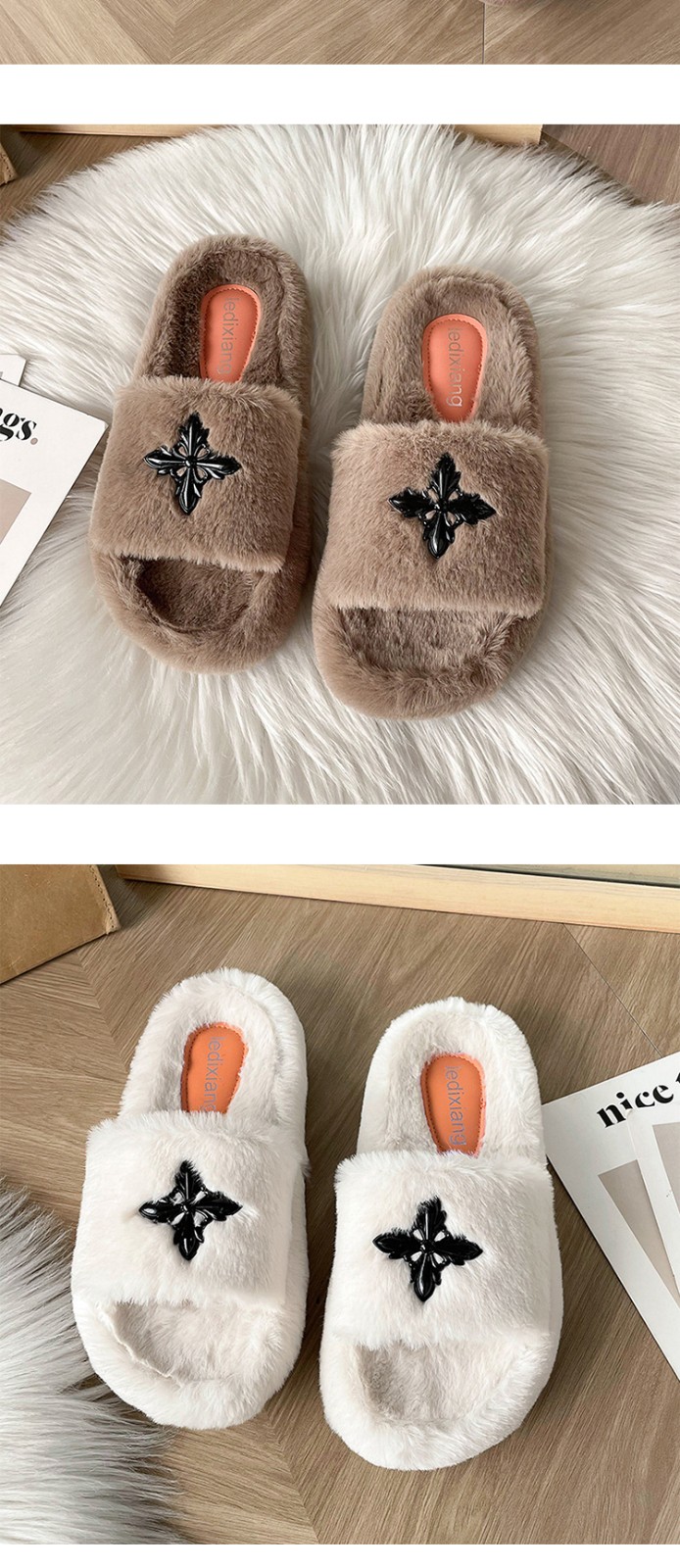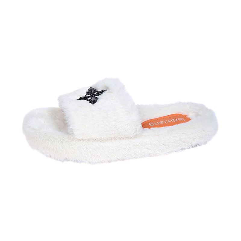 2023 custom logo winter fluffy ladies indoor non-slip warm slippers casual elegant lady shoes slippers femmes