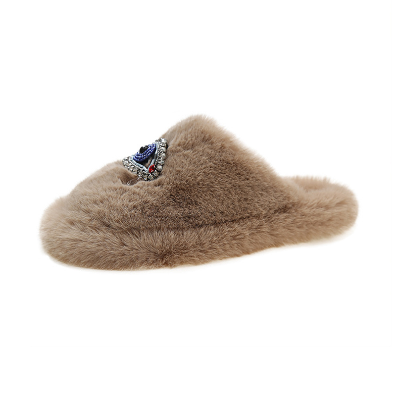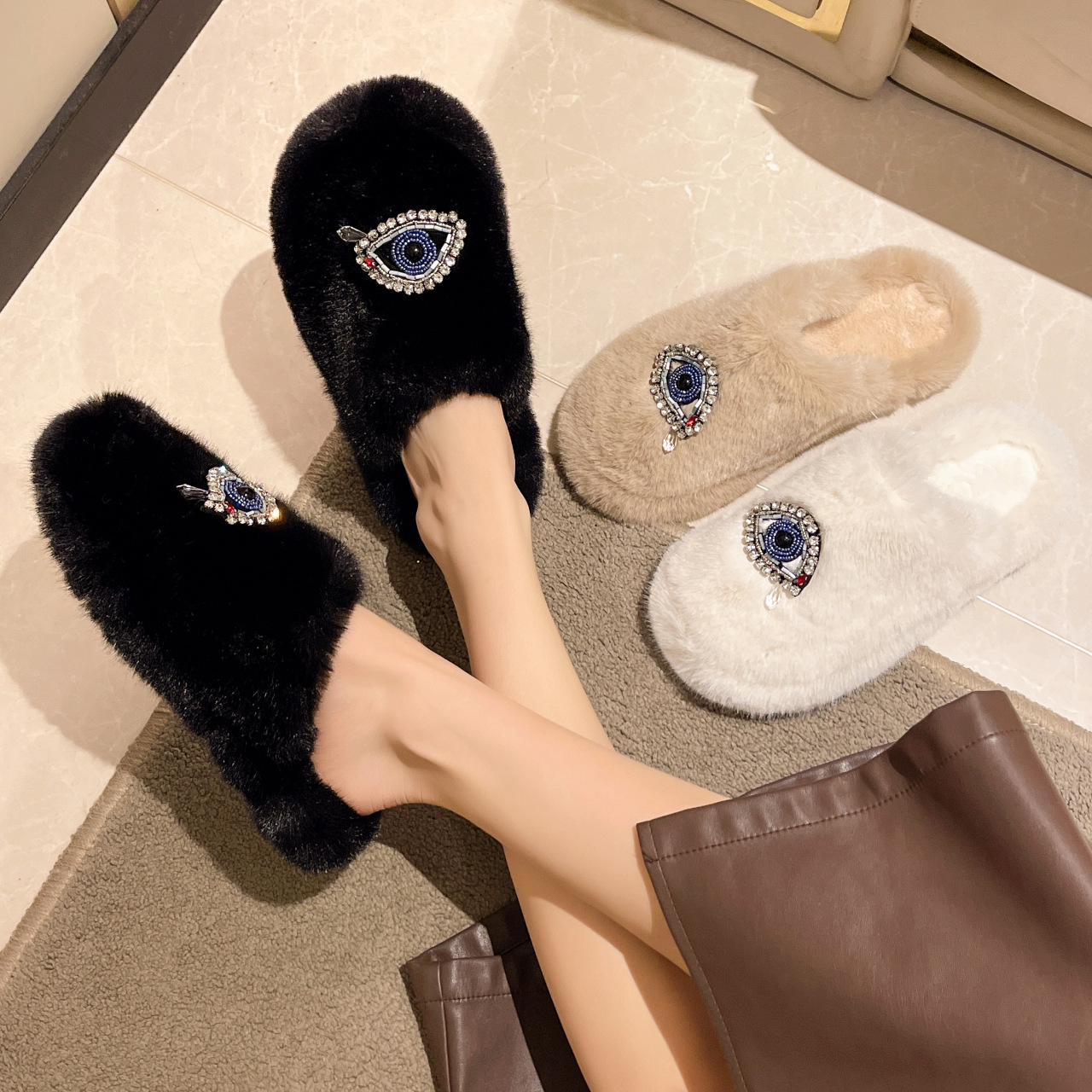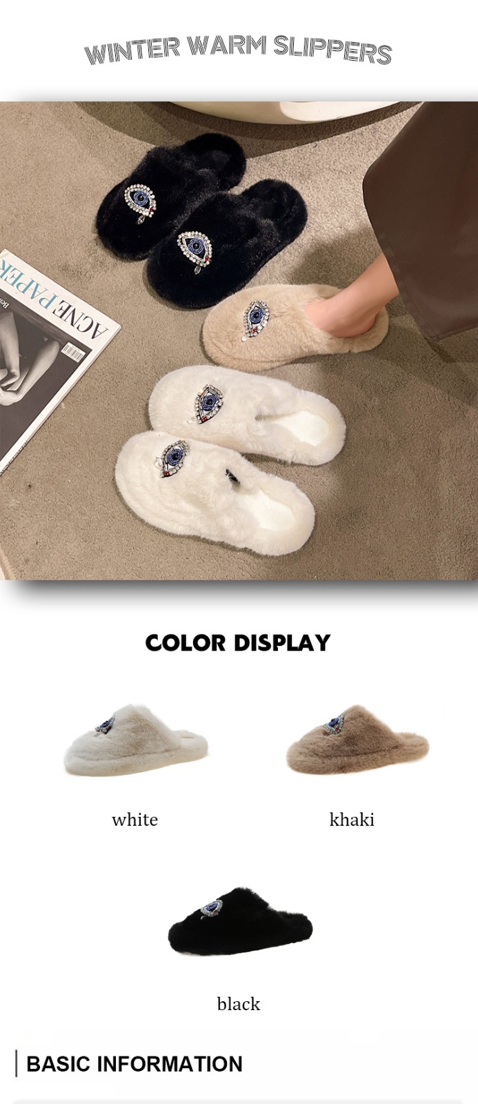 2023 winter new fashion closed toe warm soft soled slippers ladies home casual custom fluffy shoes white slippers